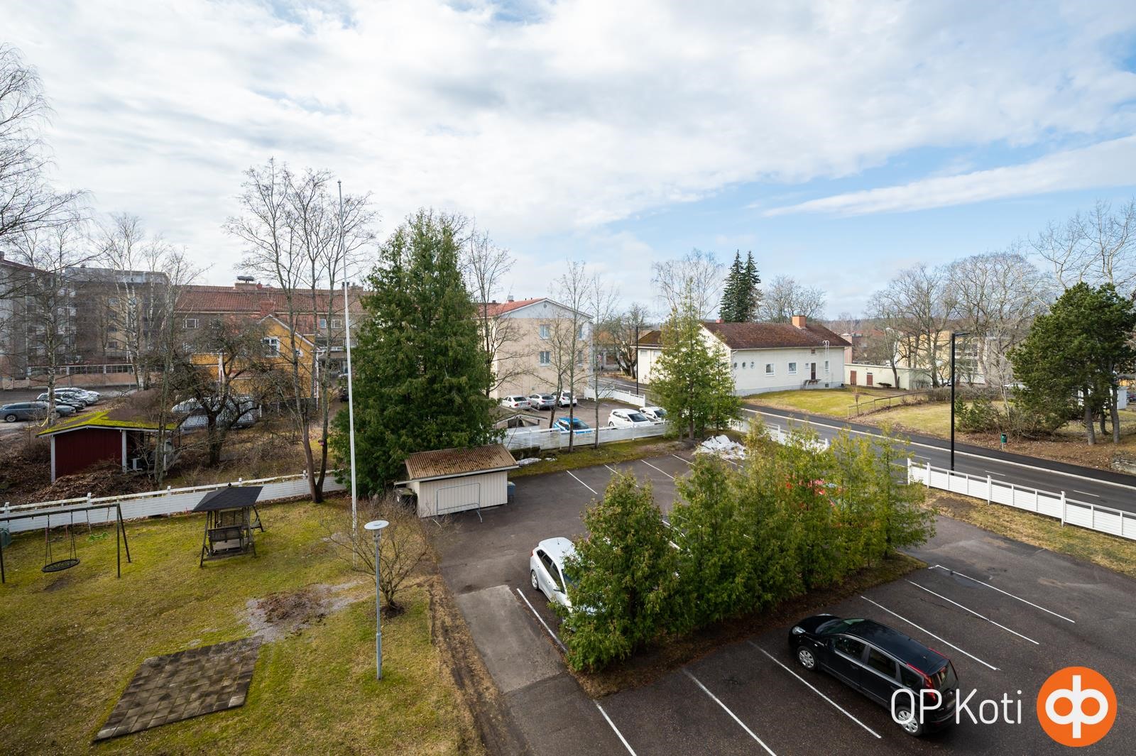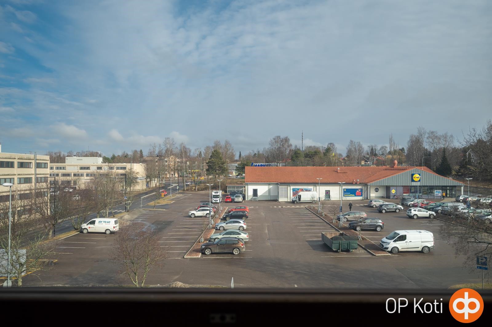 - Lounaseen, sisäpihalle päin, makuuhuoneiden ikkunoista näkyy LIDL