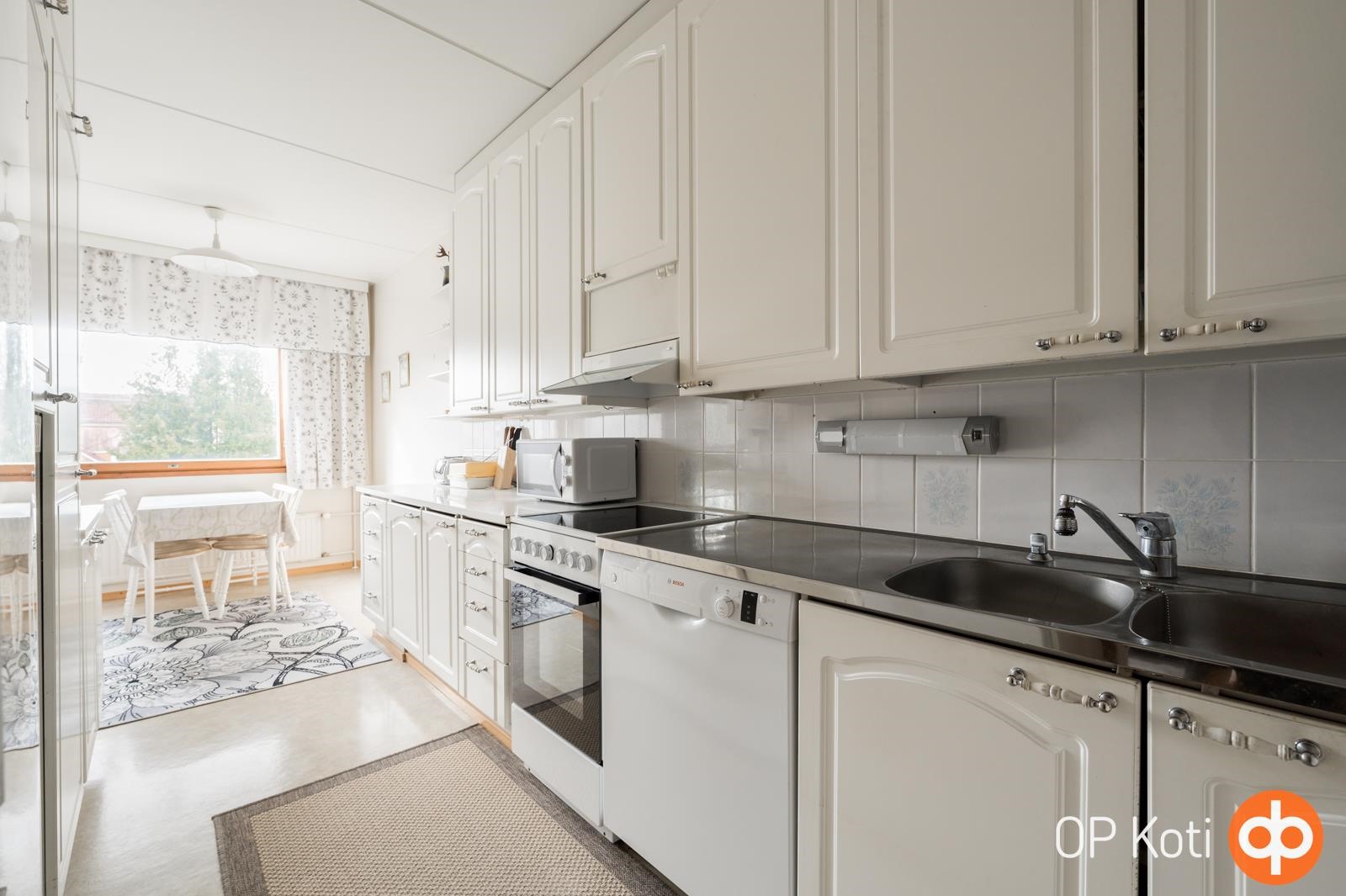 - Viileäkaappi, keraaminen liesi turvakytkimellä, liesituuletin, astianpesukone, kaapistot.