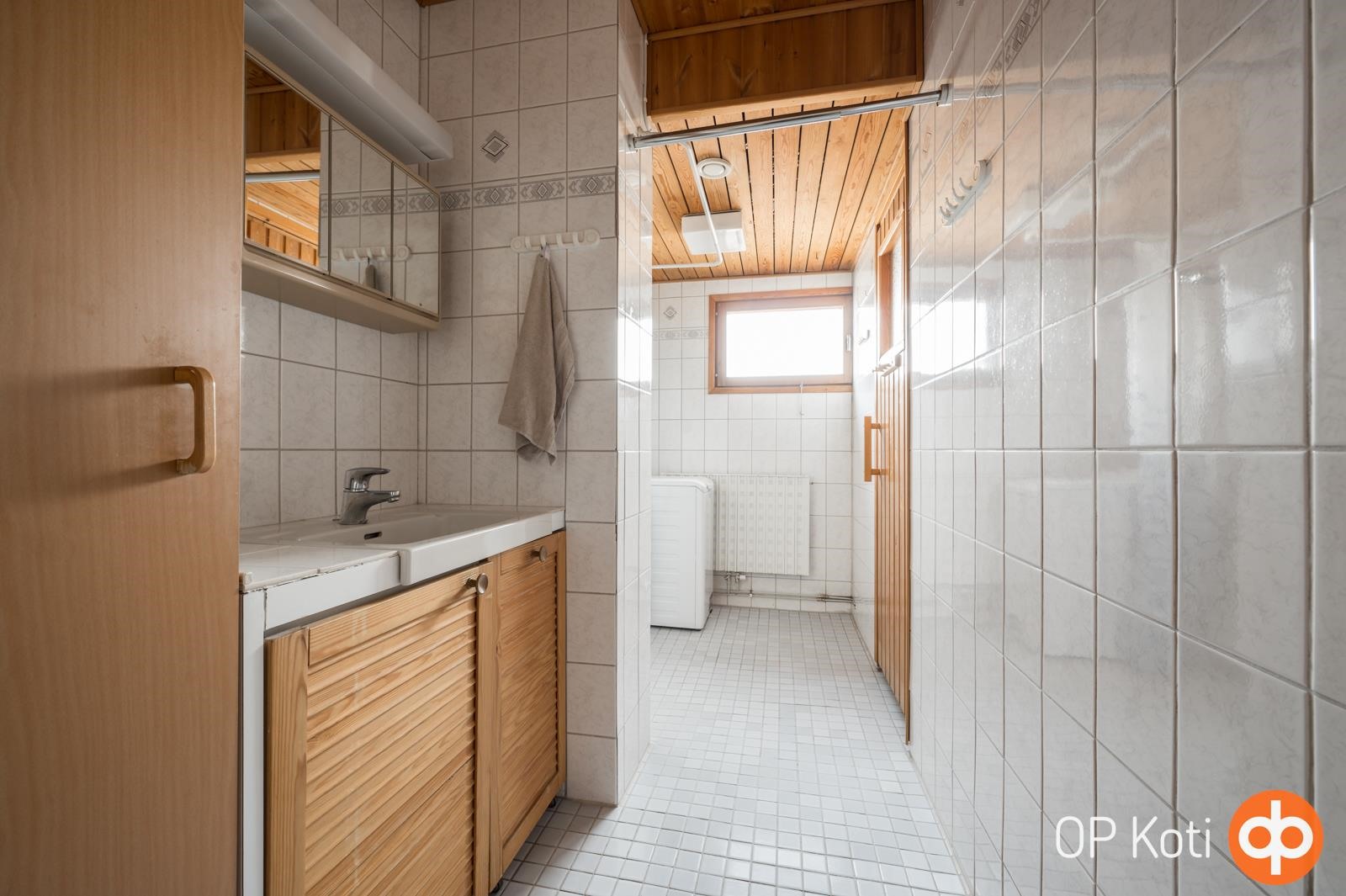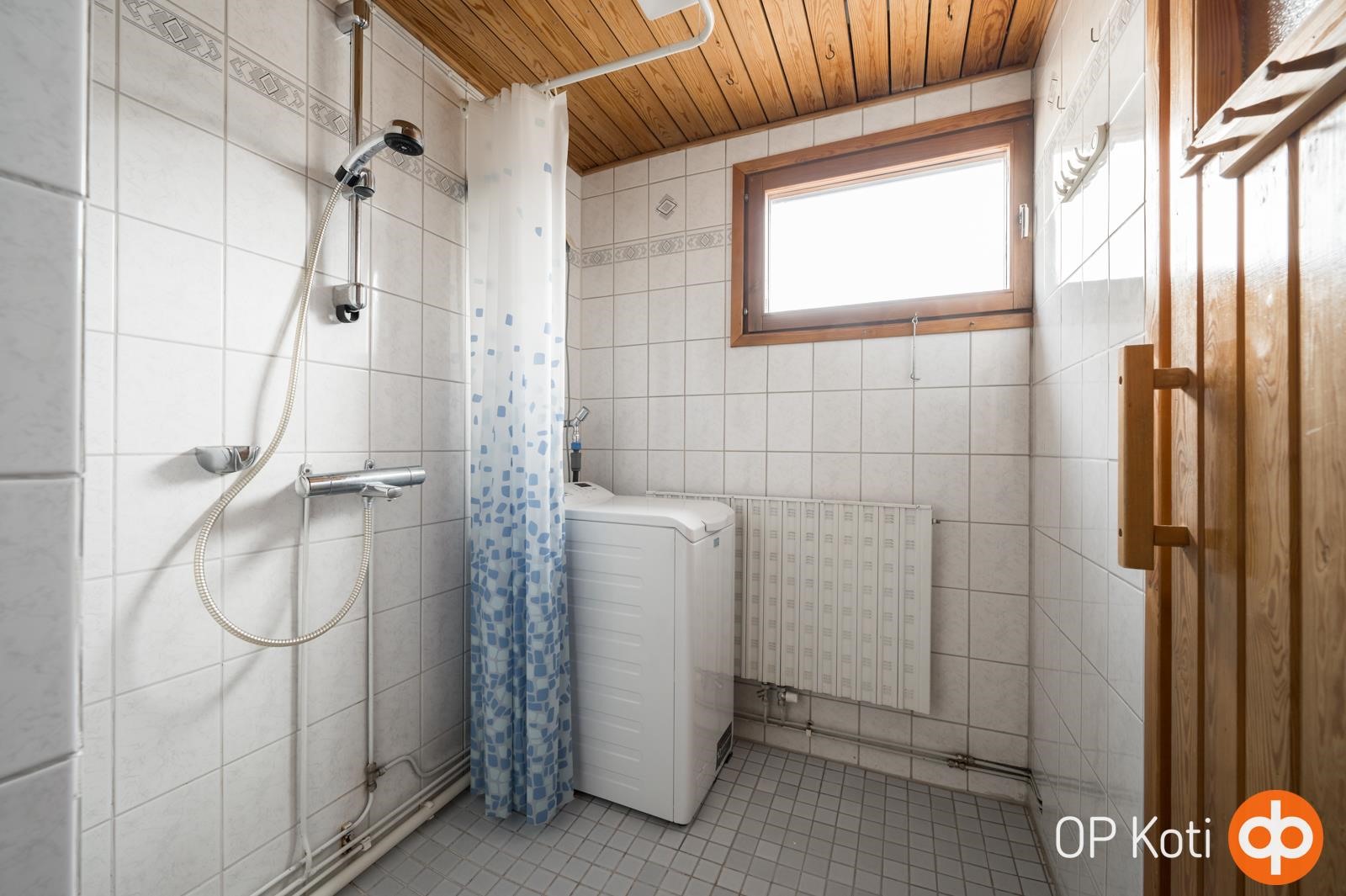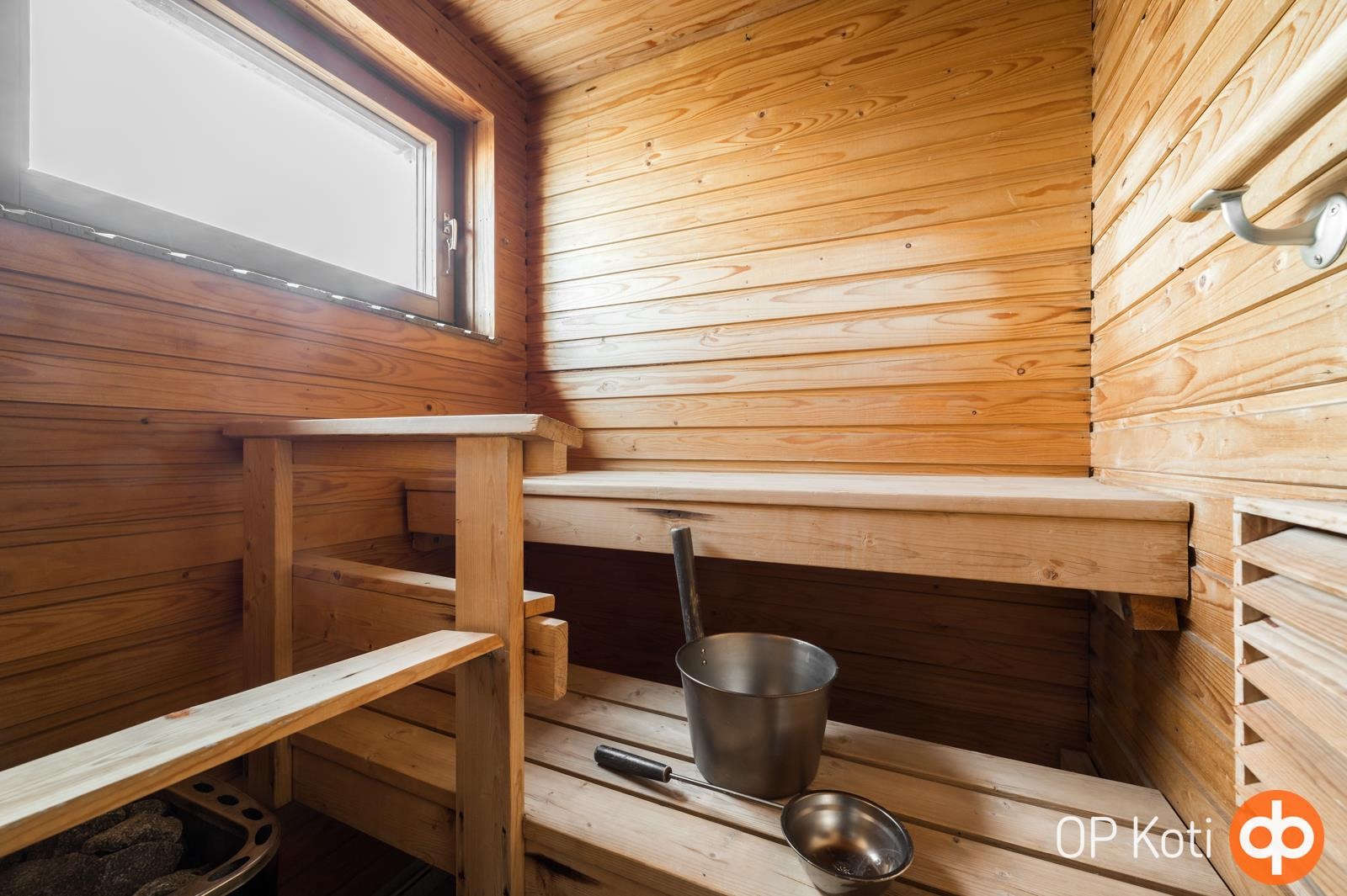 - Sauna, sähkökiuas, kylpyhuone, erillinen wc, suihku, pesukoneliitäntä. Kiuas on uusittu 2021