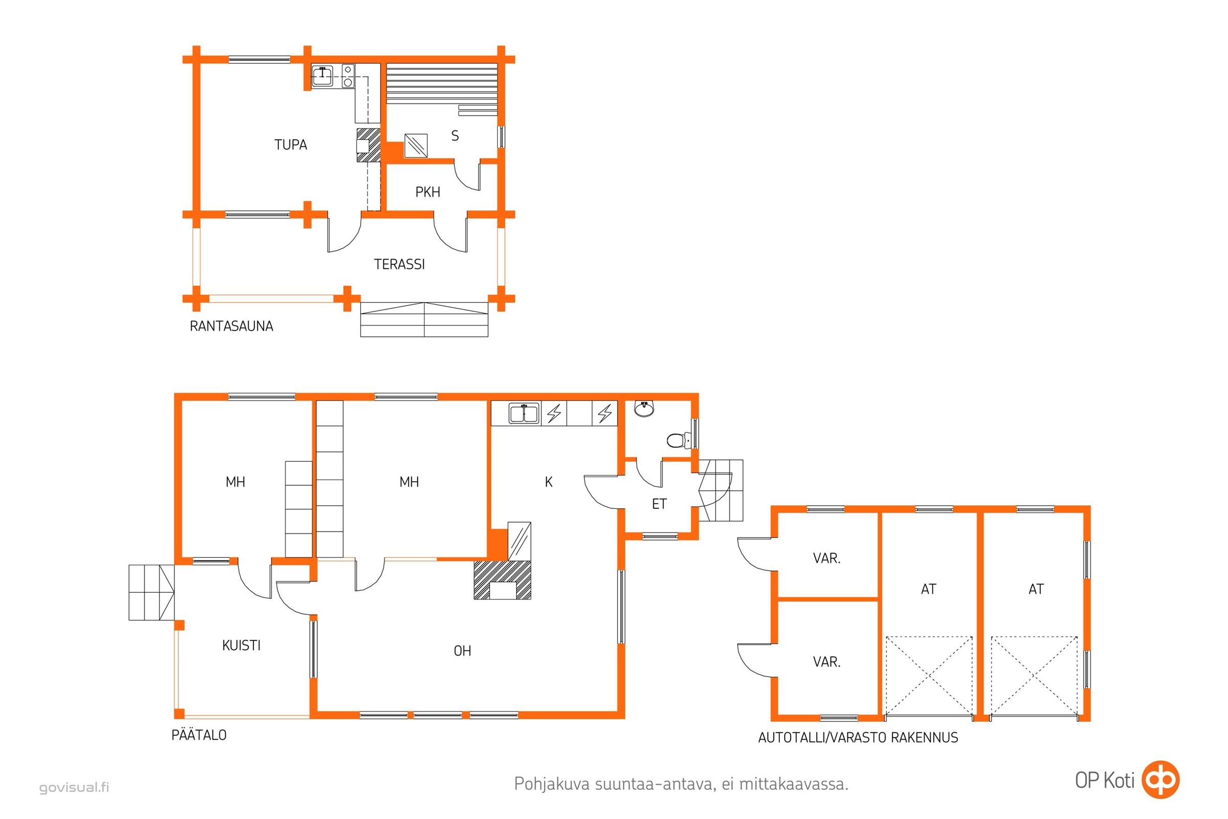 - Sauna erillinen rantasauna, puukiuas, erillinen wc, kaapit, pesukoneliitäntä, kiinteät valaisimet.
