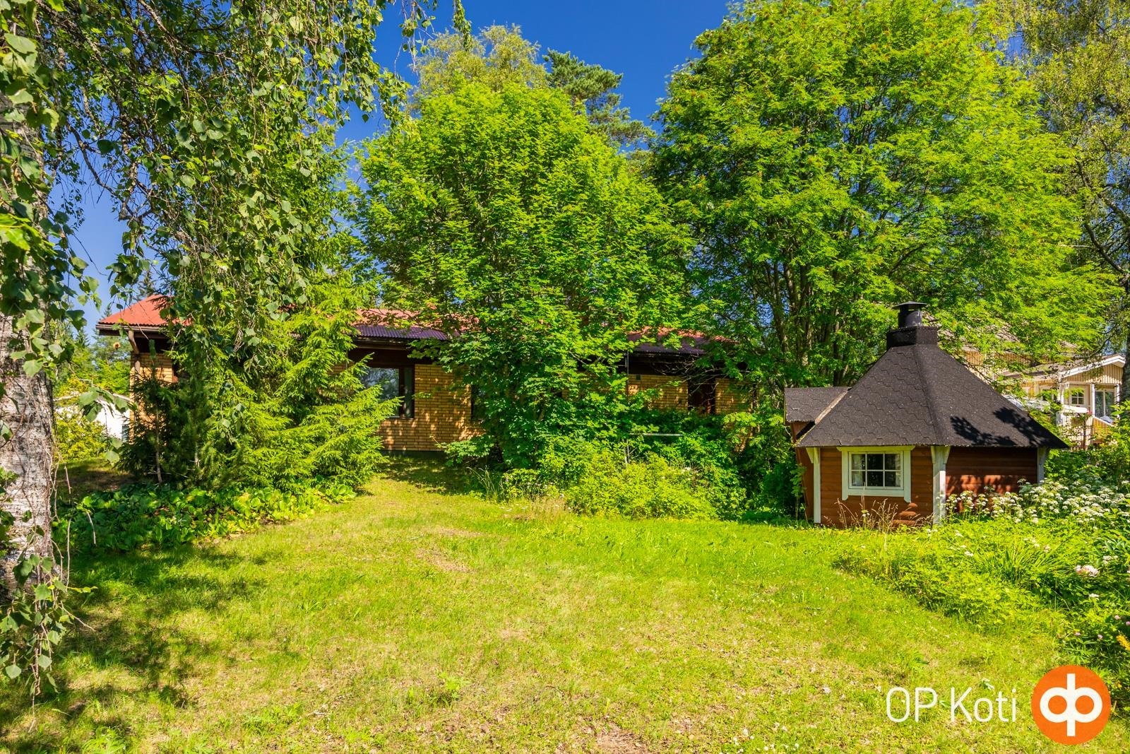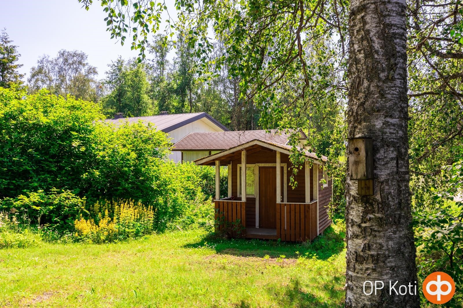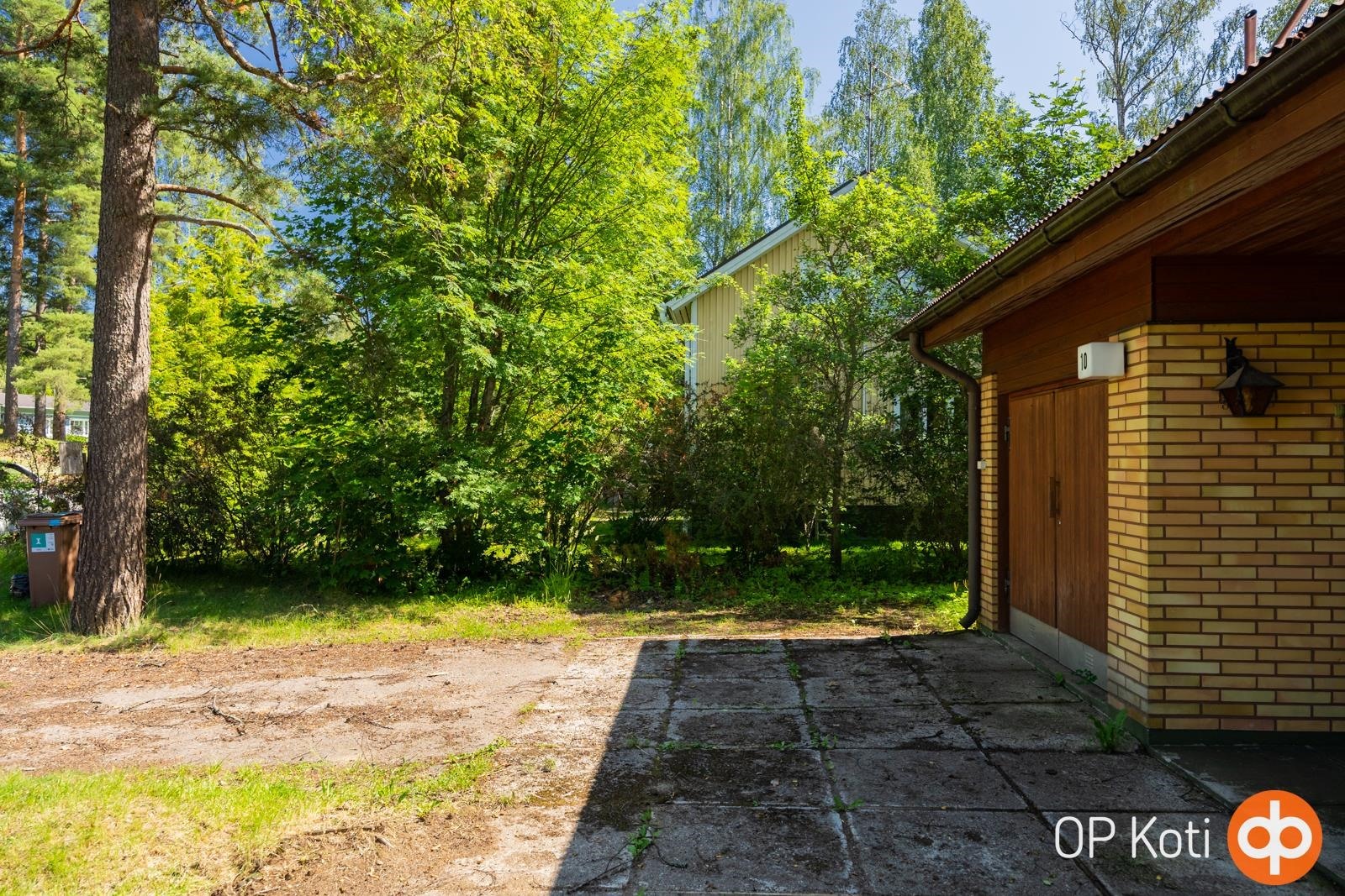 Pihapiiri on vehreä ja suojaisa. Kulmatontti avautuu hieman viettävänä piha-alueena, ja sen kruunaa oma grillikota sekä erillinen varastorakennus. Tilaa riittää oleskeluun ja perheen pienimpien leikkeihin.