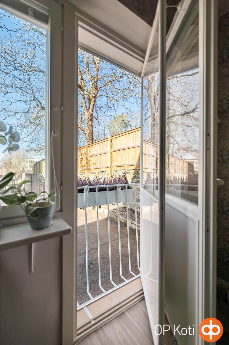 - ranskalainen parveke länteen/ikkunat länteen/pihalle