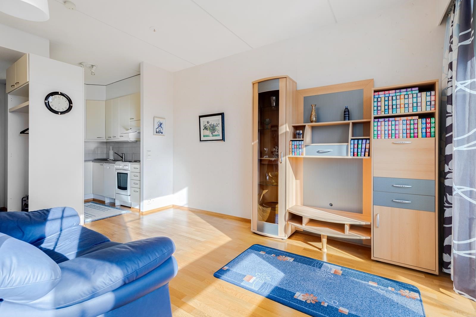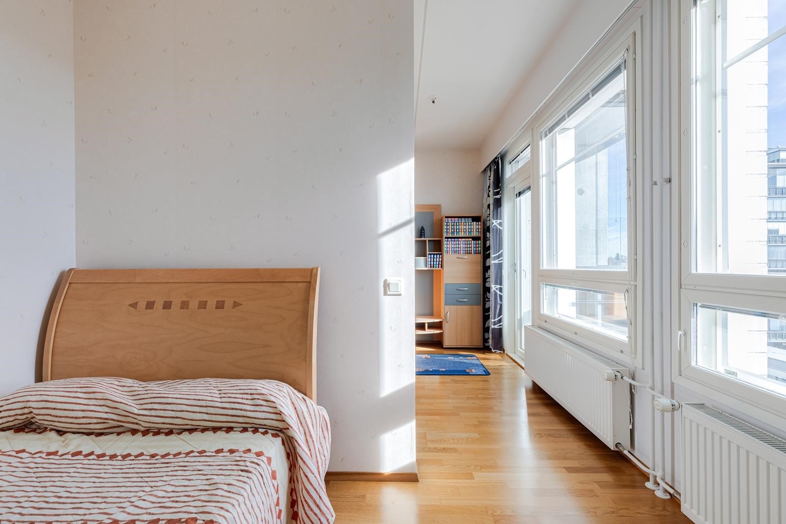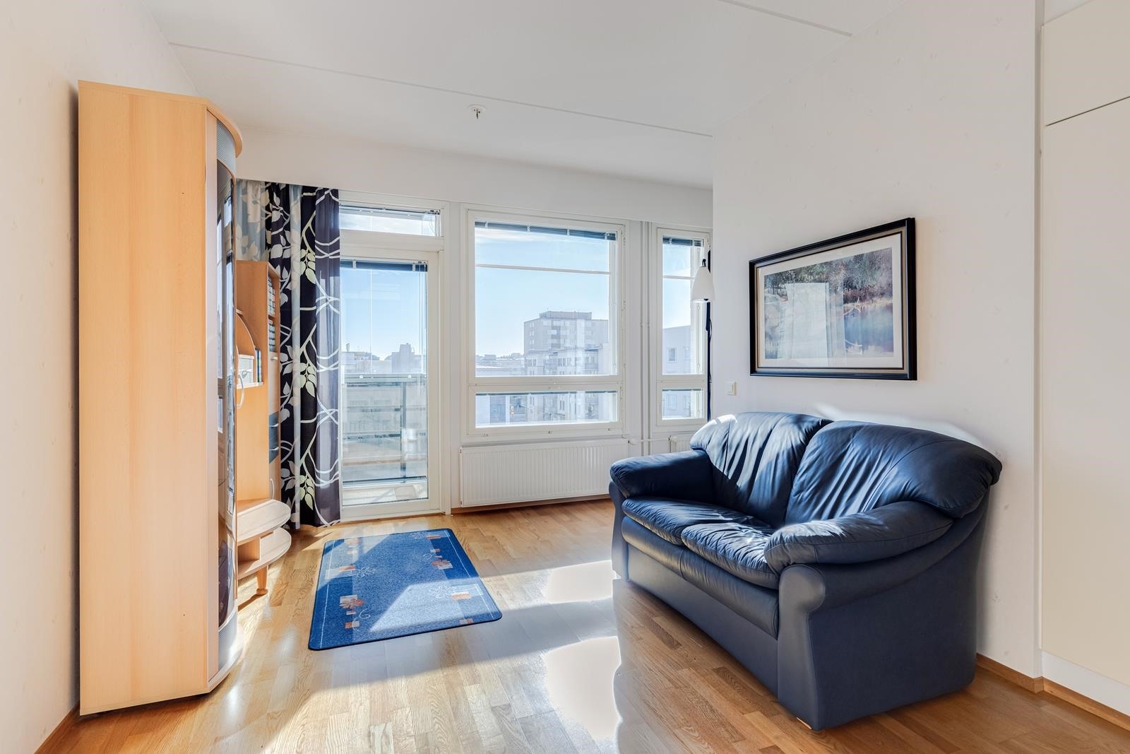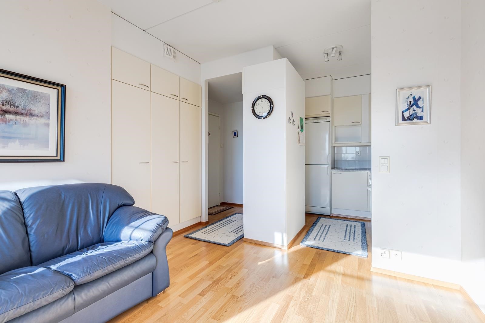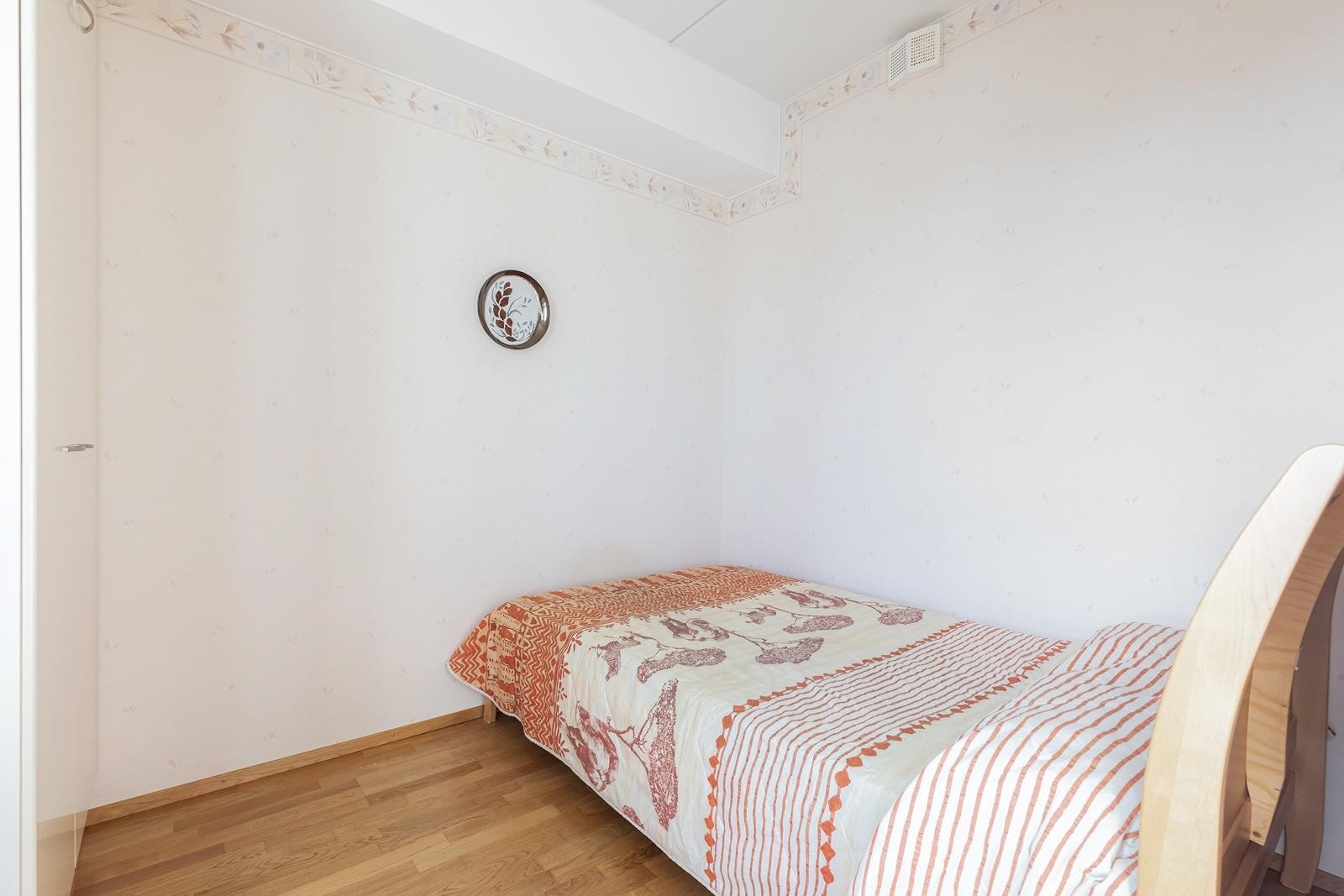 Siistikuntoinen koti, jossa tammiparkettilattiat, lasitettu parveke, erillinen makuuhuone, hyvät eteistilat. Hissitalo, kaukolämpö, oma tontti.
