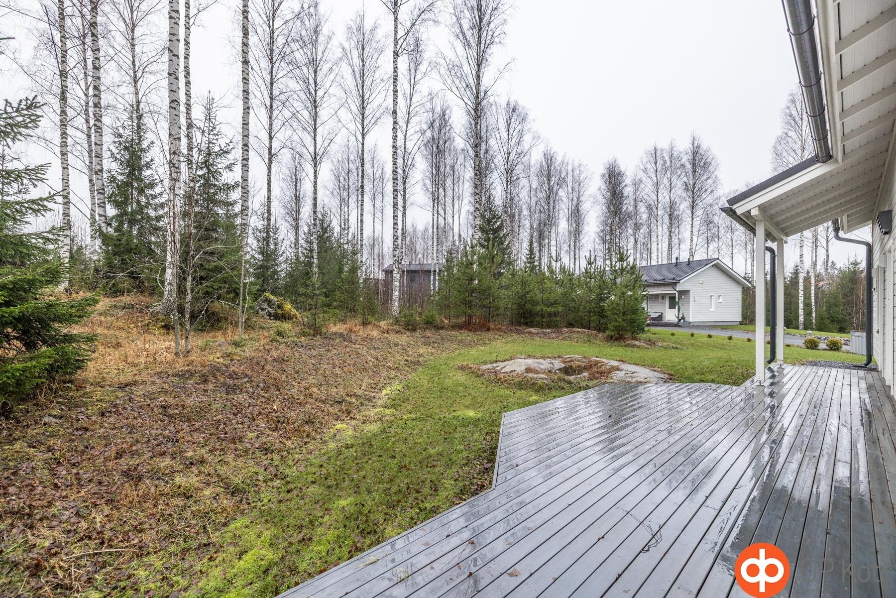 - Piha-alue on nurmikkoa, tontin takarajalta alkaa metsäinen viheralue. Takapihalla on näkyvissä kalliota, jota voit hyödyntää istutuksia suunnitellessasi.
