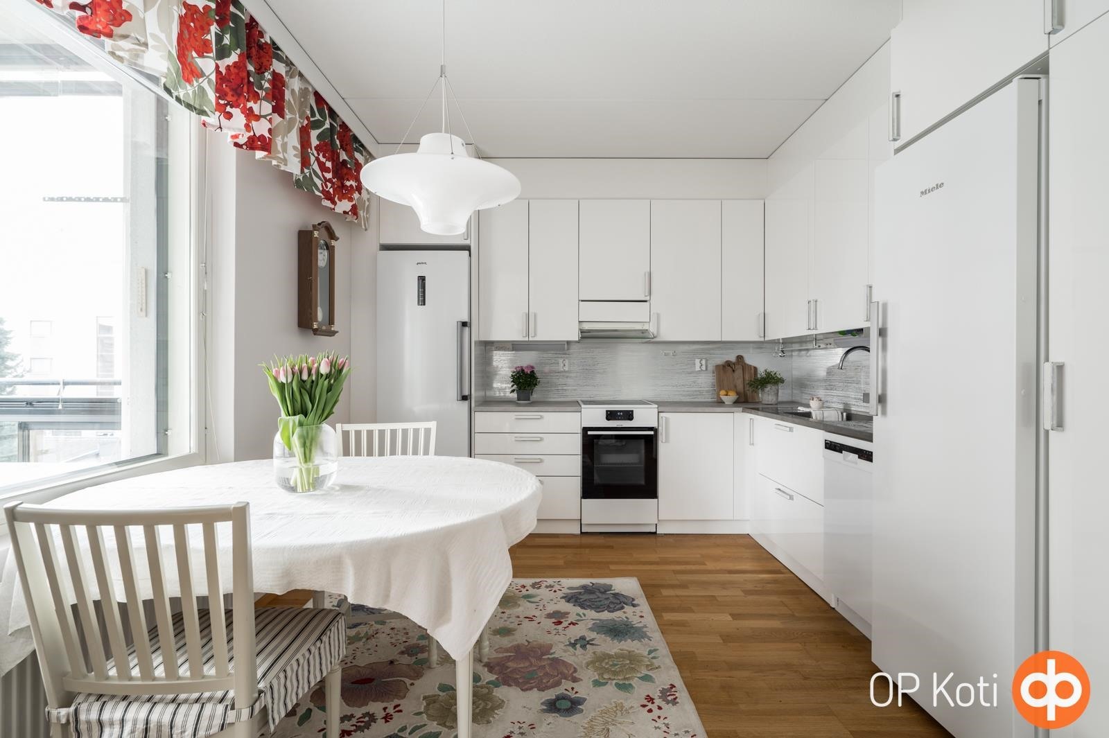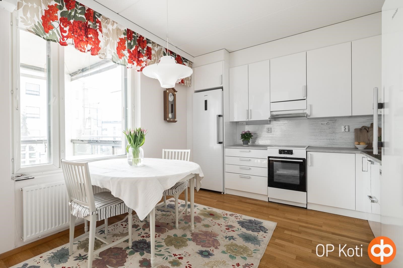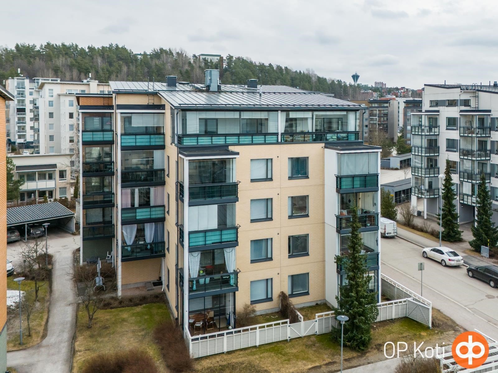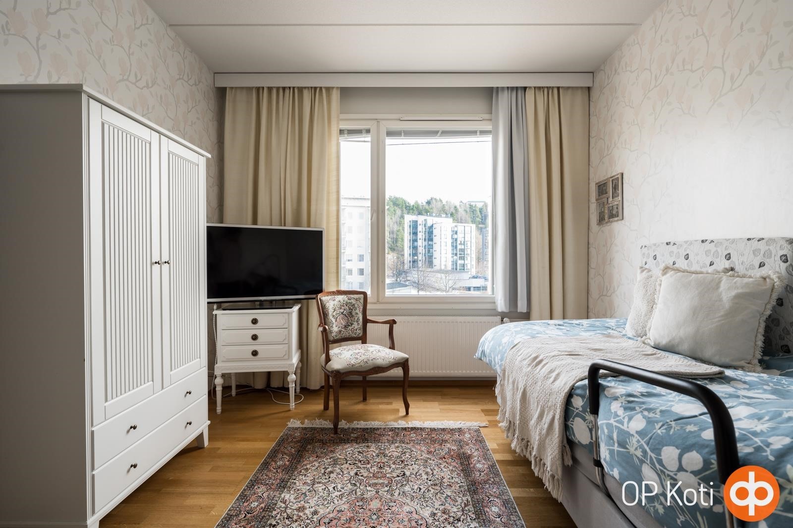 Asunnossa on toimiva pohjaratkaisu: kaksi makuuhuonetta, tilava olohuone, erillinen wc, kylpyhuone, sauna sekä hyvin suunniteltu keittiö. Keittiö on remontoitu kokonaisuudessaan vuonna 2019, ja erillinen wc on saanut uudet kalusteet vuonna 2020. Toiseen makuuhuoneeseen asennettiin vuonna 2025 uudet liukuovikaapistot, jotka tuovat reilusti säilytystilaa. Muilta osin asunto on alkuperäisessä mutta siistissä kunnossa, ja huoneistoa on päivitetty mm. seinätapetein. Tilava lasitettu parveke toimii lähes lisähuoneena suuren osan vuodesta.