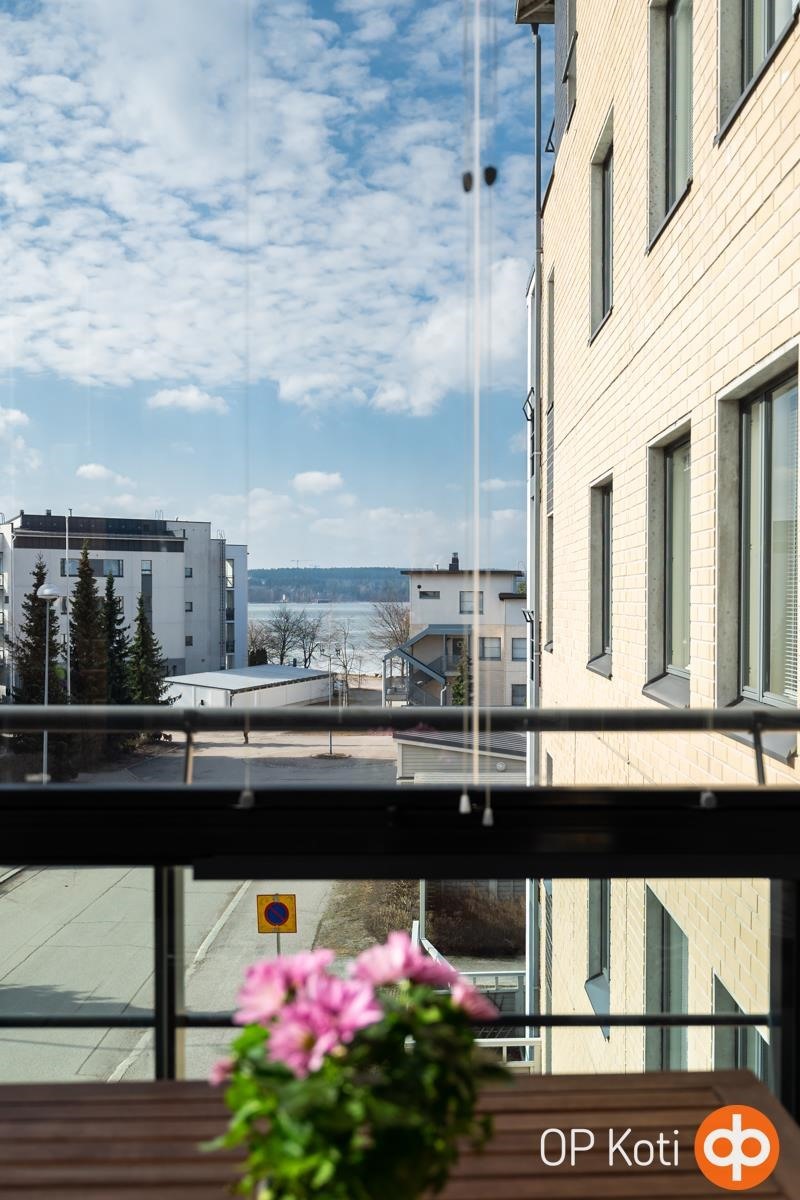 - Olohuoneesta näkymät Vesijärvelle ja proomukadun suuntaisesti molempiin suuntiin.