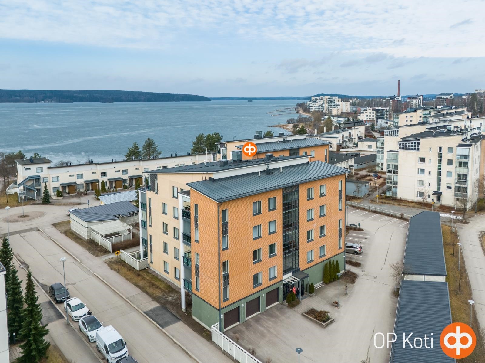 Lahden halutulla Ankkurin alueella, kolmannessa kerroksessa sijaitseva hyväkuntoinen 75,5 m²:n kolmio tarjoaa viihtyisän kodin järvinäkymillä ja erinomaisella sijainnilla. Olohuoneen suurista ikkunoista sekä tilavalta lasitetulta parvekkeelta avautuu kaunis näkymä Vesijärvelle.