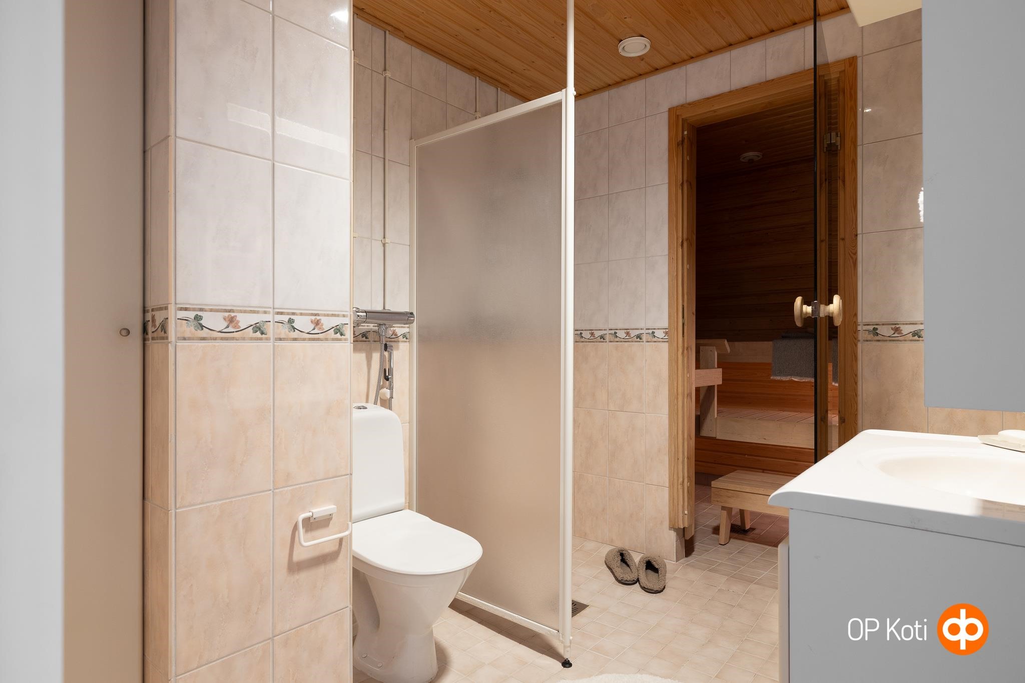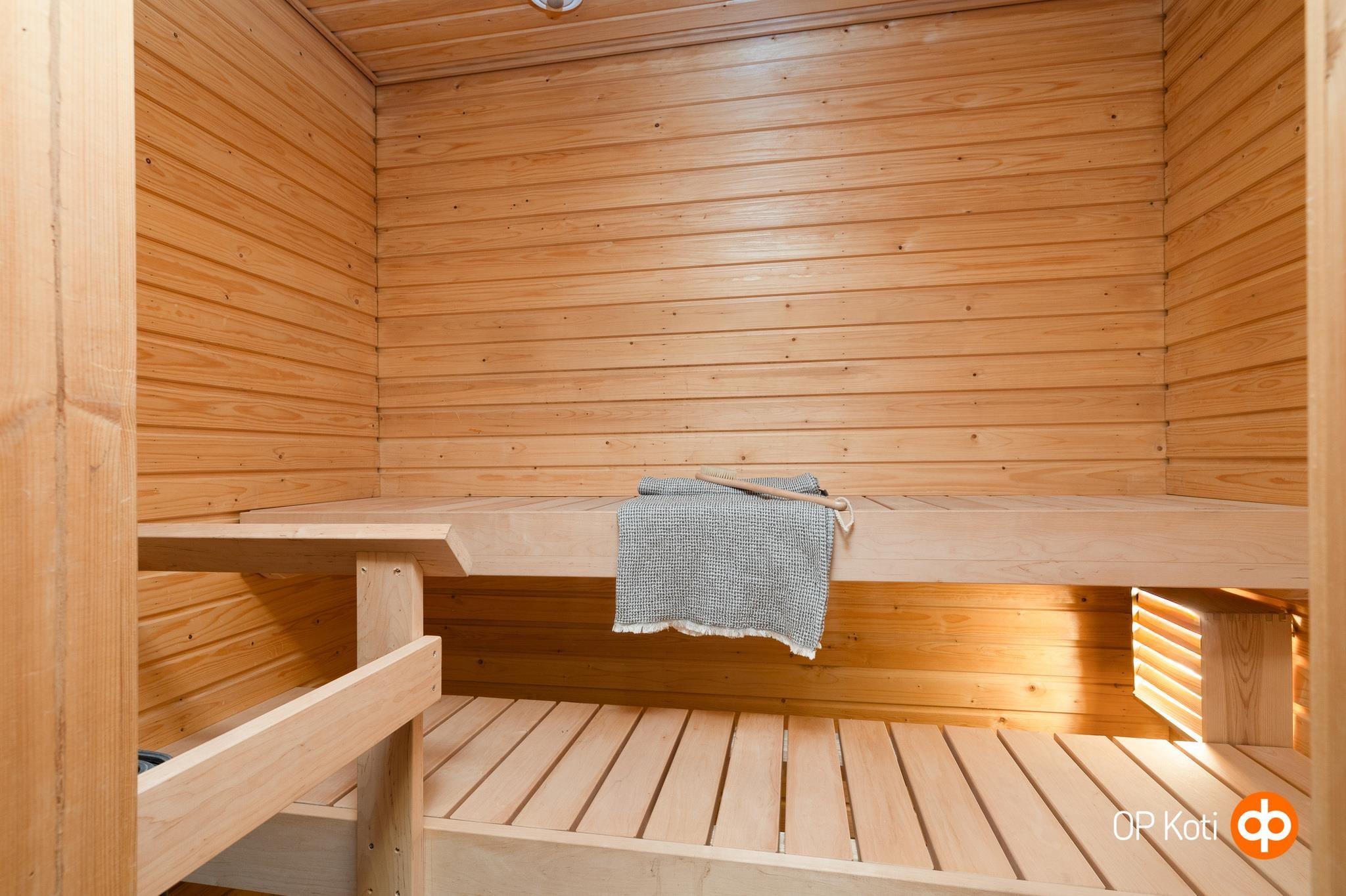 - Sauna, kylpyhuone, suihku, peilit, allaskaappi, pesukoneliitäntä, kiinteät valaisimet.