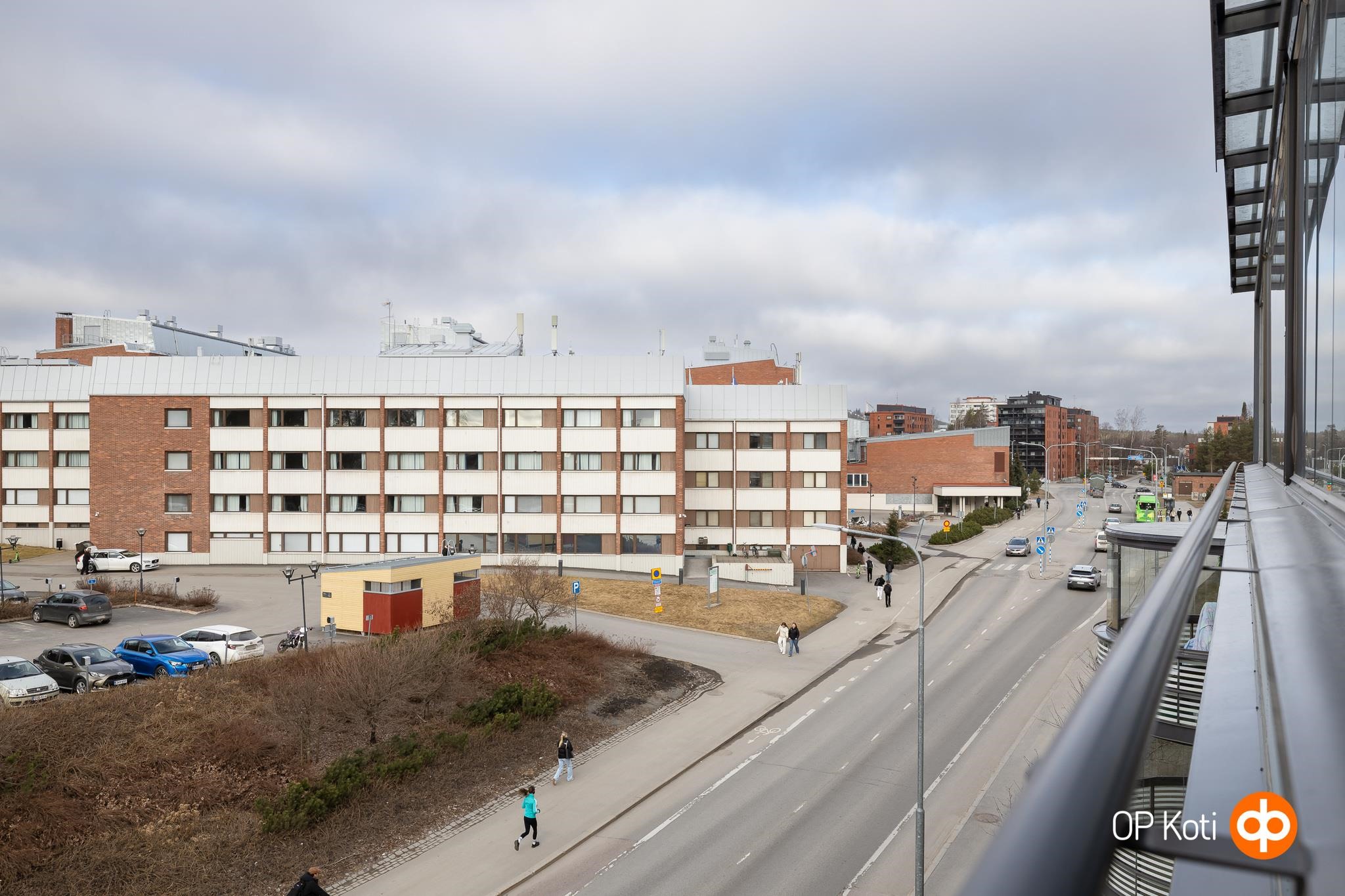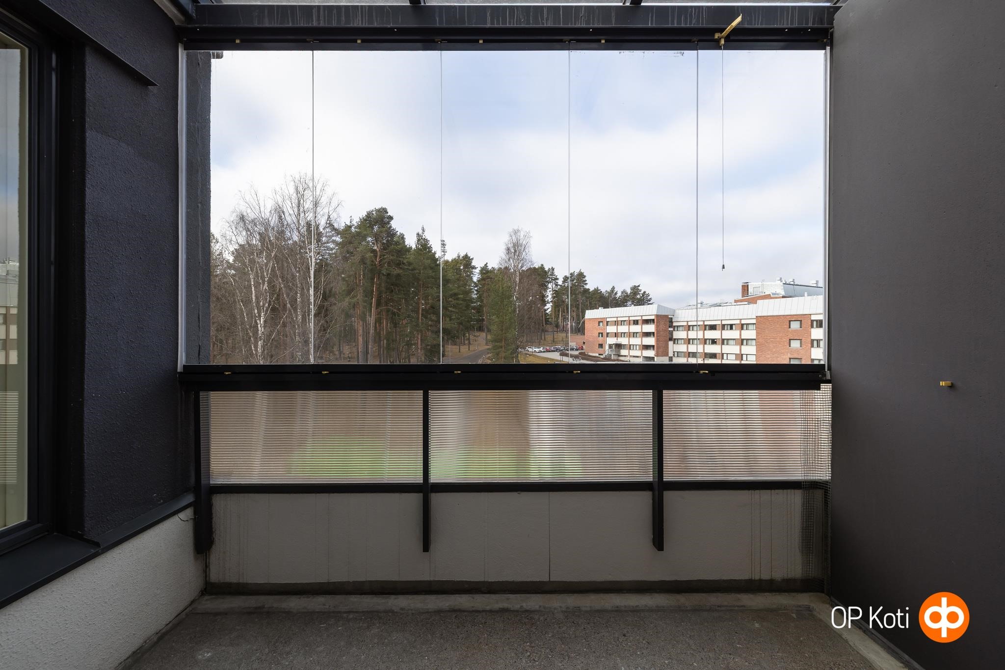 - Iso lasitettu parveke, jolta aukeaa maisemat lounaan suuntaan kohti Harjua