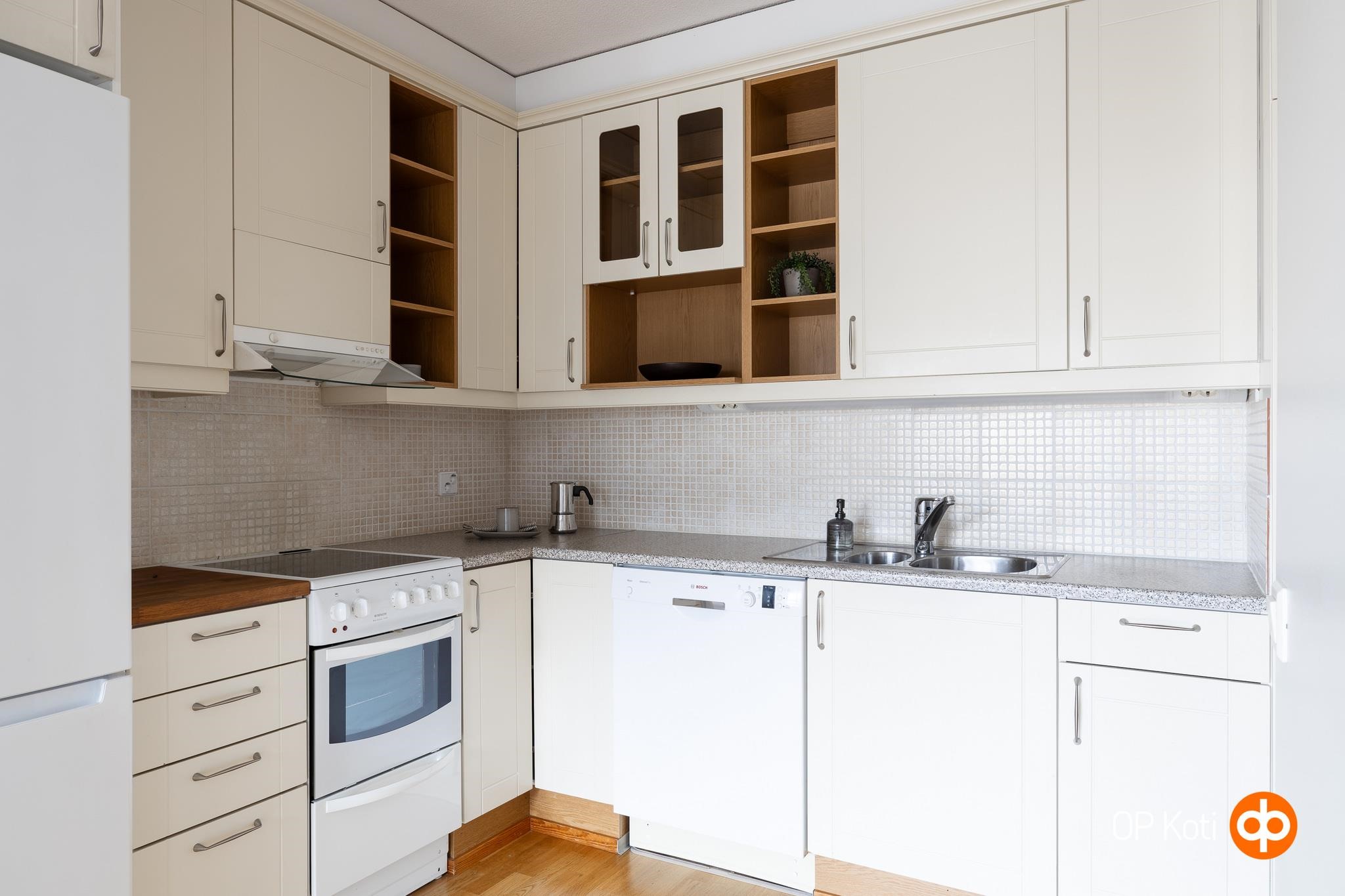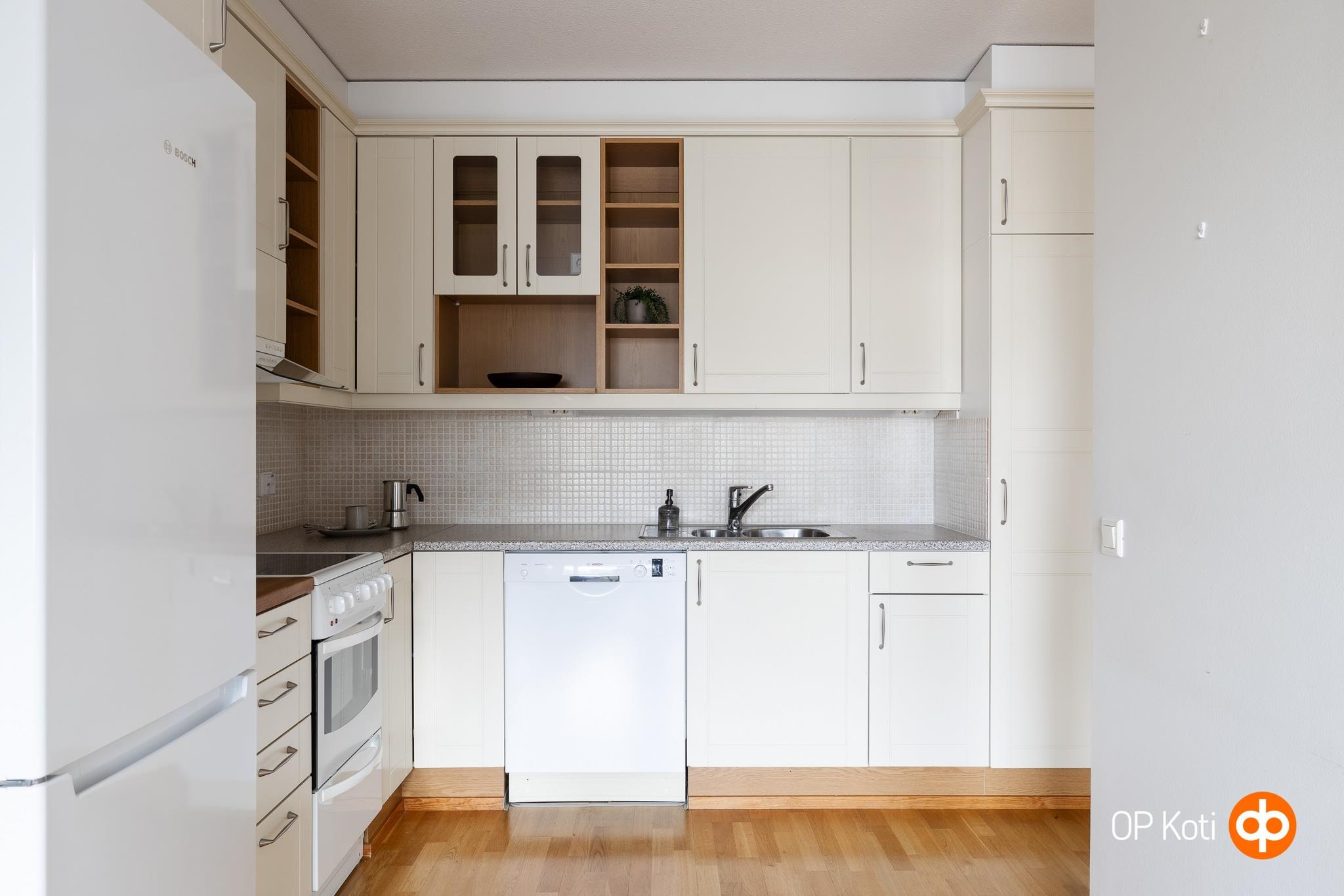 - Jääkaappipakastin Bosch hankittu v. 2024, keraaminen liesi Rosenlew, liesituuletin, mikroaaltouuni, astianpesukone Bosch hankittu v-2019-20, kaapistot, kiinteät valaisimet välitilassa.