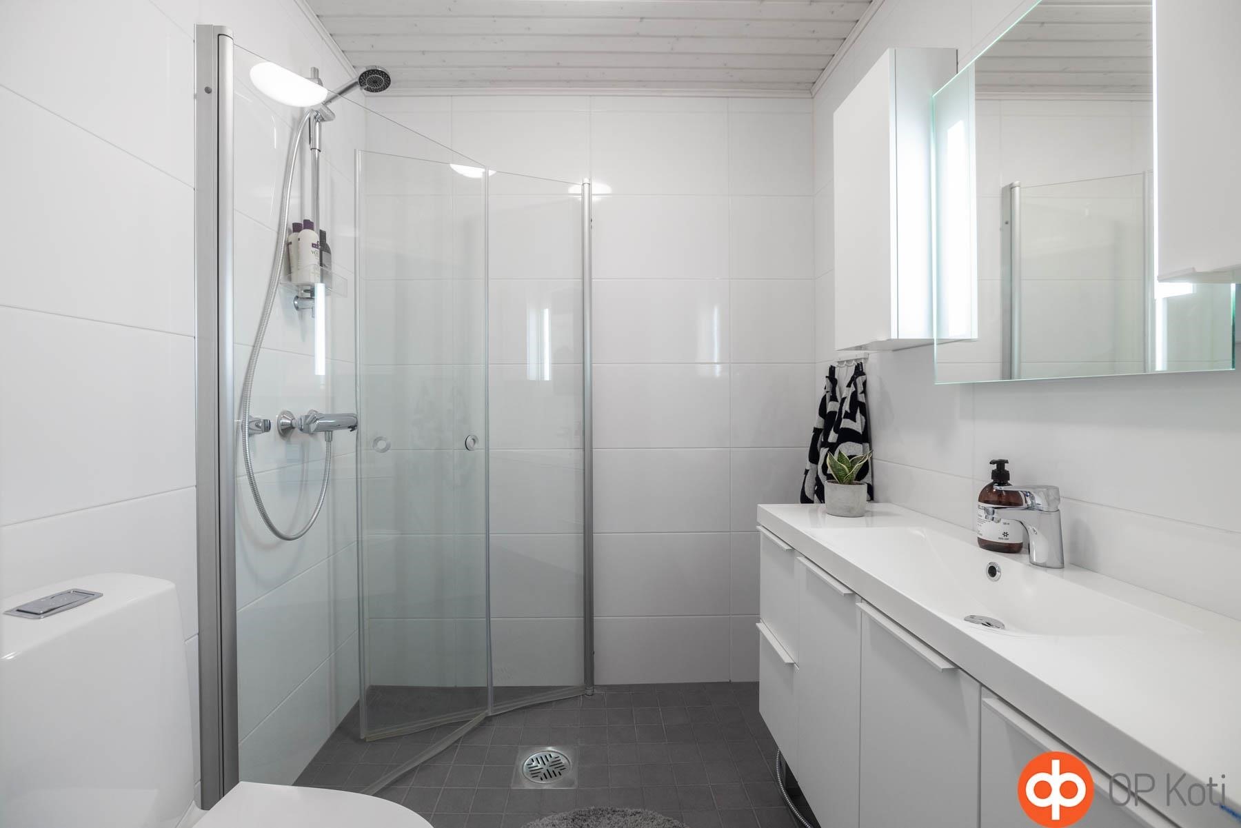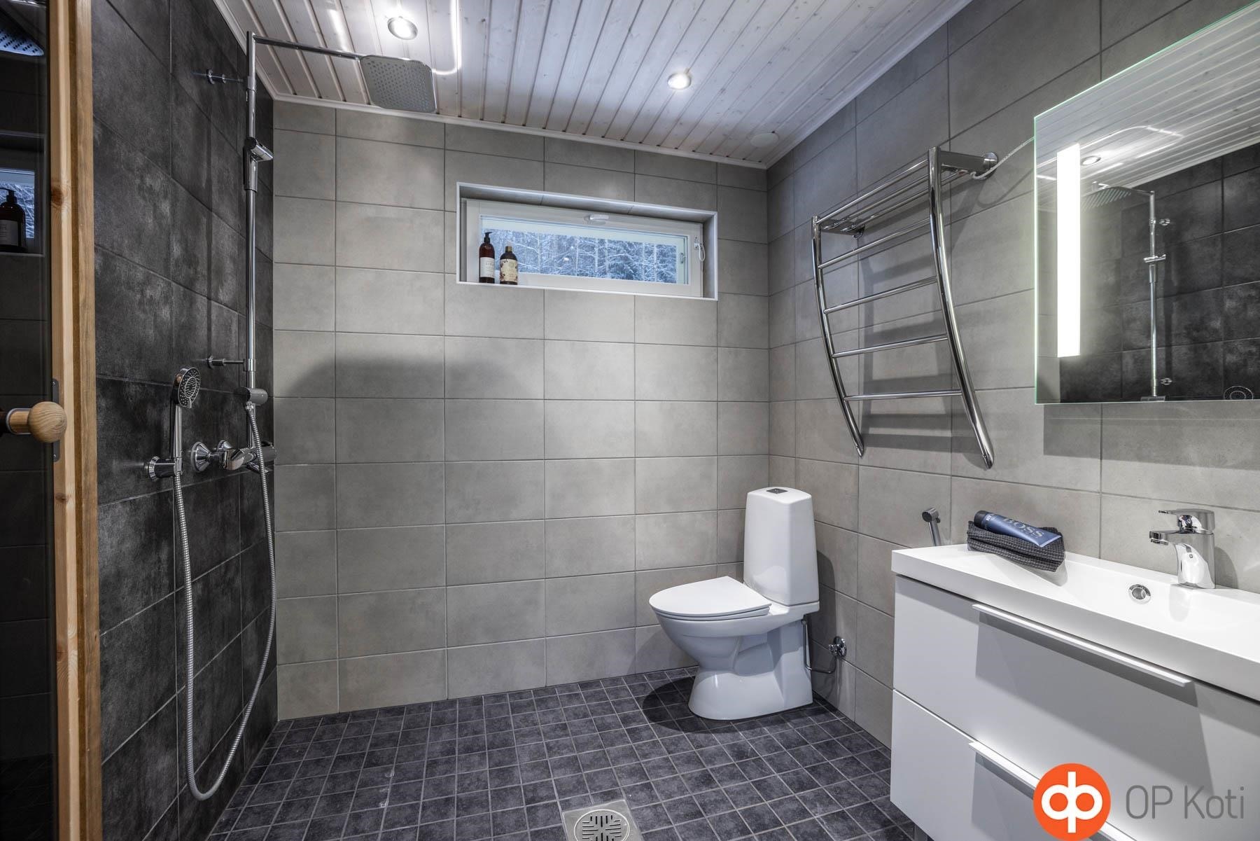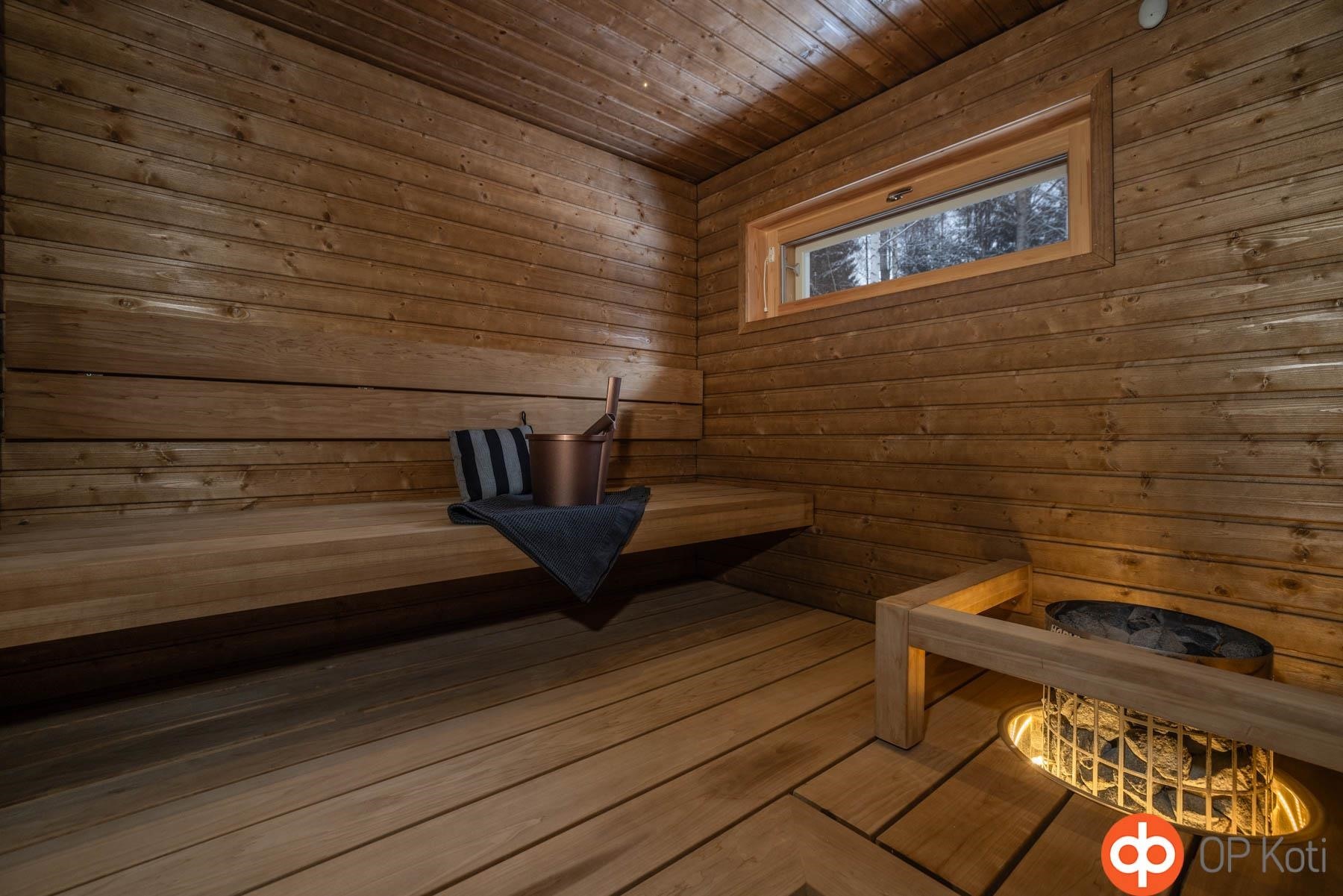- Sauna, sähkökiuas, kylpyhuone 2x, suihku, poreallas upotettu terassi, peilit, allaskaappi, pesukoneliitäntä khh, lattialämmitys kaikkialla, kiinteät valaisimet.