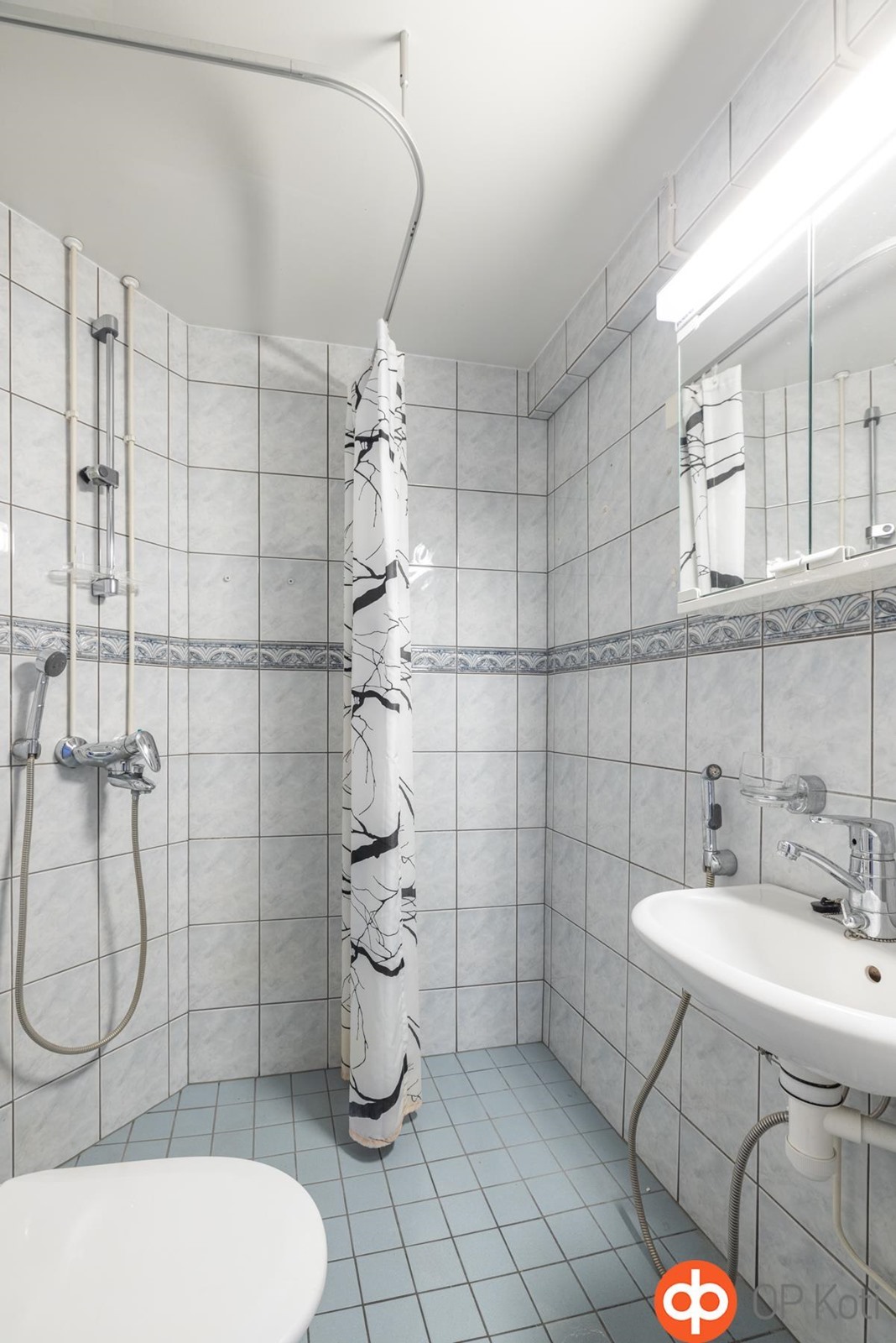 - Suihku, peilikaappi, allaskaappi, pesukoneliitäntä, kiinteät valaisimet.