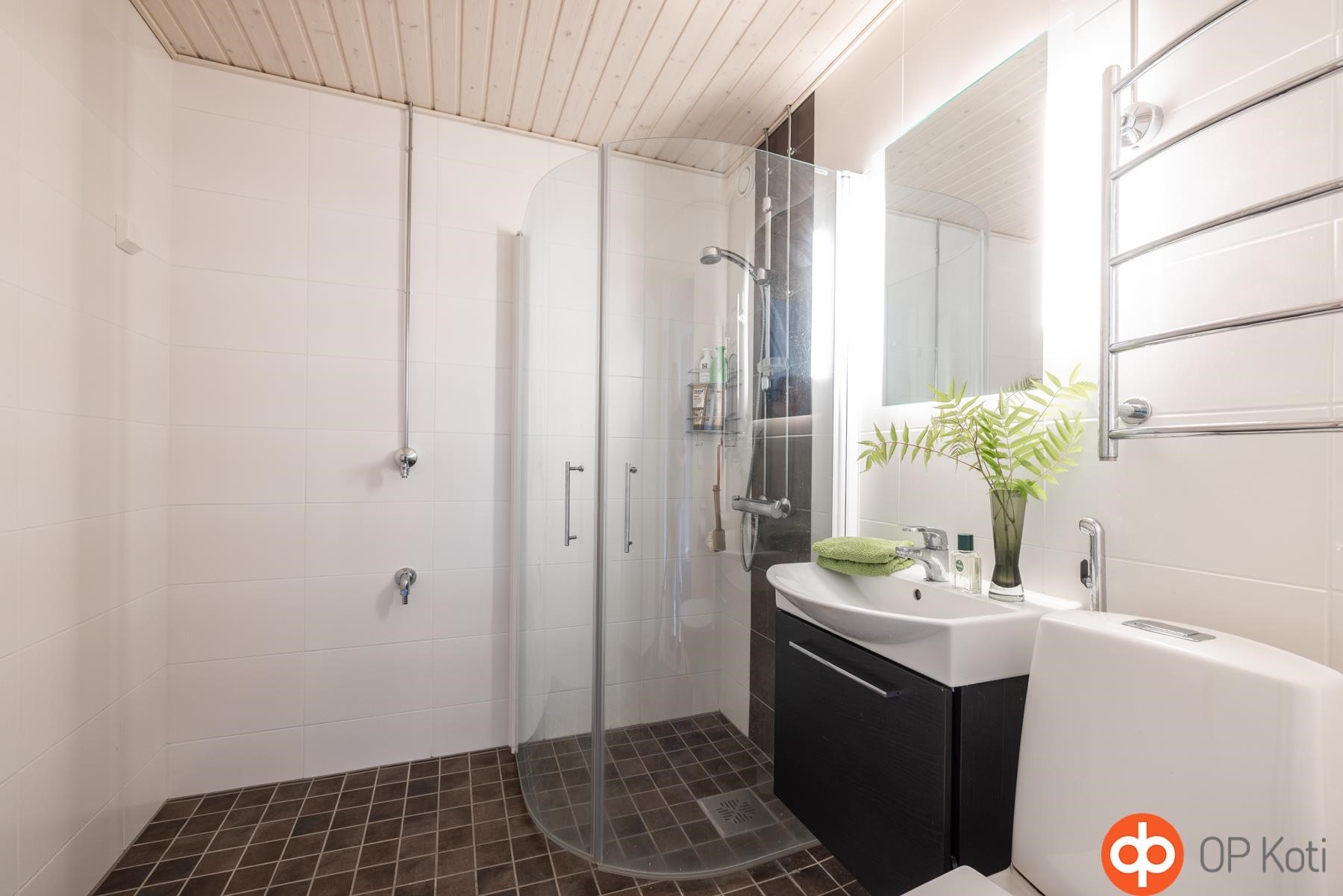 - Kylpyhuone, peilit, allaskaappi, pesukoneliitäntä, kiinteät valaisimet.