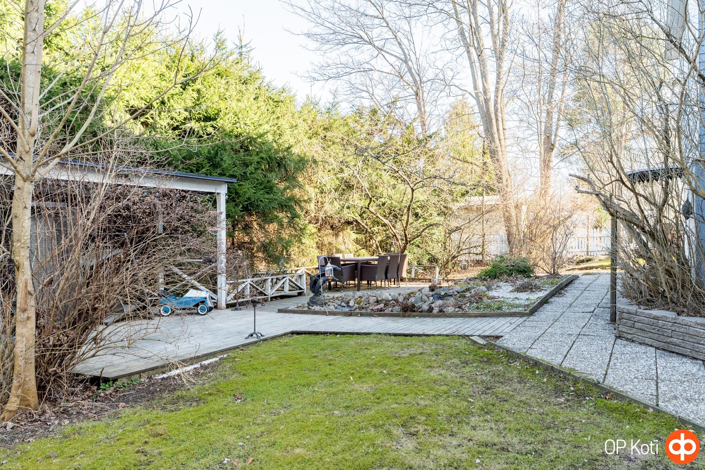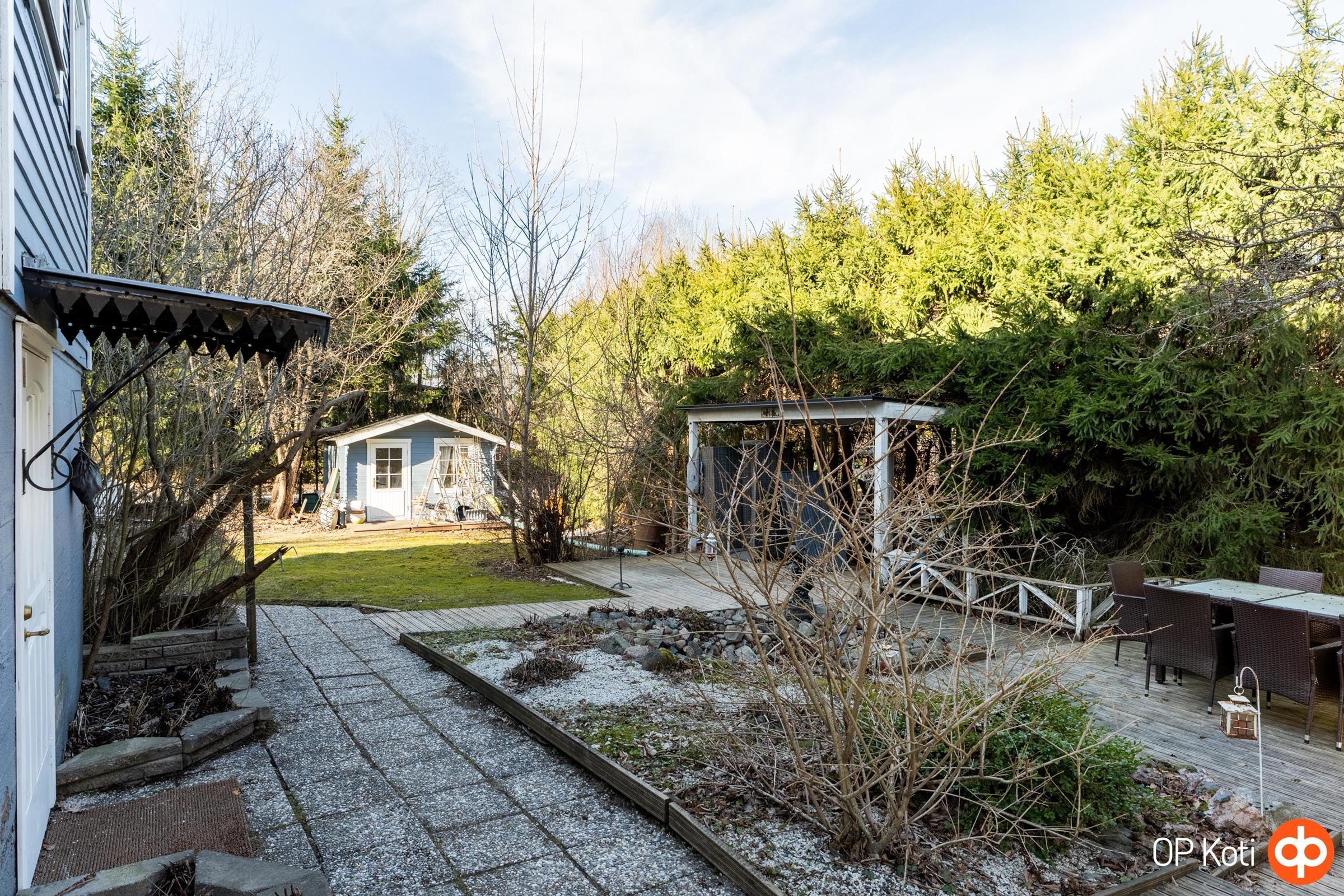Pihapiiri tarjoaa runsaasti mahdollisuuksia. Lähes 1000 m²:n tontti antaa tilaa niin oleskelulle, leikeille kuin puutarhaharrastuksille. Pienempiä perheenjäseniä ilahduttaa pihalla sijaitseva leikkimökki. Käytännöllisyyttä lisää autotallirakennus, joka on rakennettu vuonna 1997 ja soveltuu erinomaisesti niin autolle, varastointiin kuin harrastetilaksi.