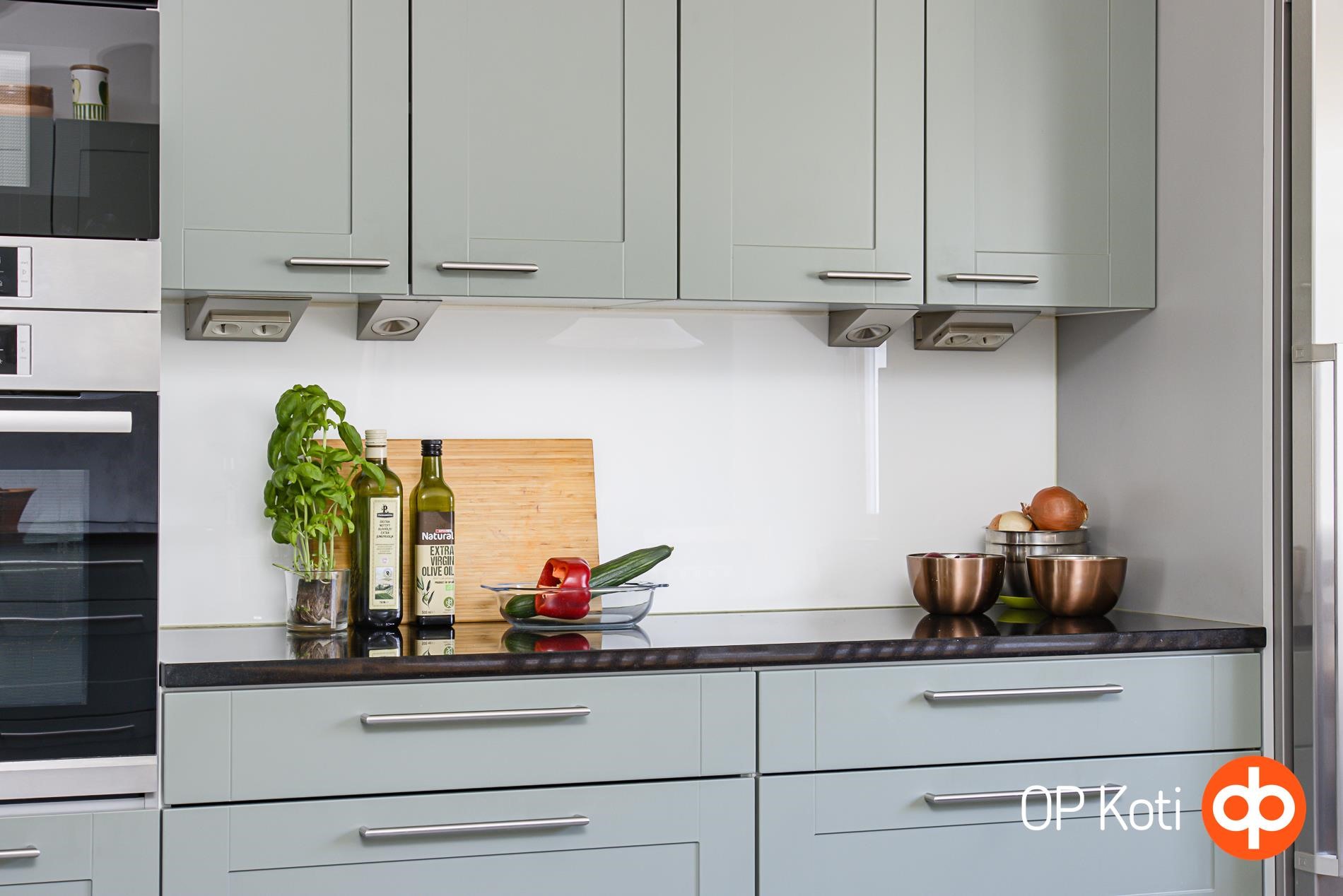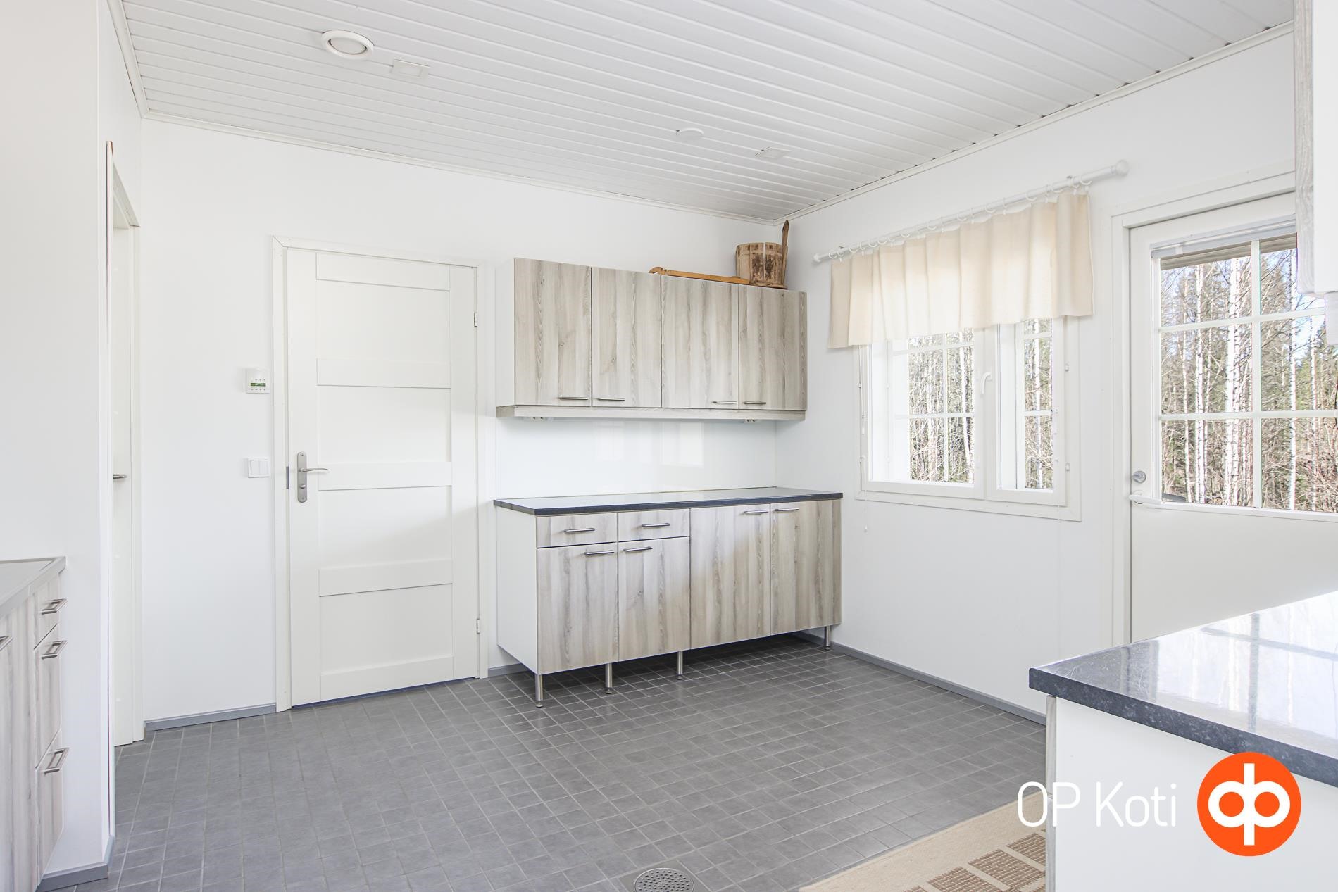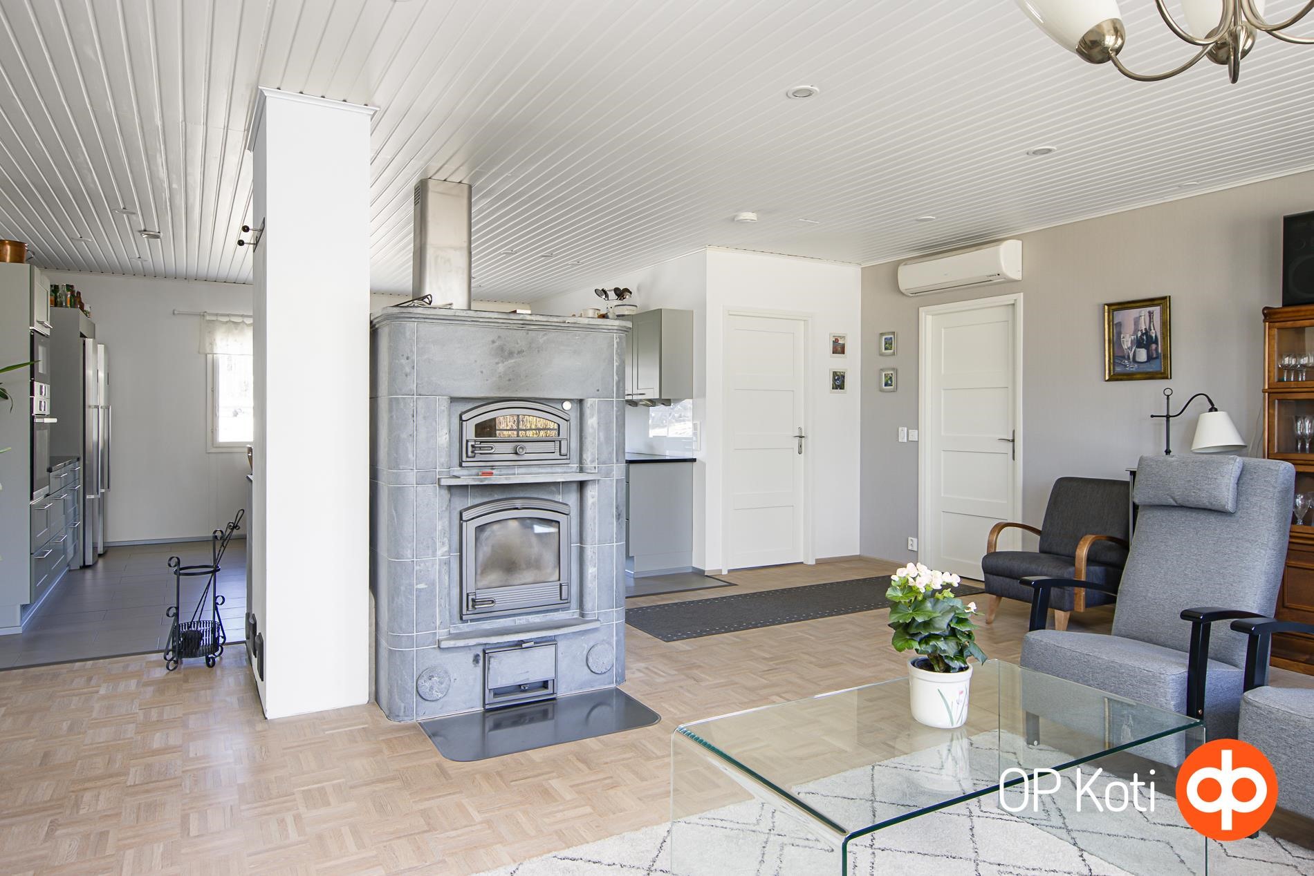 - Jääkaappi, pakastekaappi, erillisuuni, liesitaso induktioliesitaso, liesituuletin, leivinuuni + puuliesi, astianpesukone, kaapistot kaapistojen ovet vaihdettu v. 2025, kiinteät valaisimet, pöytätasojen materiaali kivitasot.