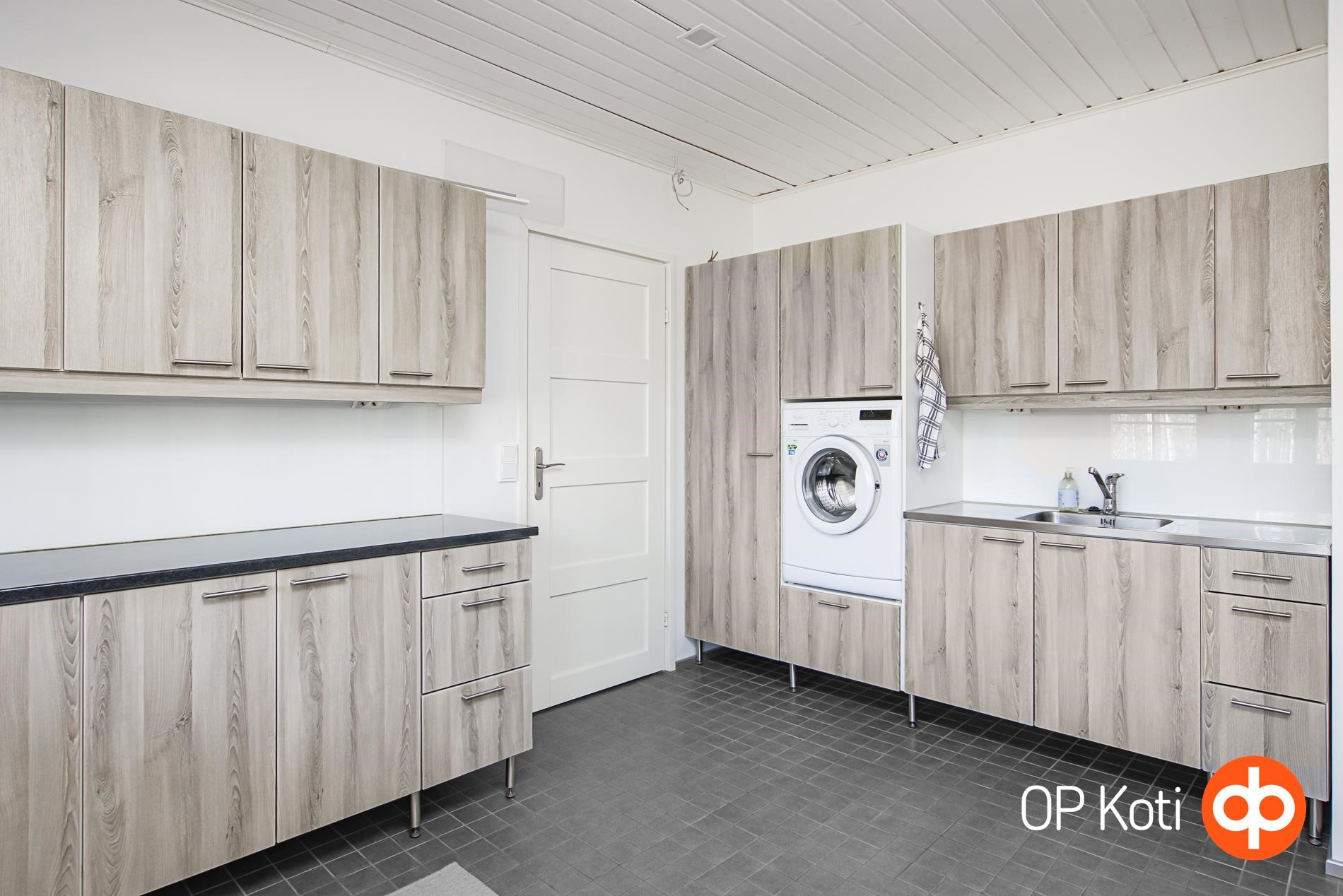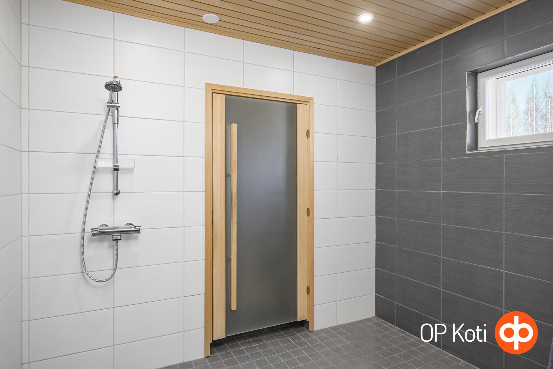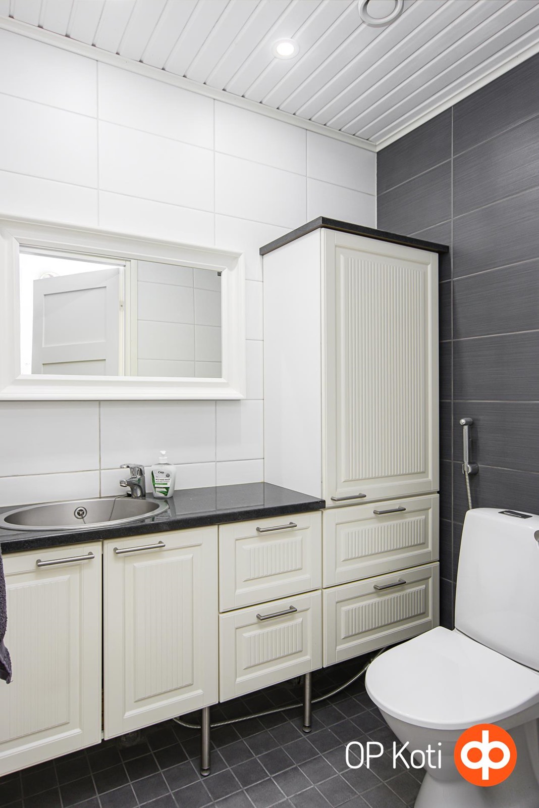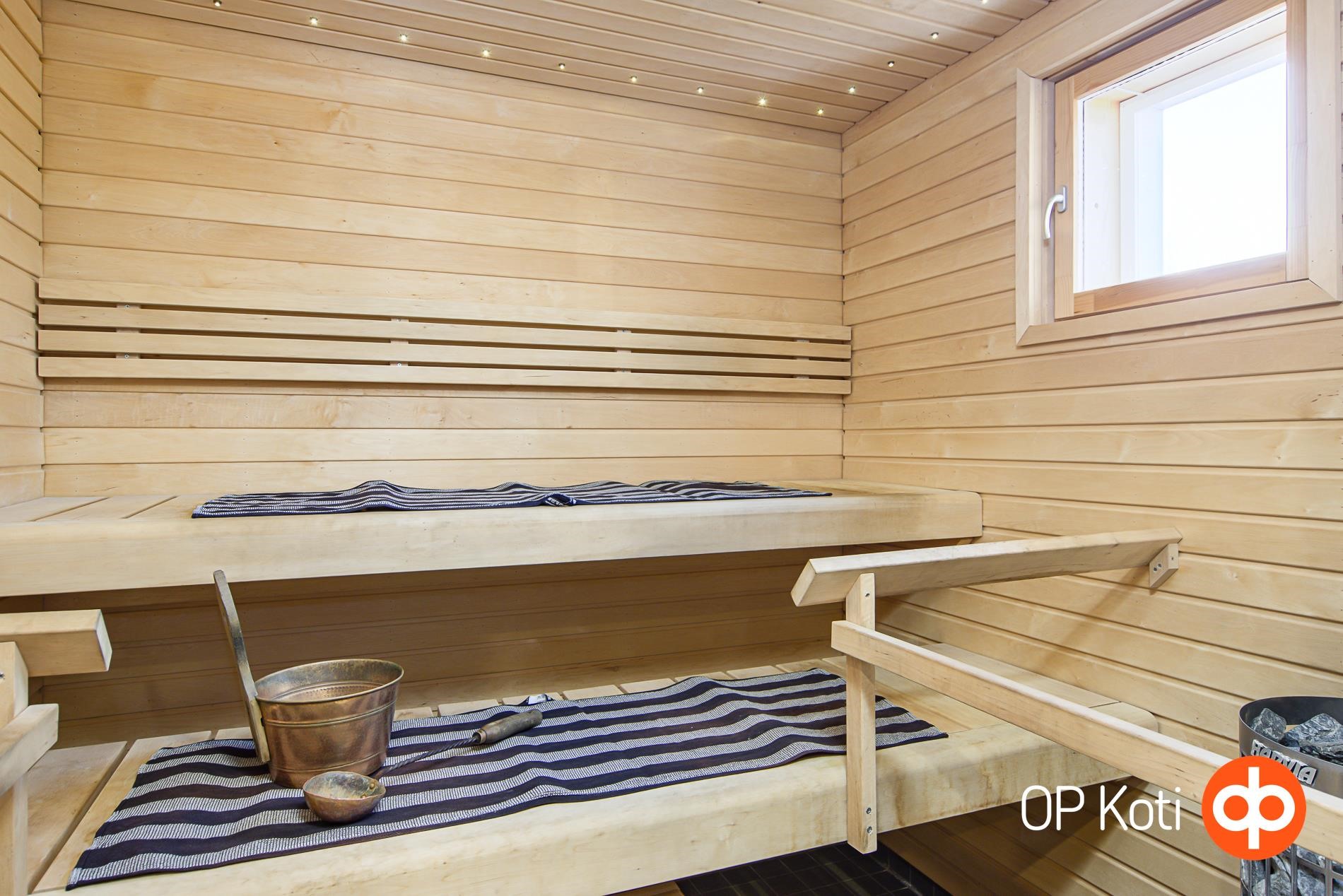 - Sauna, sähkökiuas kivikiuas, kylpyhuone, erillinen wc kaksi erillistä wc:tä, suihku kaksi suihkua, peilikaappi, kaapit, allaskaappi, pesukoneliitäntä kodinhoitohuoneessa, runsaasti kaapistoja, lattialämmitys, kiinteät valaisimet.