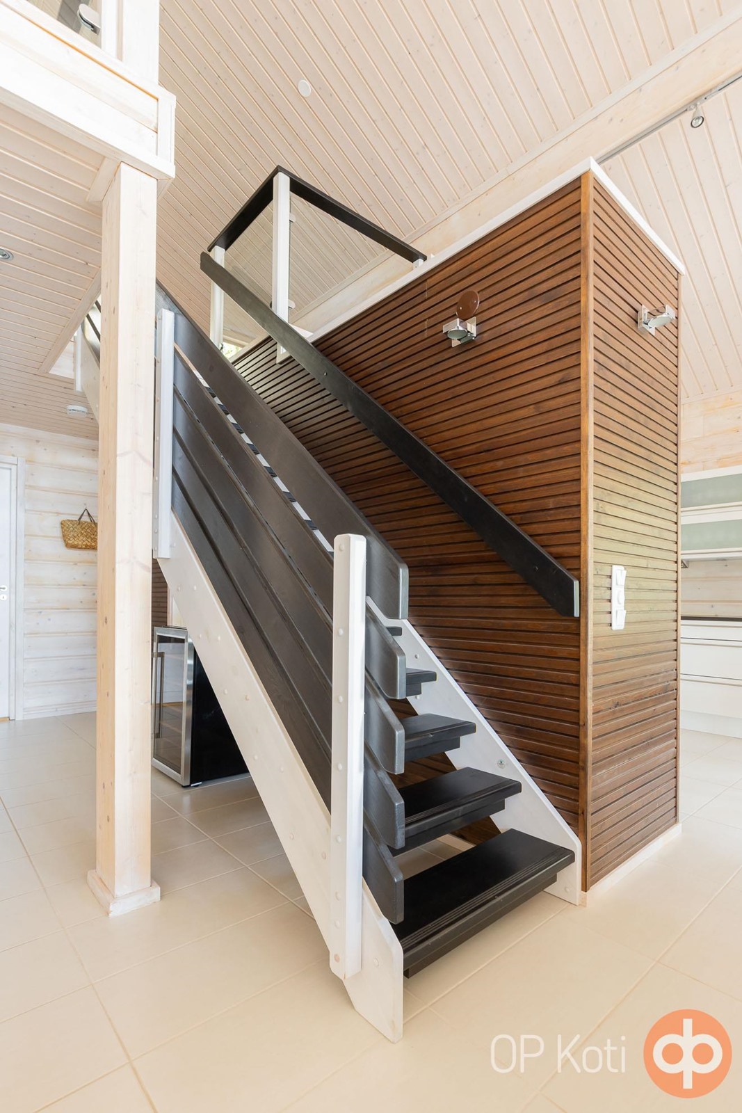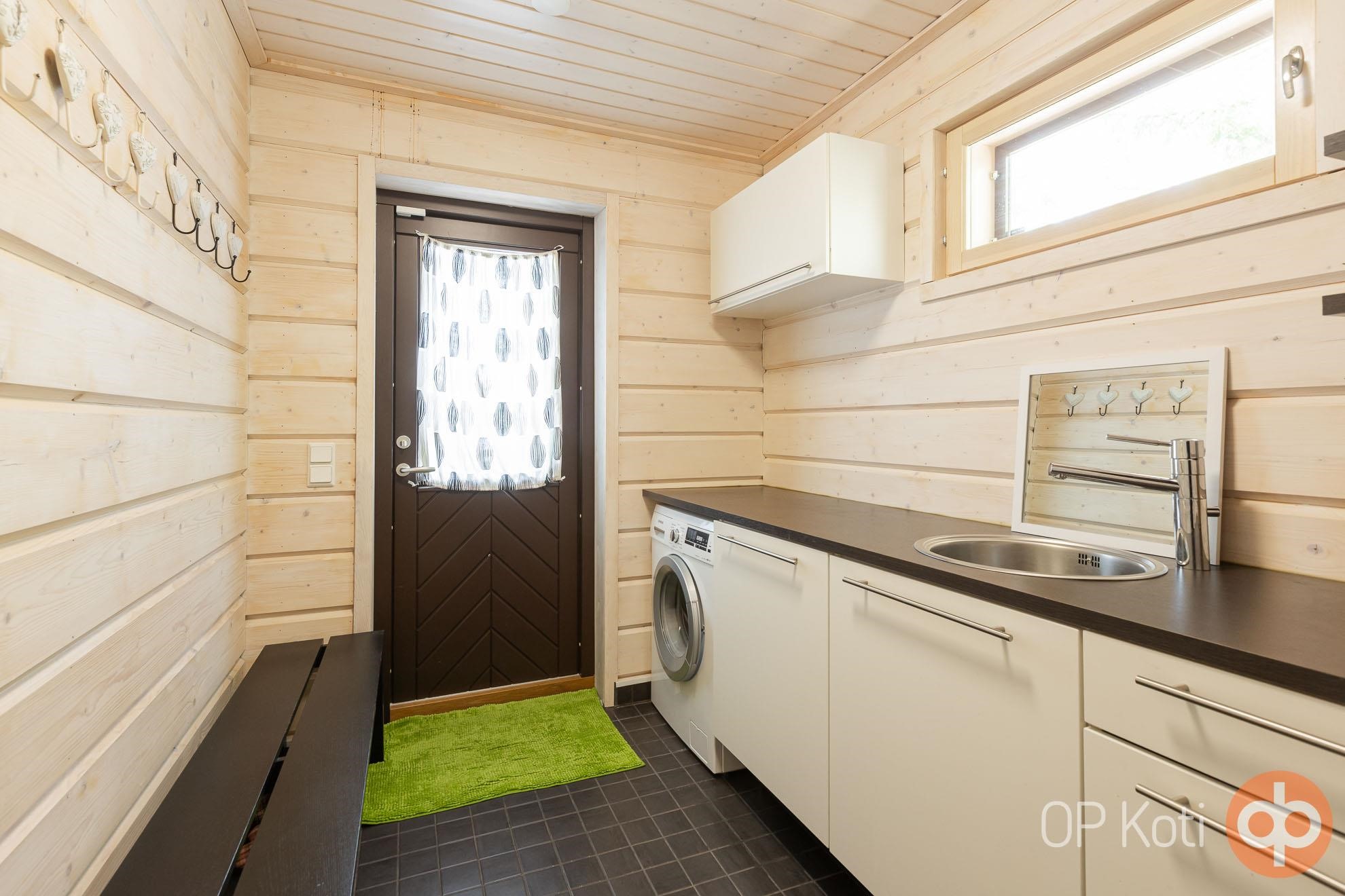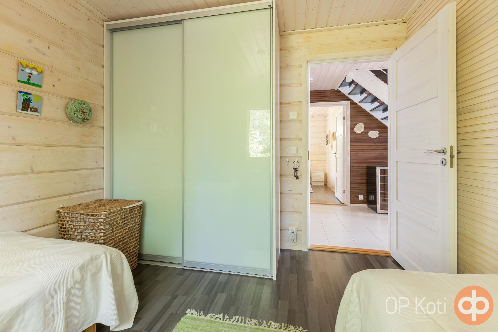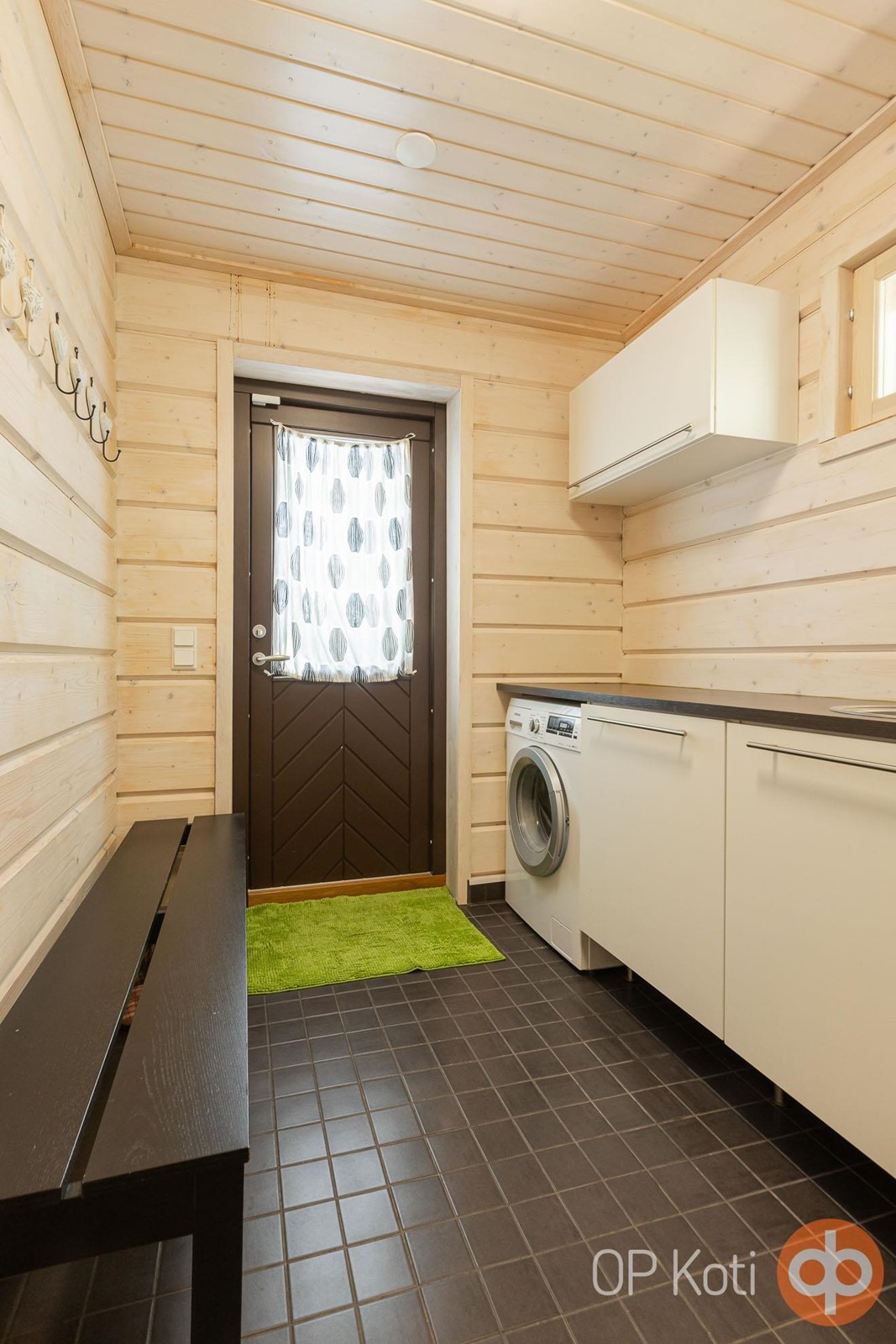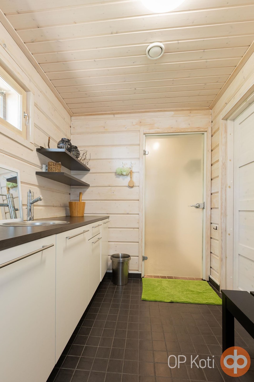 Keittiö: Lattia: laatta, seinät: valkokuullotettu hirsi, välitila: lasi. Olohuone: Lattia: laatta, seinät: valkokuullotettu hirsi. Makuuhuone 1: Lattia: laminaatti, seinät: valkokuullotettu hirsi. Makuuhuone 2: Lattia: laminaatti, seinät: valkokuullotettu hirsi. Kodinhoitohuone: Lattia: laatta, seinät: valkokuullotettu hirsi. Sauna: Lattia: laatta, seinät:. Kylpyhuone: Lattia: laatta, seinät: laatta. Wc: Lattia: laatta, seinät: laatta. Parvi: Lattia: laminaatti, seinät: valkokuullotettu hirsi.