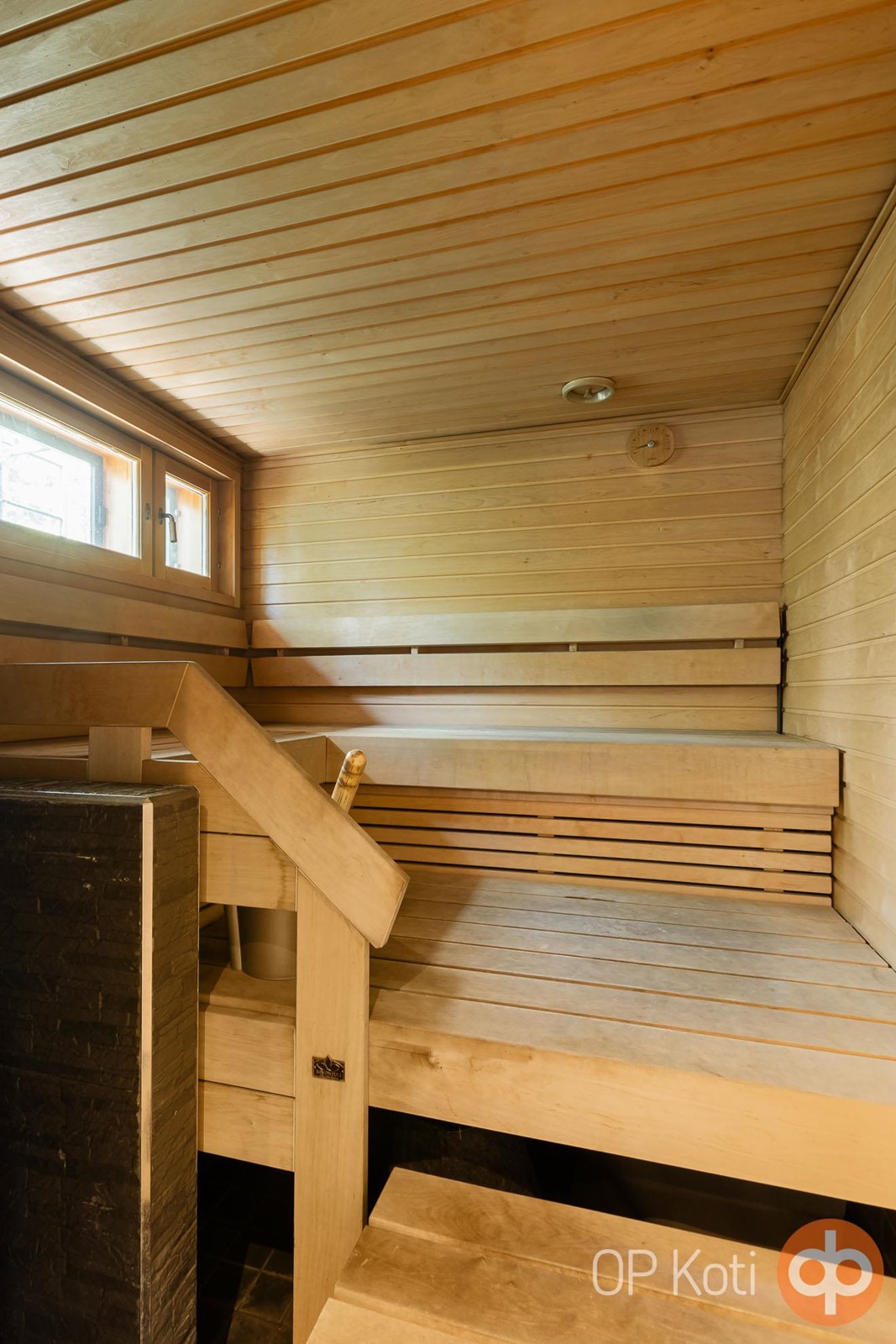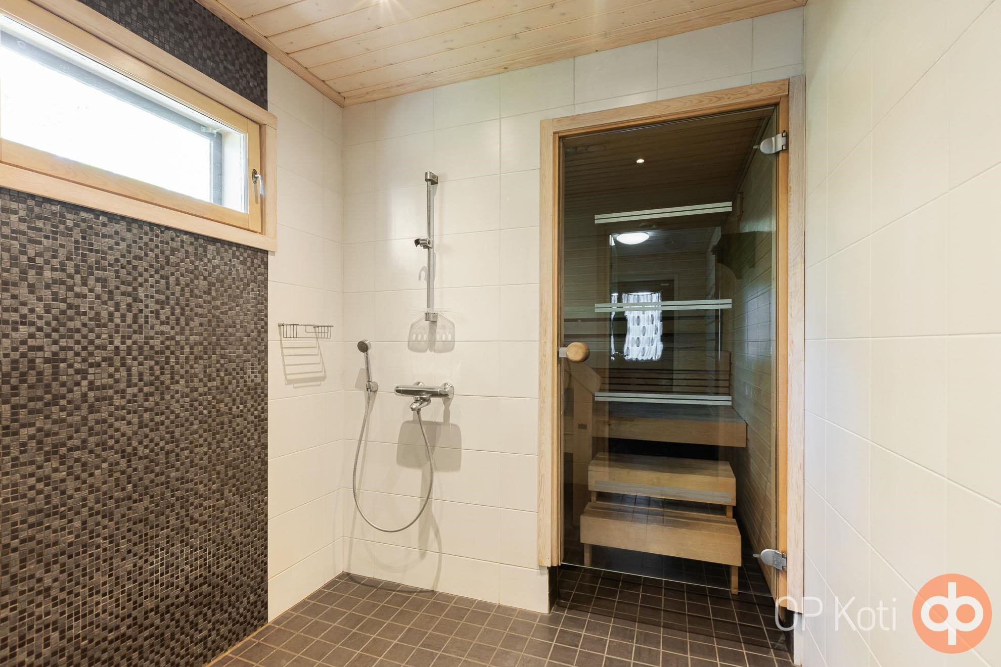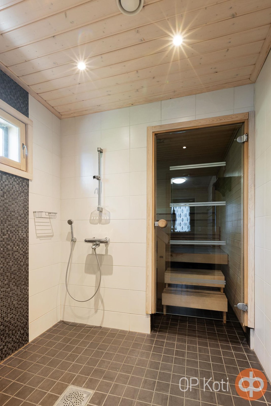 - Sauna, puukiuas, kylpyhuone, erillinen wc, suihku 2x suihkua, peilit erillisessä vessassa, allaskaappi Kodinhoitohuoneessa ja erillisessä vessassa, pesukoneliitäntä Kodinhoitohuoneessa, lattialämmitys, kiinteät valaisimet.