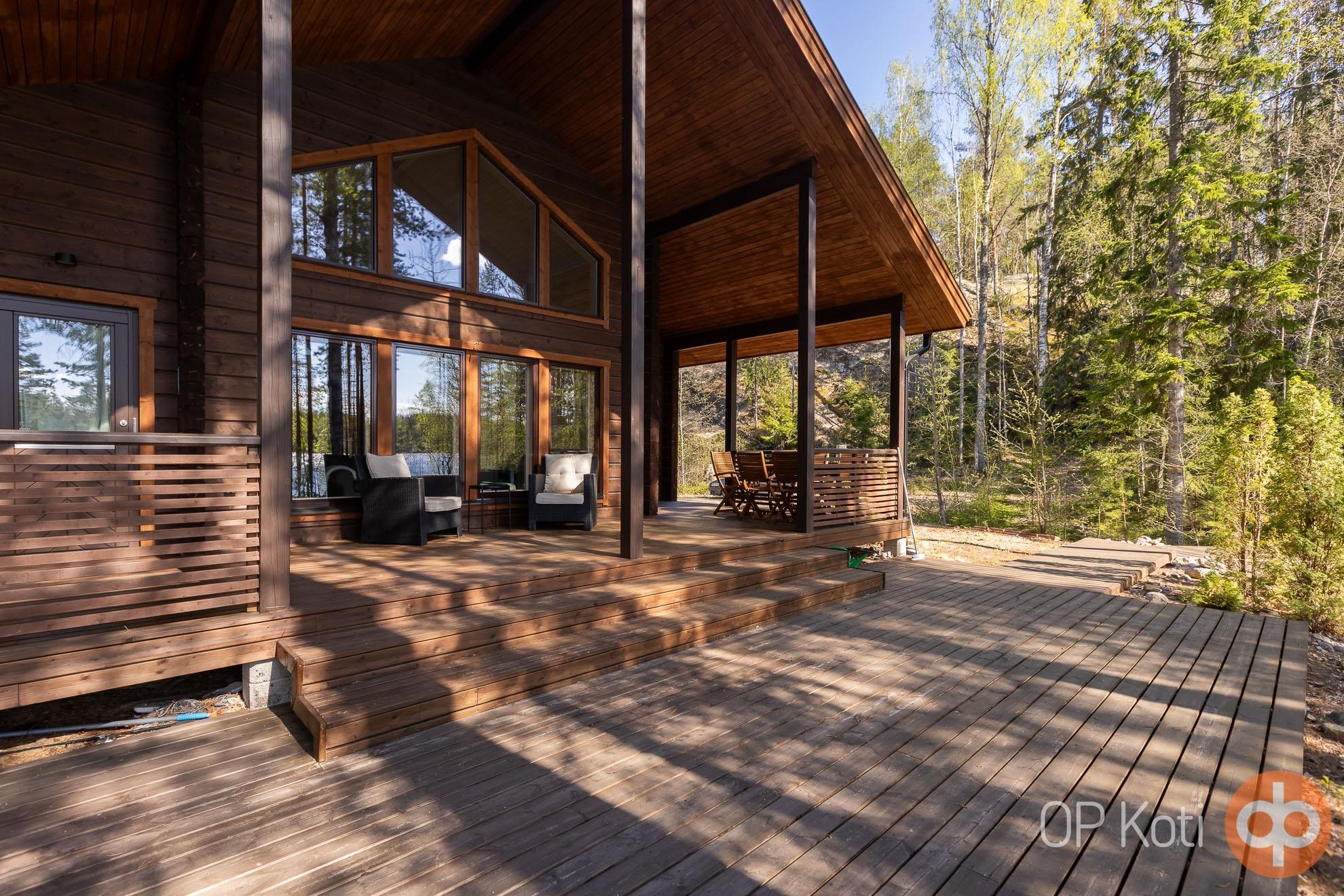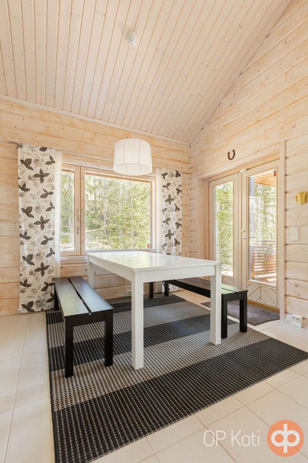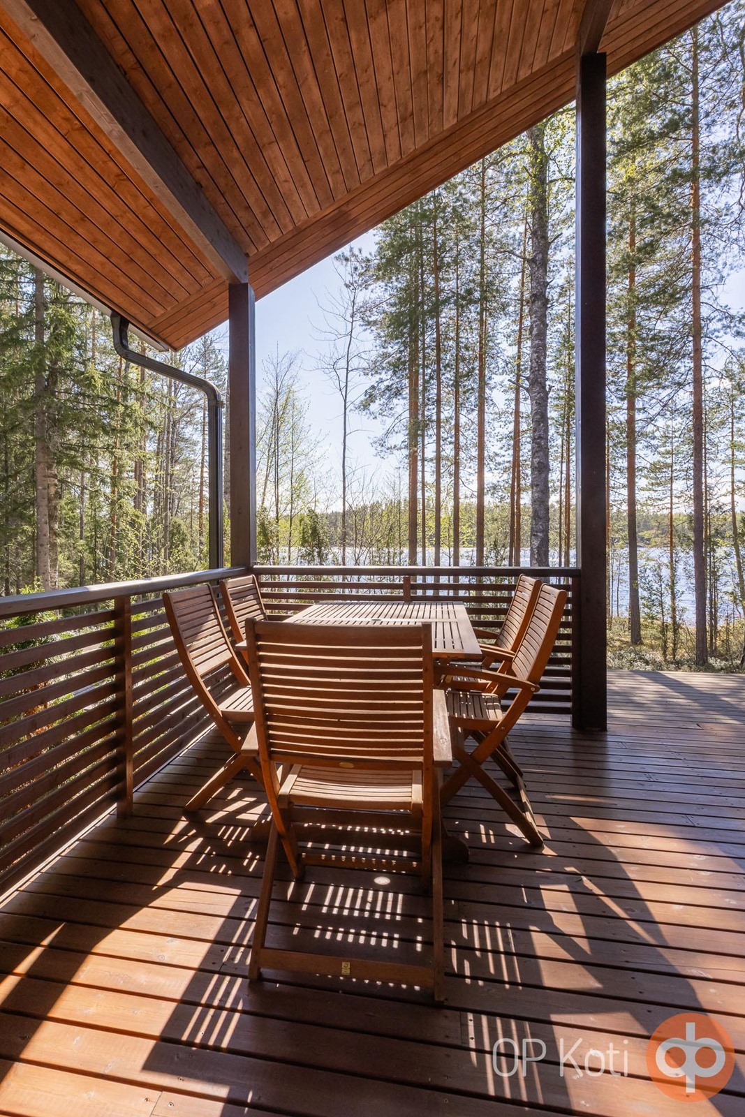 Tämä vapaa-ajan asunto sijaitsee Ala-Kuomion rannalla Ristiinan ja Mäntyharjun lähettyvillä Mikkelin eteläpuolella. Ala-Kuomio tunnetaan kirkasvetisenä järvenä, jossa kuikat pesivät ja ihastuttavat tunnelmallisella reviirikutsullaan. Ala-Kuomioon on istutettu kuhaa ja siikaa, joka takaa hyvät kalastusmahdollisuudet! Moderni vapaa-ajan asunto on rakennettu laadukkaasta lämpöhirrestä ja on todella energiatehokas. Lämmitys on toteutettu maalämmöllä ja Lämmönjako mielyttävällä lattialämmityksellä. Loma-asunnon värimaailma on vaalea, jossa isot vaaleat lattialaatat sekä valkolakattu hirsi luovat rauhallisen ja modernin ilmeen. Olohuoneen isoista ikkunoista tulee runsaasti valoa sisään ja keittiön varusteet voittavat monen omakotitalonkin keittiön. Kaksi makuuhuonetta ja parvi majoittavat hyvin mökkeilijät. Helppohoitoinen kunttapiha ei vaadi ruohonleikkausta, ja isolla terassilla voit järjestää vaikka lavatanssit! Autoille on hyvin tilaa talon vieressä, ja täyssähköautolle löytyy latauspiste ulko-oven luonta. Kauppaan voidaan sisällyttää huonekalut. Kiinnostuitko? Ota yhteyttä ja sovitaan yksityisesittely, jotta pääset tutustumaan tähän upeaan paikkaan paremmin! Jos sinulla on oma koti myymättä, ei hätää, voimme auttaa sinua siinäkin. OP Koti on nimittäin Suomen luotetuin välitysliike! Suunnitellaan myyntiä yhdessä