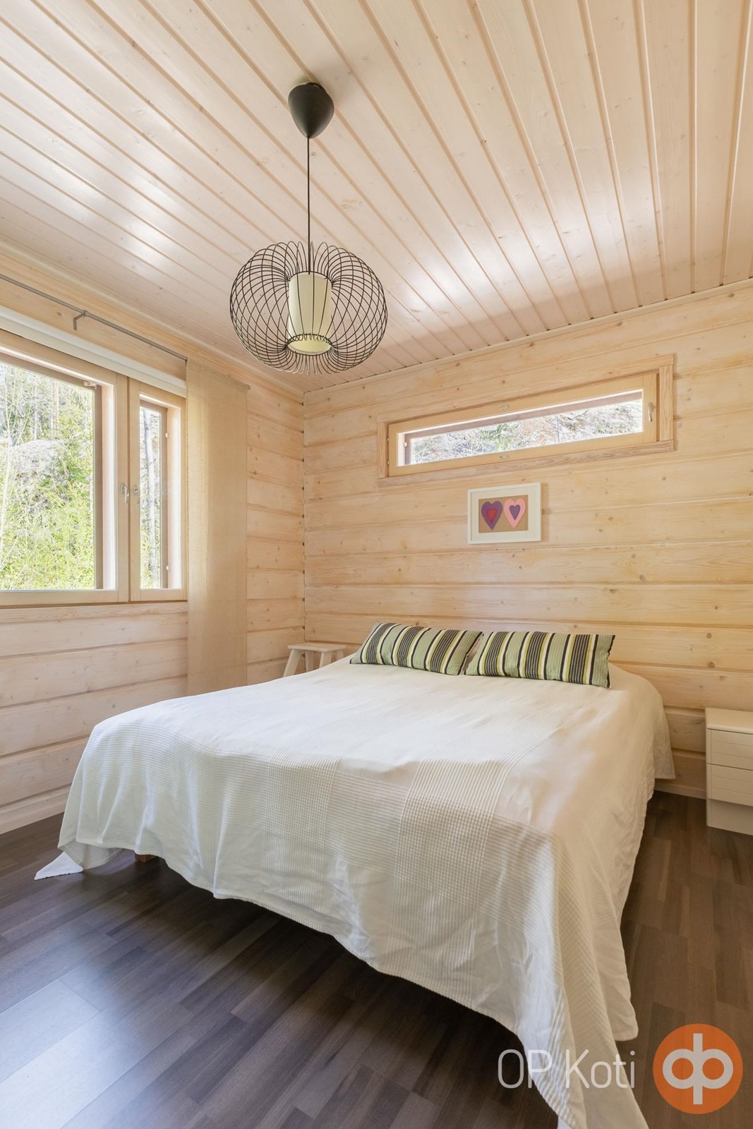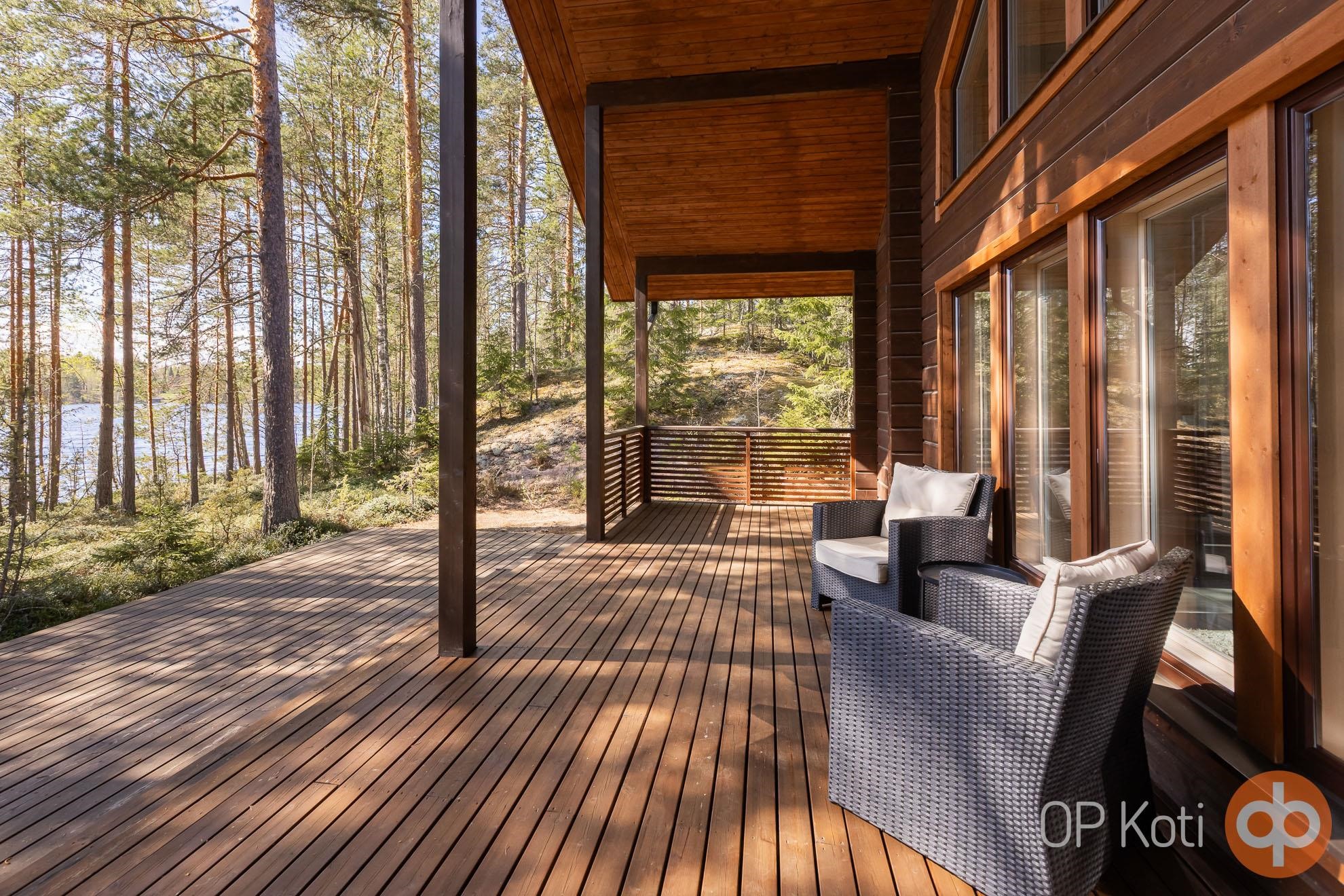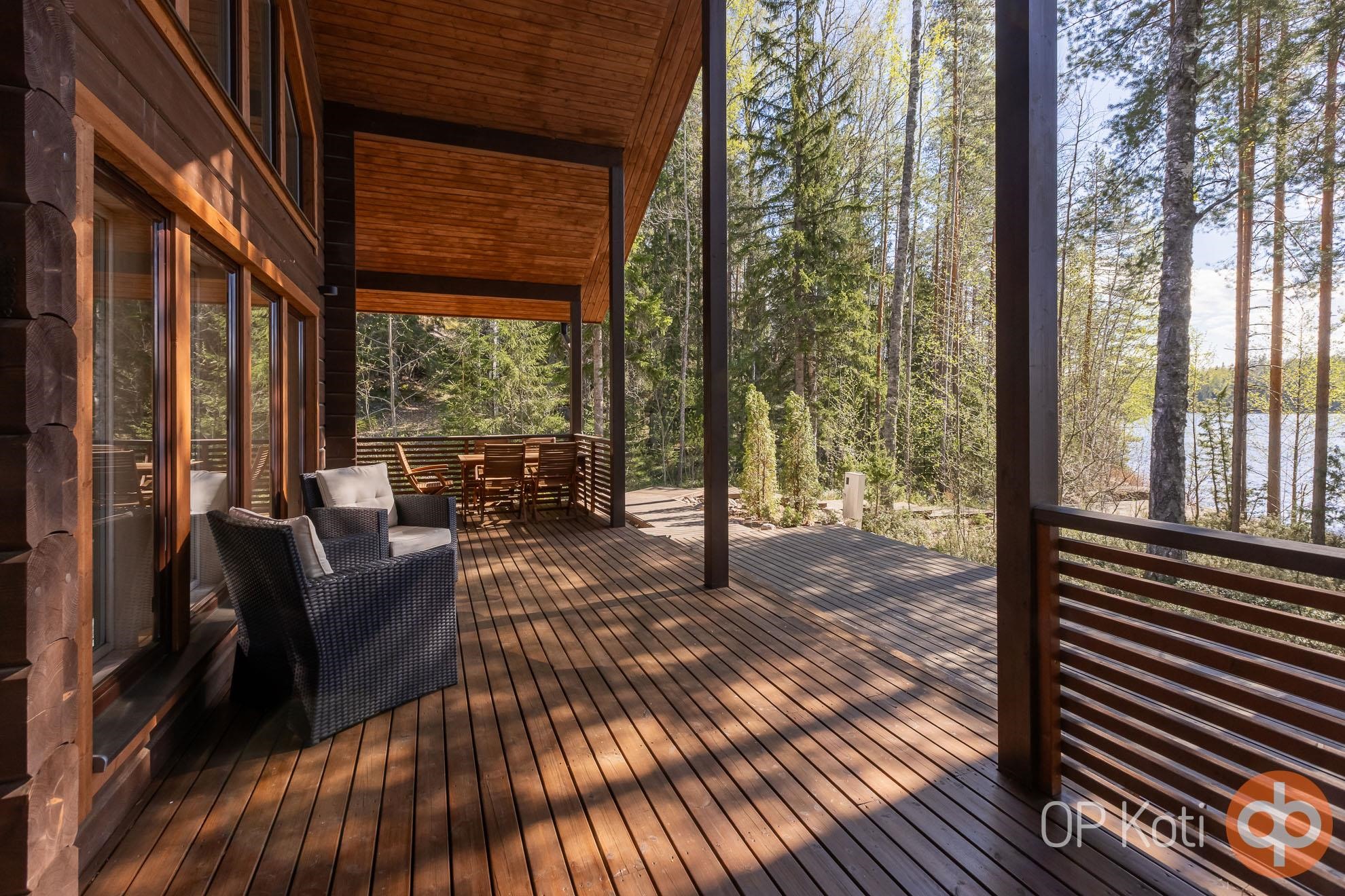 Tämä vapaa-ajan asunto sijaitsee Ala-Kuomion rannalla Ristiinan ja Mäntyharjun lähettyvillä Mikkelin eteläpuolella. Ala-Kuomio tunnetaan kirkasvetisenä järvenä, jossa kuikat pesivät ja ihastuttavat tunnelmallisella reviirikutsullaan. Ala-Kuomioon on istutettu kuhaa ja siikaa, joka takaa hyvät kalastusmahdollisuudet! Moderni vapaa-ajan asunto on rakennettu laadukkaasta lämpöhirrestä ja on todella energiatehokas. Lämmitys on toteutettu maalämmöllä ja Lämmönjako mielyttävällä lattialämmityksellä. Loma-asunnon värimaailma on vaalea, jossa isot vaaleat lattialaatat sekä valkolakattu hirsi luovat rauhallisen ja modernin ilmeen. Olohuoneen isoista ikkunoista tulee runsaasti valoa sisään ja keittiön varusteet voittavat monen omakotitalonkin keittiön. Kaksi makuuhuonetta ja parvi majoittavat hyvin mökkeilijät. Helppohoitoinen kunttapiha ei vaadi ruohonleikkausta, ja isolla terassilla voit järjestää vaikka lavatanssit! Autoille on hyvin tilaa talon vieressä, ja täyssähköautolle löytyy latauspiste ulko-oven luonta. Kauppaan voidaan sisällyttää huonekalut. Kiinnostuitko? Ota yhteyttä ja sovitaan yksityisesittely, jotta pääset tutustumaan tähän upeaan paikkaan paremmin! Jos sinulla on oma koti myymättä, ei hätää, voimme auttaa sinua siinäkin. OP Koti on nimittäin Suomen luotetuin välitysliike! Suunnitellaan myyntiä yhdessä