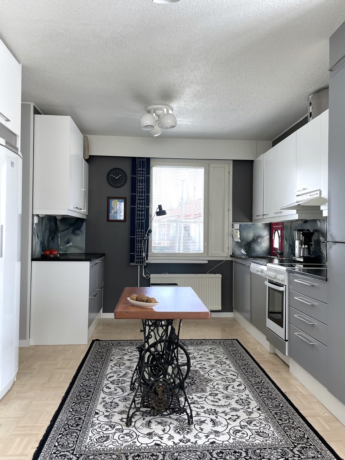 - Jääkaappi, pakastekaappi, induktioliesi, liesituuletin, astianpesukone, kaapistot, kiinteät valaisimet.