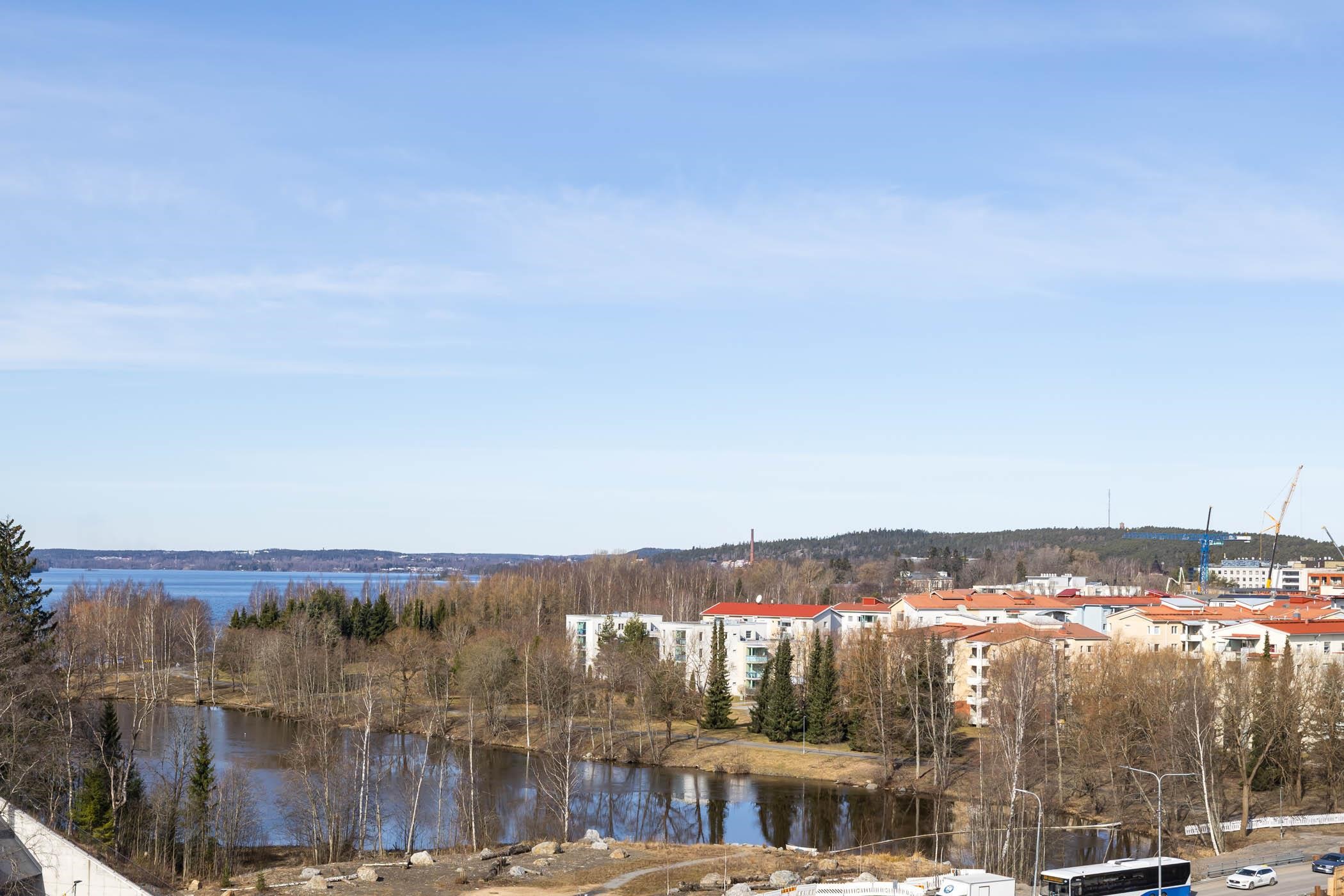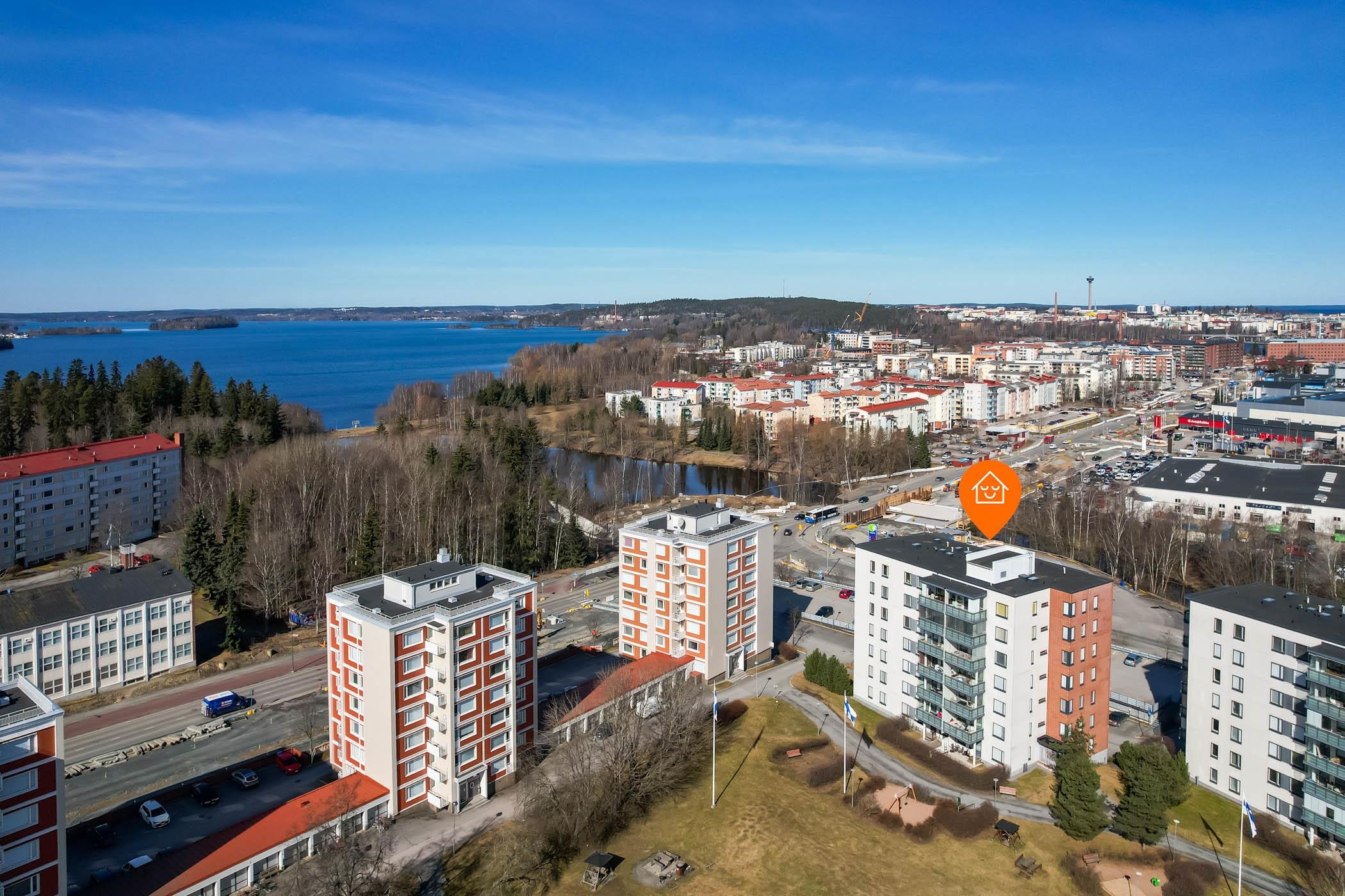 Tervetuloa kotiin, jossa yhdistyvät upeat maisemat, toimiva pohjaratkaisu ja huoleton kaupunkiasuminen. Tämä ylimmän, seitsemännen kerroksen 92,5 neliöinen huoneisto hurmaa jo ensisilmäyksellä valoisuudellaan ja näkymillään, jotka avautuvat länteen Pyhäjärven järvinäkymin. Horisontissa siintävät niin Näsinneula kuin Pyynikin näkötornikin.