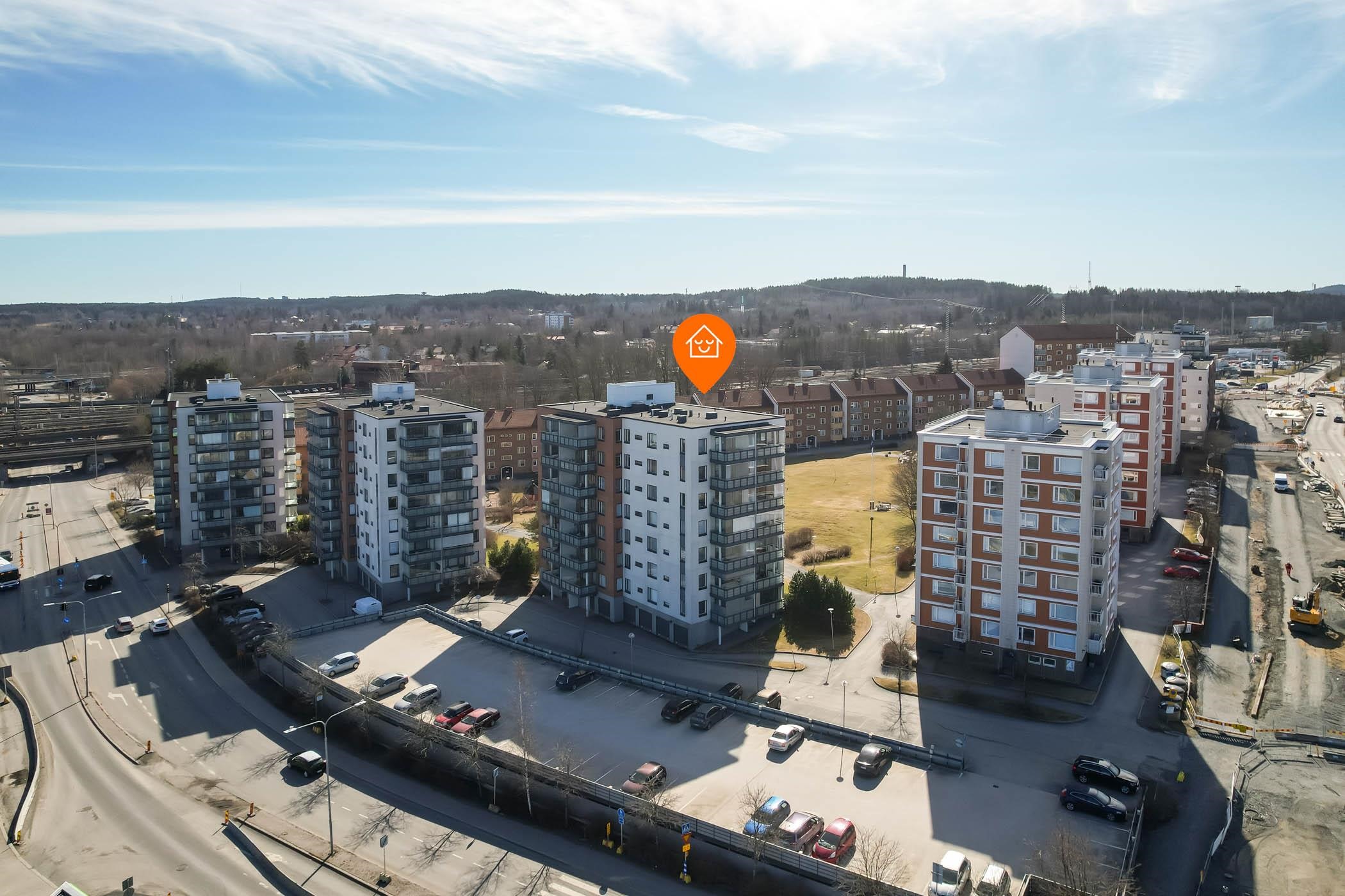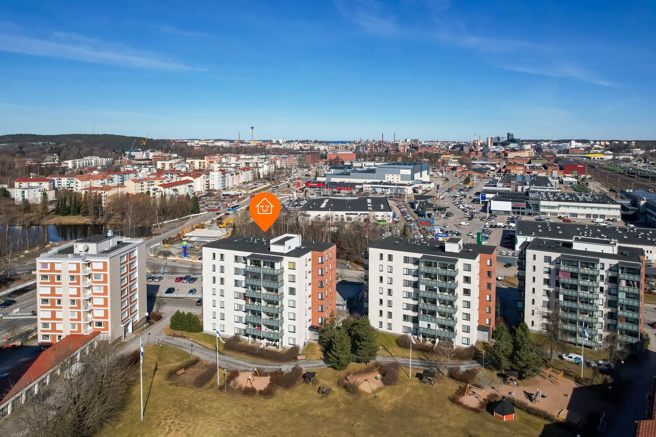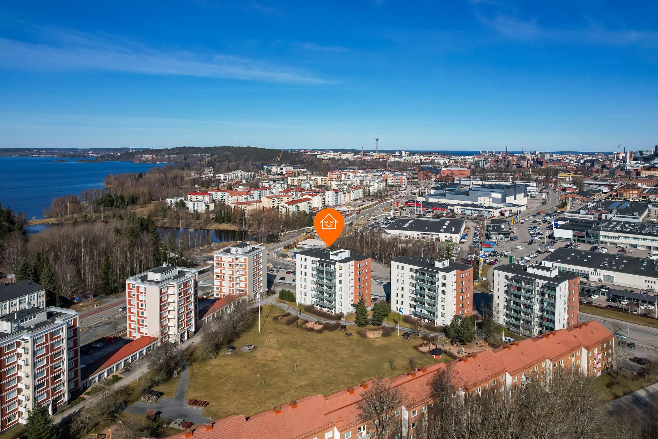 Sijainti on erinomainen. Keskusta on vain noin parin kilometrin päässä, mutta silti ympäristö tarjoaa rauhaa ja vehreyttä. Lähipalvelut, koulut ja päivittäistavarakaupat ovat kävelyetäisyydellä, ja Hatanpään Arboretum sekä Pyhäjärven rantareitit kutsuvat ulkoilemaan. Tulevaisuudessa alueen liikenneyhteydet paranevat entisestään viereen tulevan ratikan myötä.
