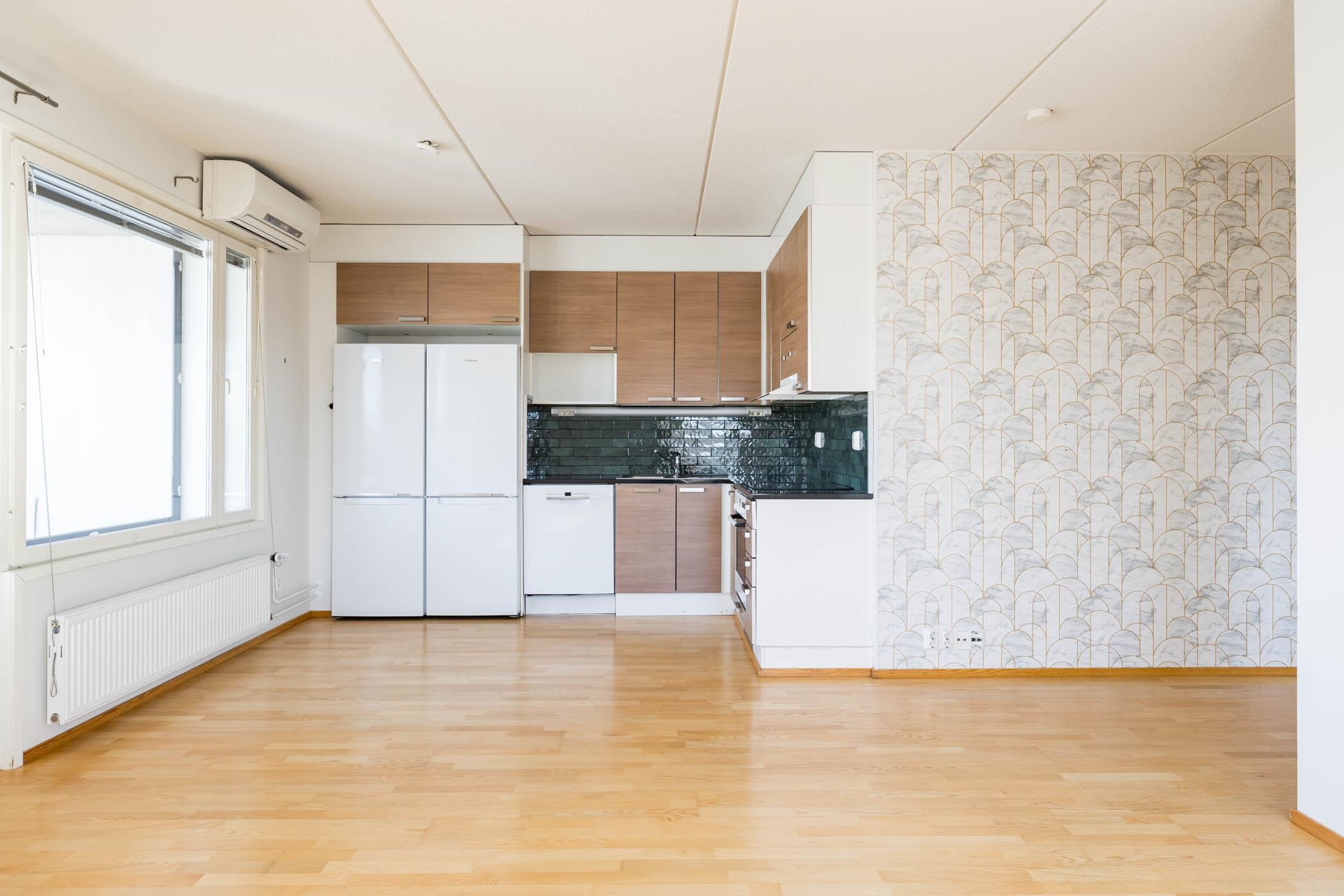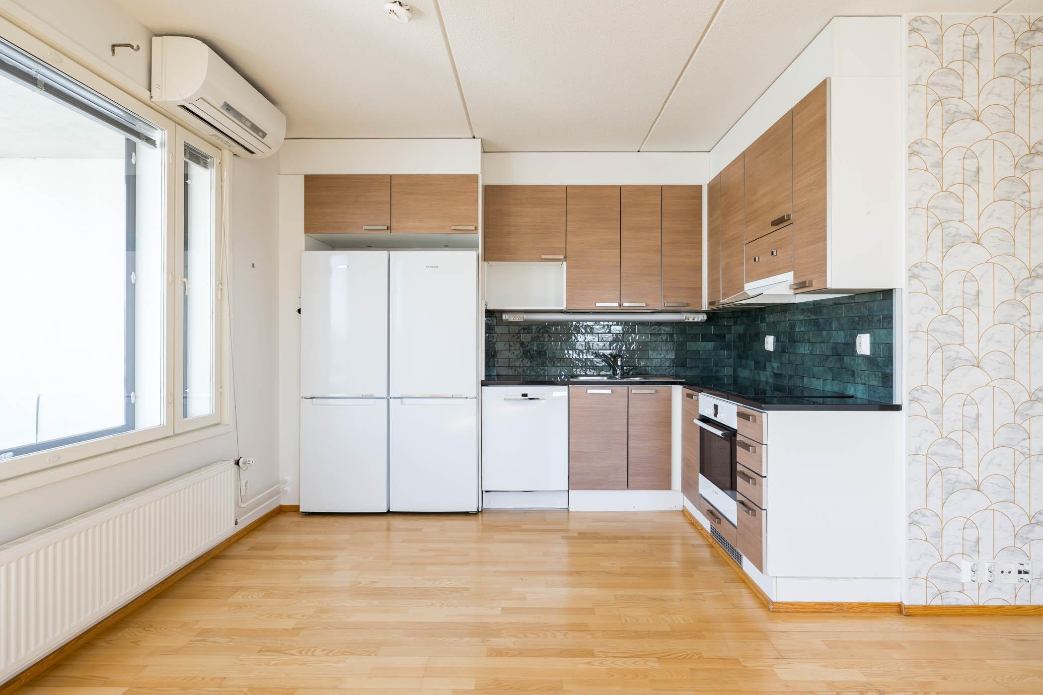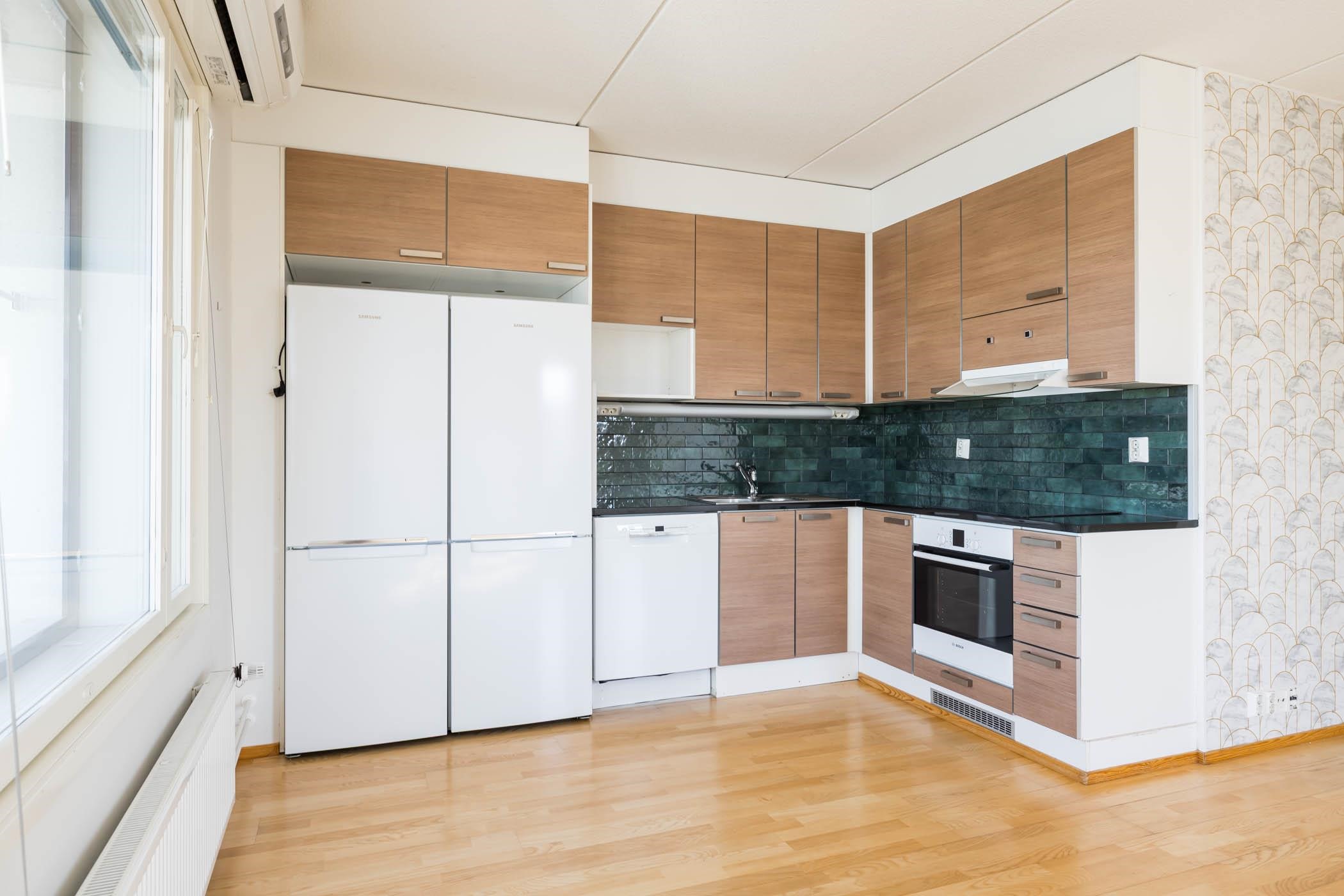 - Jääkaappipakastin x 2 (Uusittu n. 2020), erillisuuni, liesitaso (induktio, uusittu 2025, liesituuletin, astianpesukone (uusittu n. 2020), kaapistot, kiinteät valaisimet (työtasovalaisin). Kivitasot. Keittiön välitilan laatoitus uusittu 2020 (vanhan päälle)