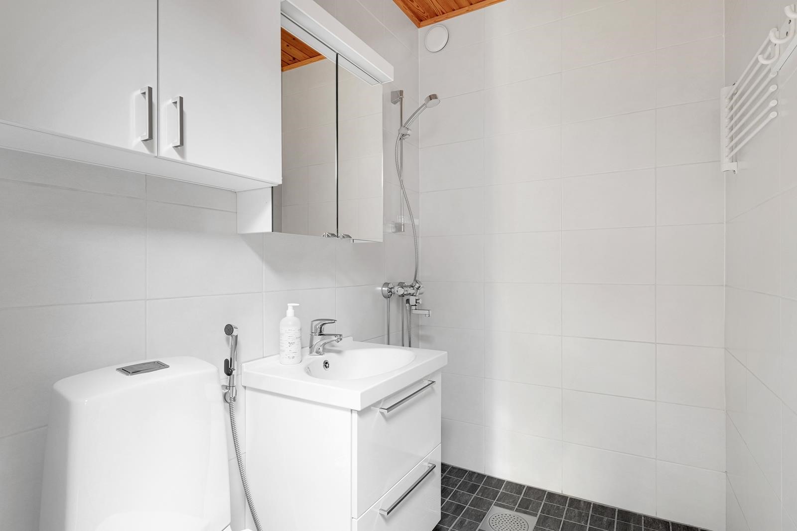 - Sauna, sähkökiuas, kylpyhuone, erillinen wc 2 kpl, suihku, peilikaappi, kaapit, allaskaappi, pesukoneliitäntä, lattialämmitys, kiinteät valaisimet.
