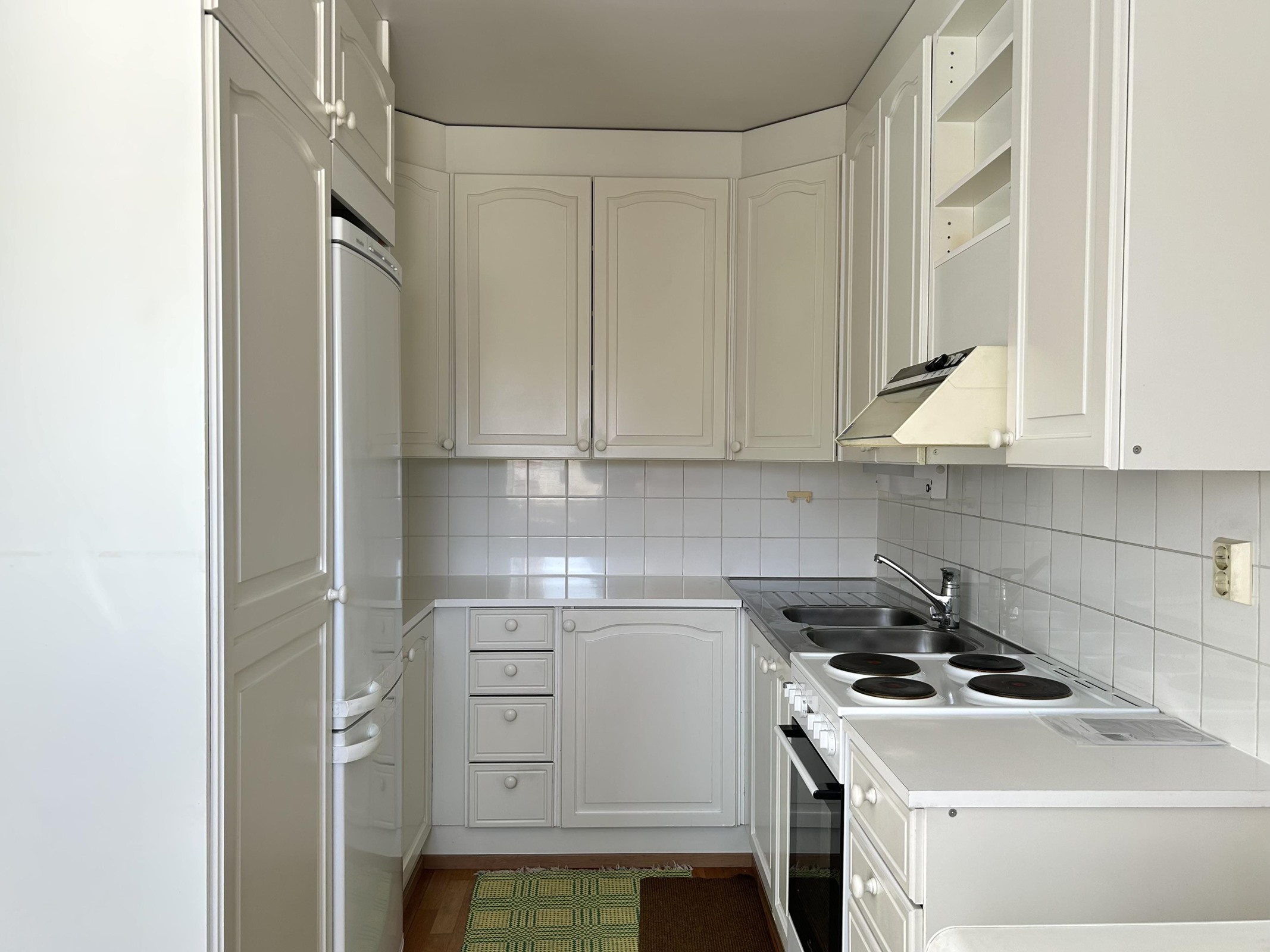 - Jääkaappipakastin, lattialiesi, sähköliesi, liesituuletin, kaapistot, kiinteät valaisimet.