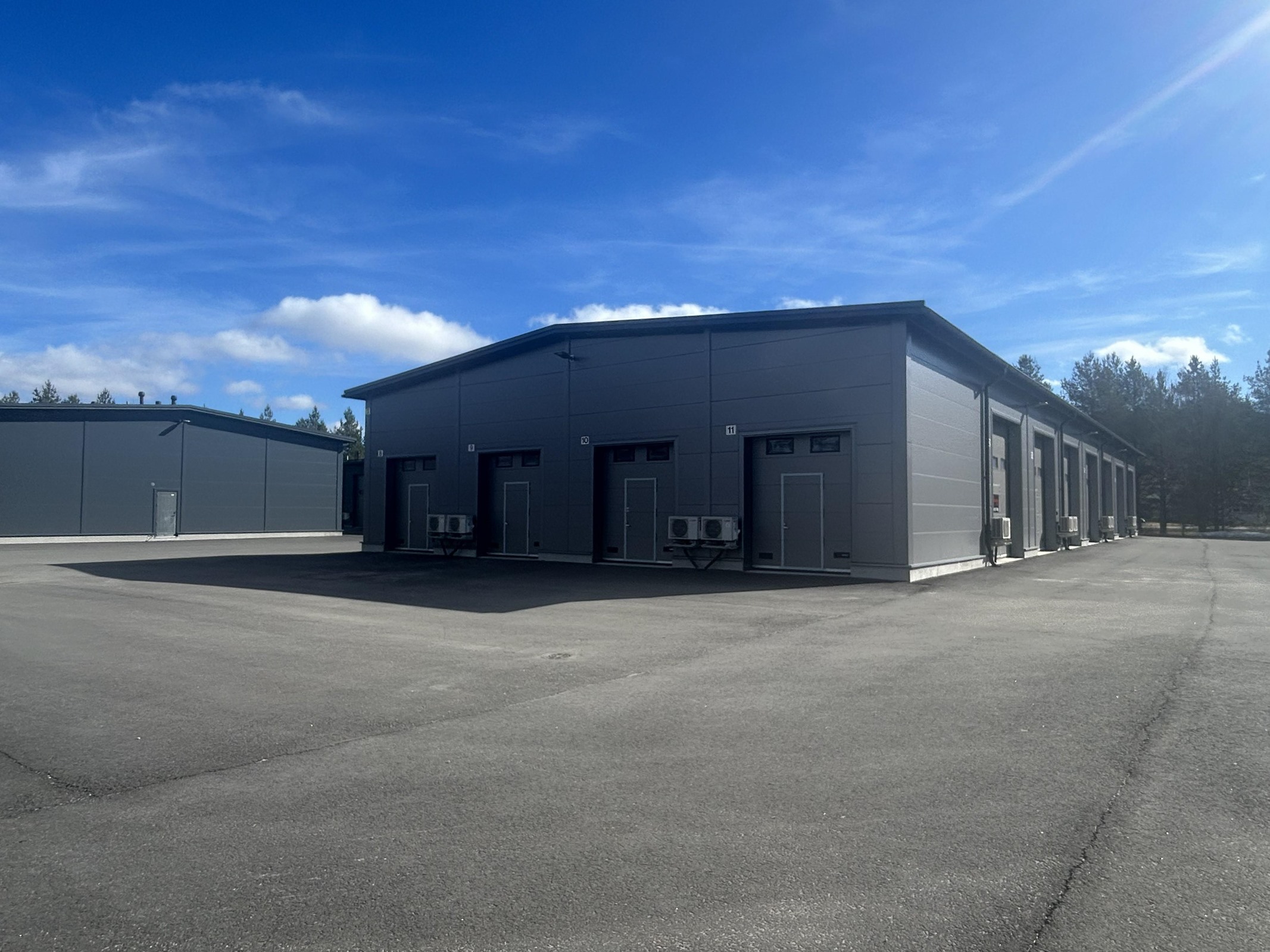 Osakkeen varustuksena mm. korkea nosto-ovi (3.5m x 4.0m) erillisellä käyntiovella, ilmalämpöpumppu, öljyn- ja hiekanerotuskaivo,vesitiivis epoksipinnoitettu lattia, vesipiste, led-valaistus, valovirtapistoke ja voimavirtapistoke (16A). Asfaltoidulla pihalla on myös oma autopaikka.