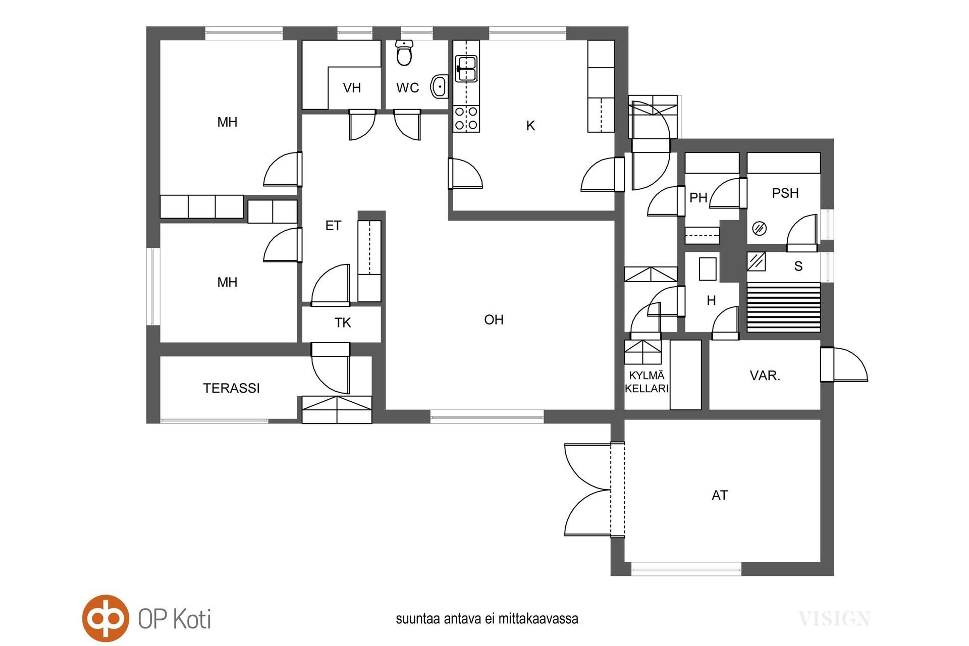 - 50 m2khh, saunatilat, tekninentila, kylmäkellari, autotalli