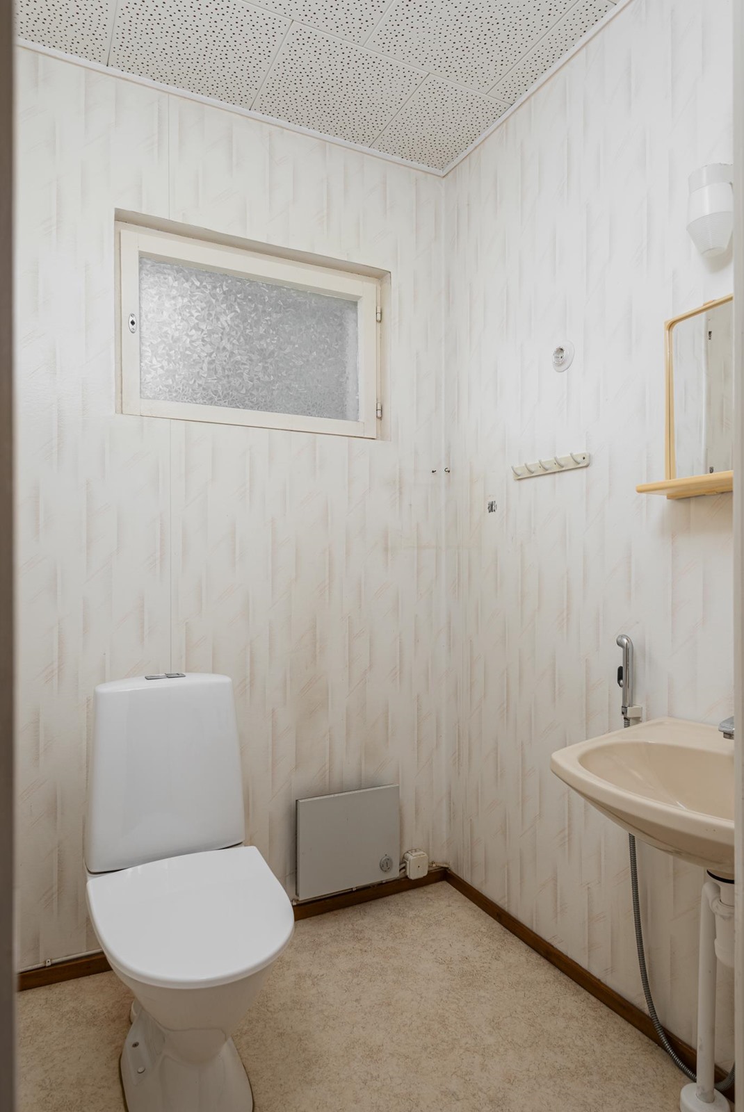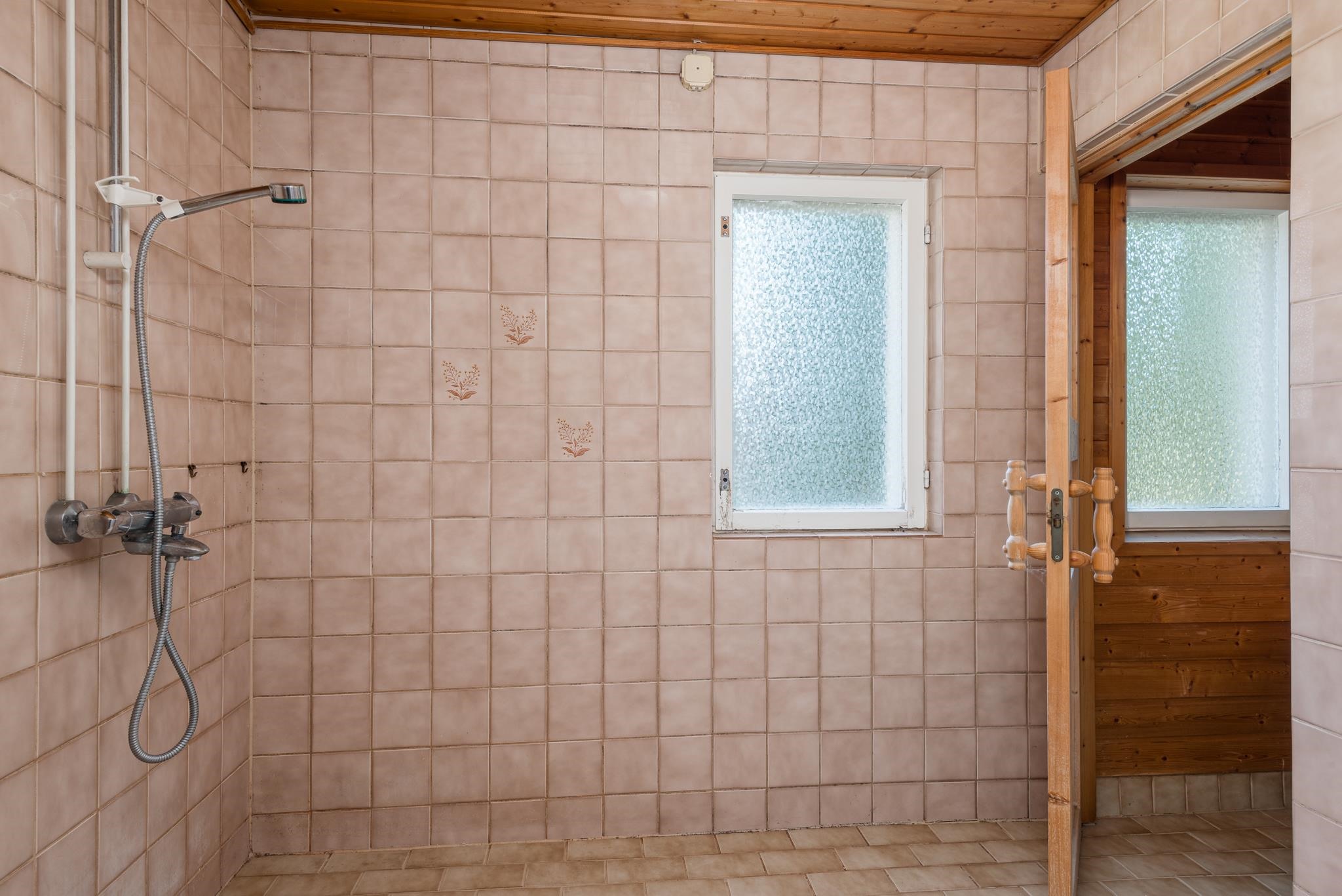 - Sauna, sähkökiuas, kylpyhuone, erillinen wc, suihku, peilit, kaapit, pesukoneliitäntä, lattialämmitys Sauna, kylpyhuone, kiinteät valaisimet.
