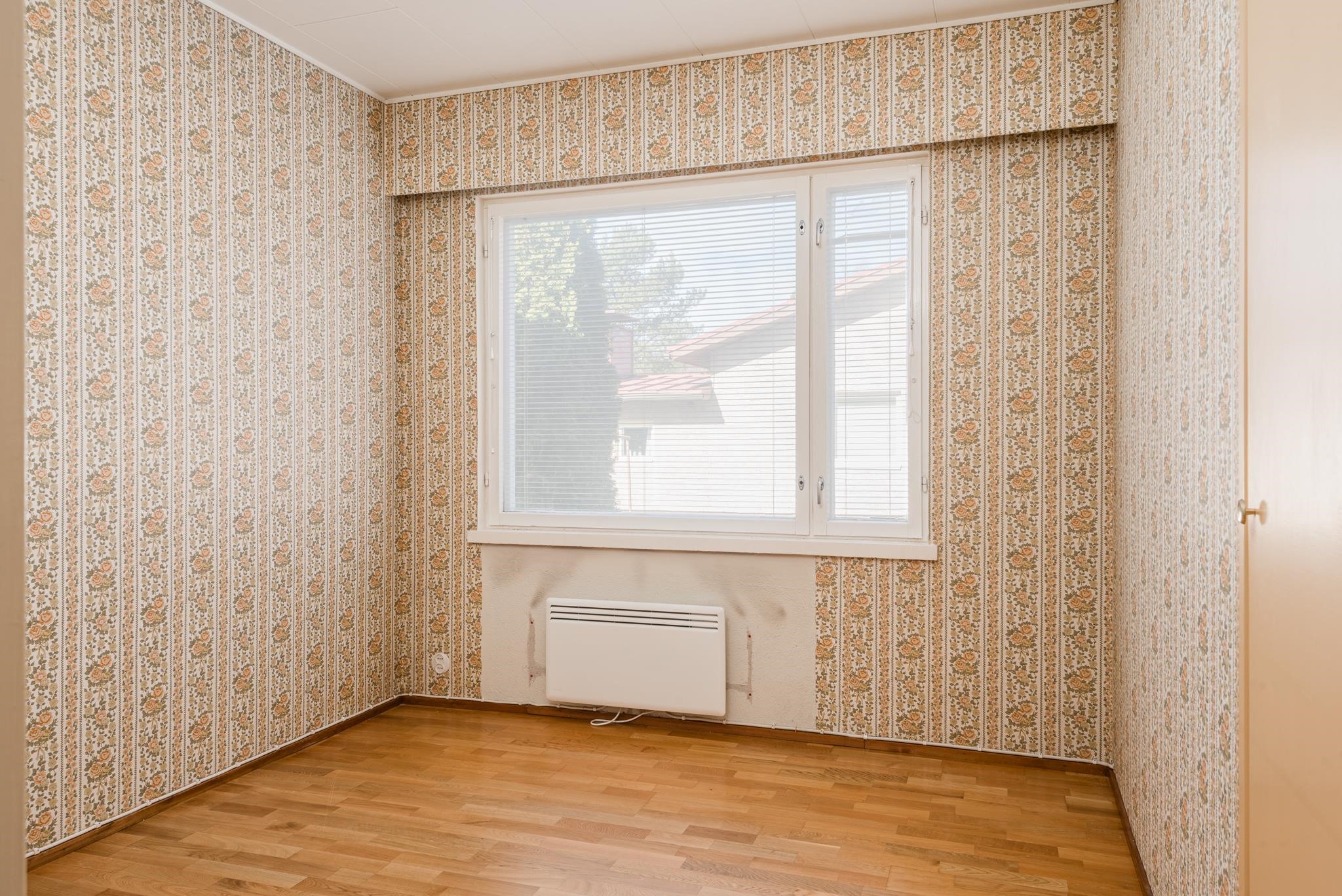 Keittiö: Muovimatto, tapetti. Olohuone: Parketti, tapetti. Makuuhuone 1: Parketti, tapetti. Makuuhuone 2: Parketti, tapetti. Kodinhoitohuone: Betonilattia, maalattu seinä. Sauna: Kaakeli, puu. Kylpyhuone: Kaakeli. Eteinen: /tuulikaappi: Parketti, tapetti. Wc: Muovimatto. Vaatehuone: Muovimatto, maalattuseinä.