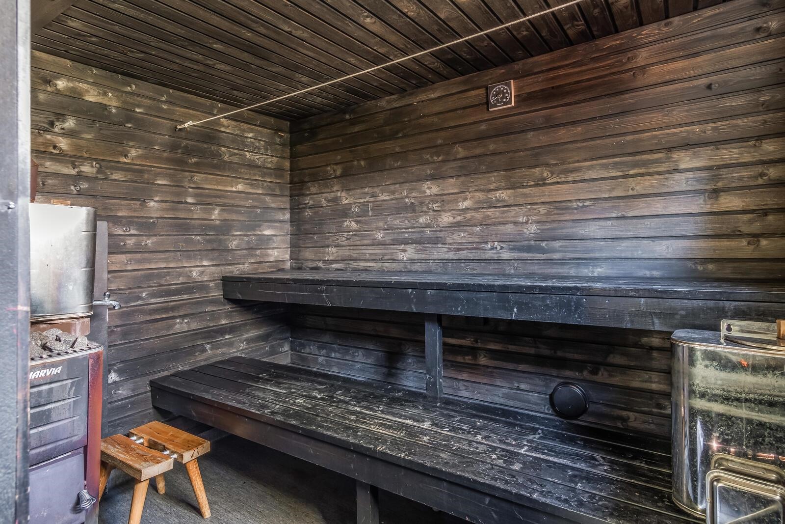 Pieni nätti pihasaunarakennus, jossa pukuhuone ja sauna. Saunan edustalla oleskeluterassi, jossa on mukava vilvoitella saunomisen ohessa. Puuvarasto. Suojaisa ja aurinkoinen pihapiiri, helppohoitoinen tontti. Sähköliittymä 3x25A ja vesiosuuskunnan vesi.
