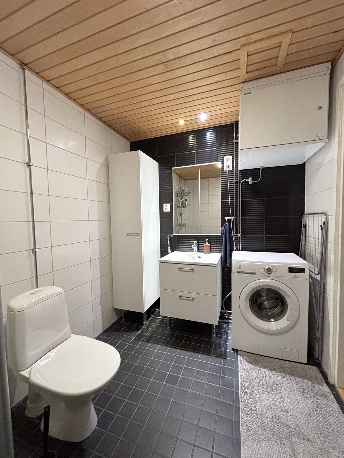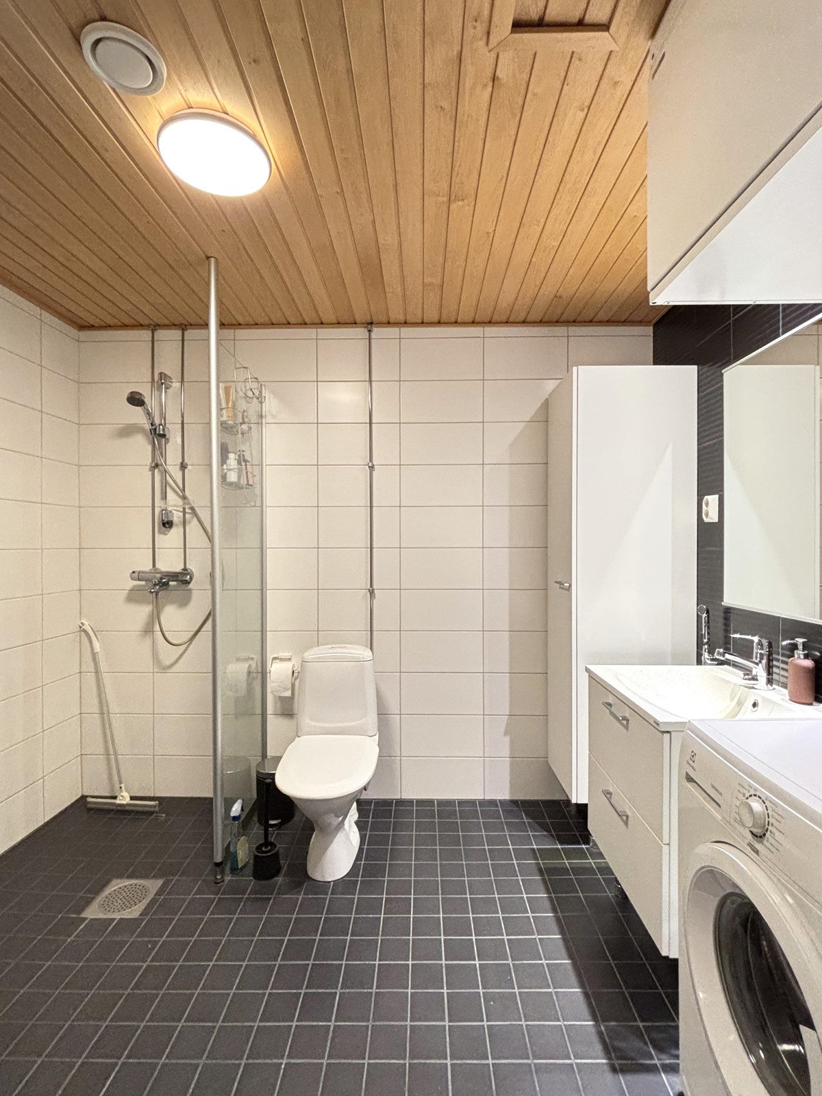 - Sauna, kylpyhuone, pesukoneliitäntä huoneistossa on pesukone, lattialämmitys, kiinteät valaisimet.