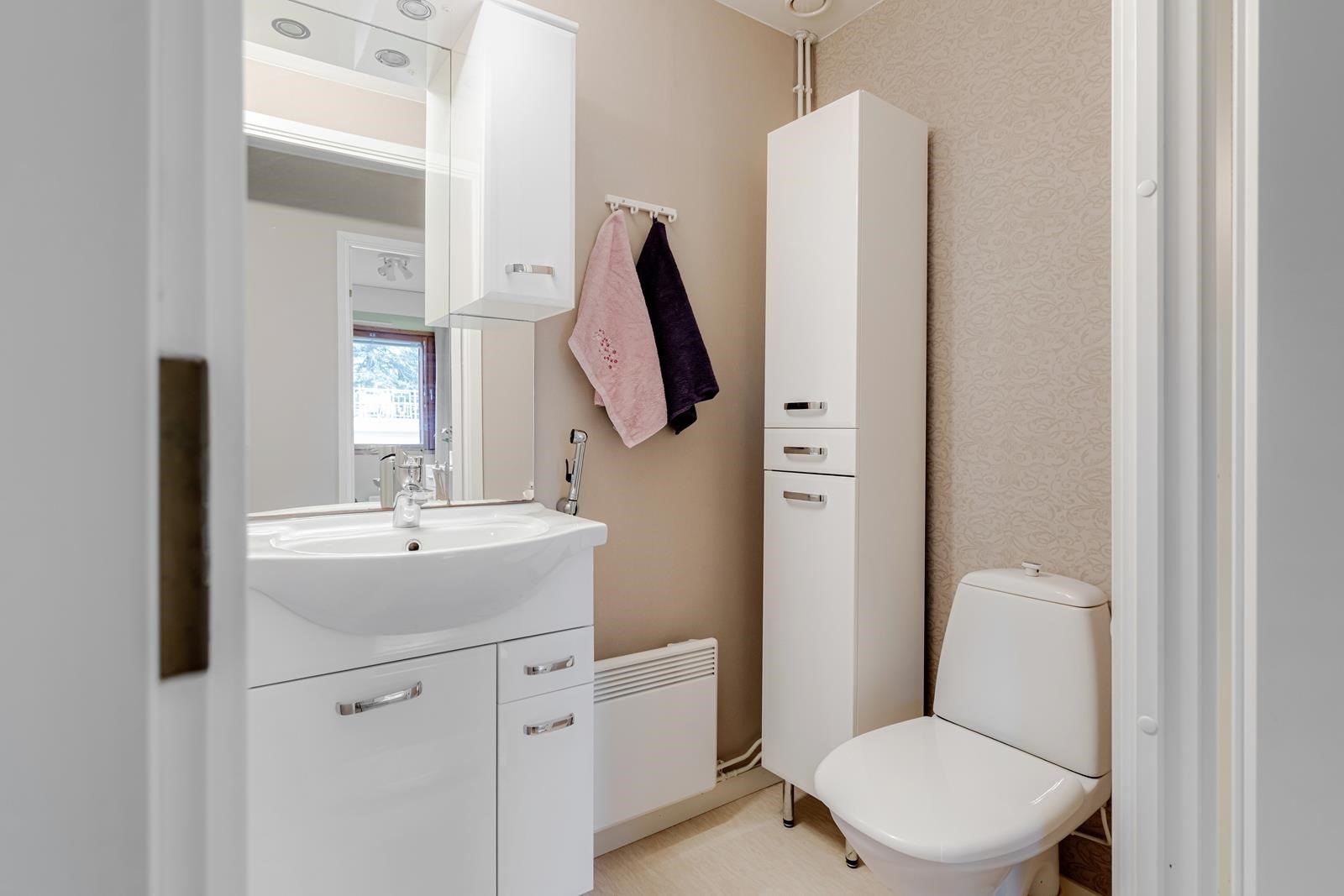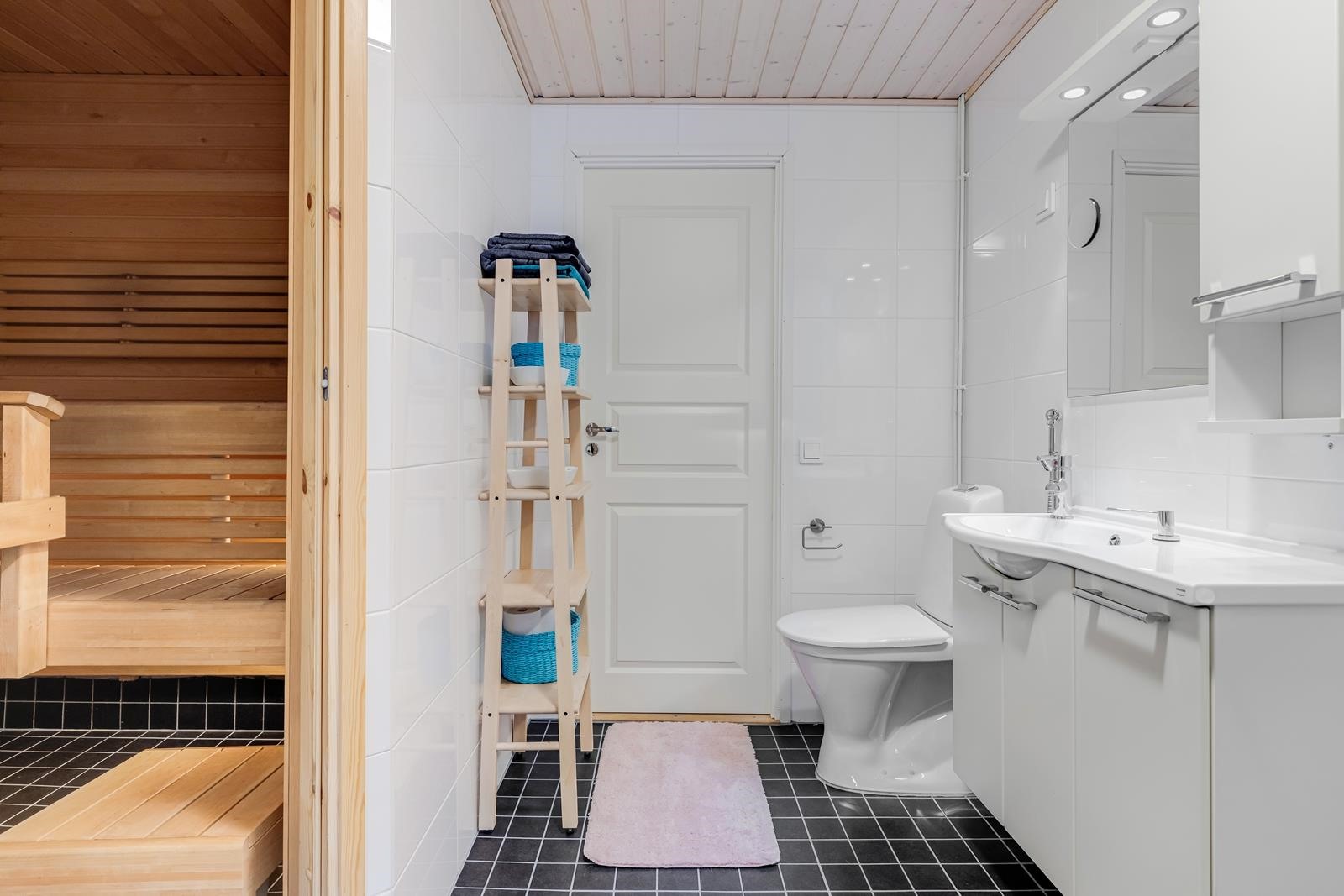 - Sauna, sähkökiuas, kylpyhuone, erillinen wc, pesukoneliitäntä, lattialämmitys. Kylpyhuone ja sauna remontoitu 2015 Kolme makuuhuonetta vinyylilankku Olohuone ja eteiskäytävät parketti Keittiö vinyylilankku Erilliswc ja kodinhoitohuone muovimatto Sauna ja kylpyhuone kaakeli Eteinen ja vaatehuone vinyylilankku
