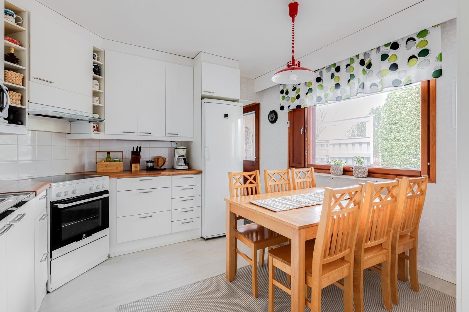 - Jääkaappi, pakastekaappi, keraaminen liesi, astianpesukone. Keittiö remontoitu 2015