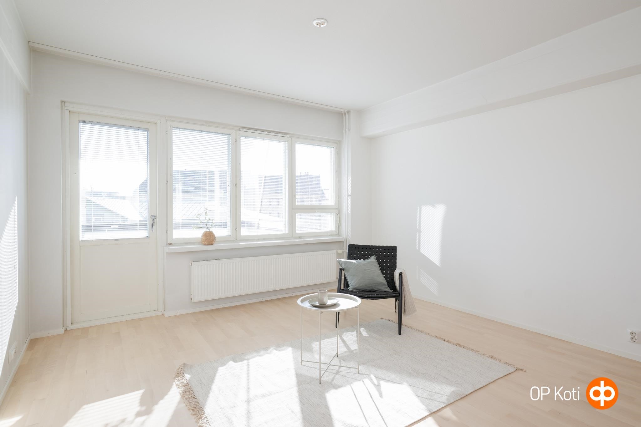 - Keittiön ja makuuhuoneen ikkunat Harjulle päin ja olohuoneen ikkuna sisäpihalle Yliopistonkadun suuntaan. Makuuhuoneessa myös ranskalainen parveke.