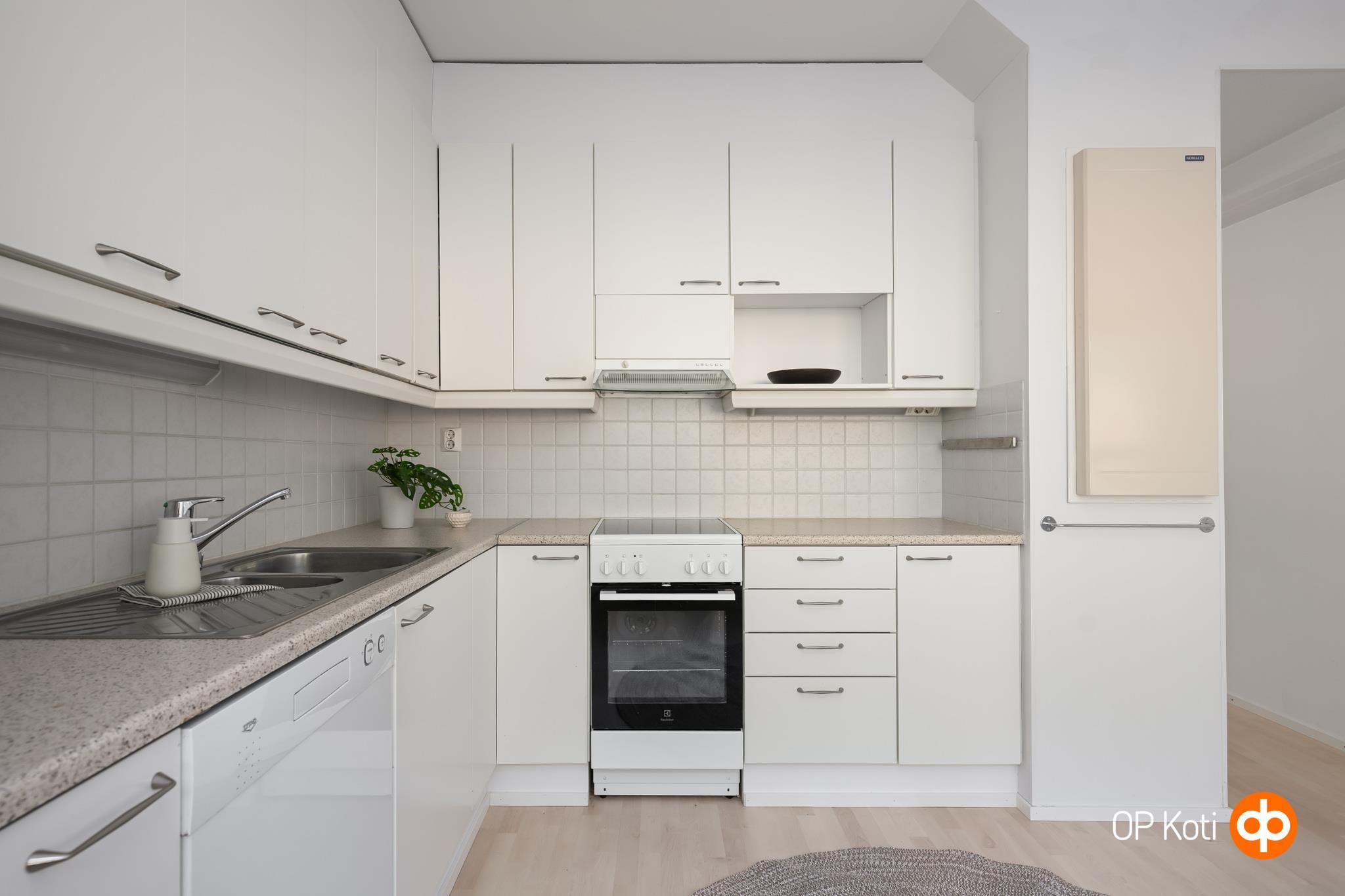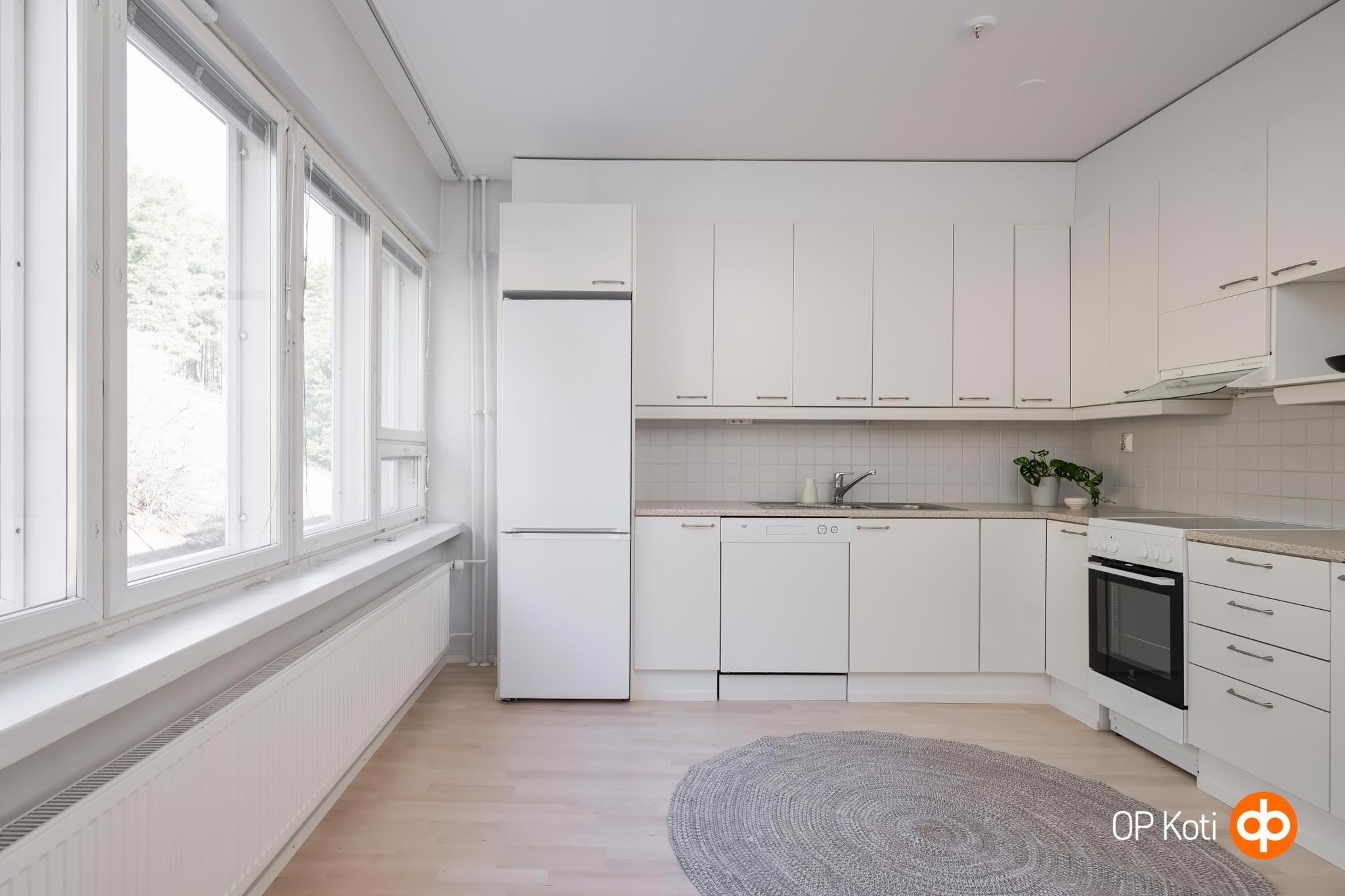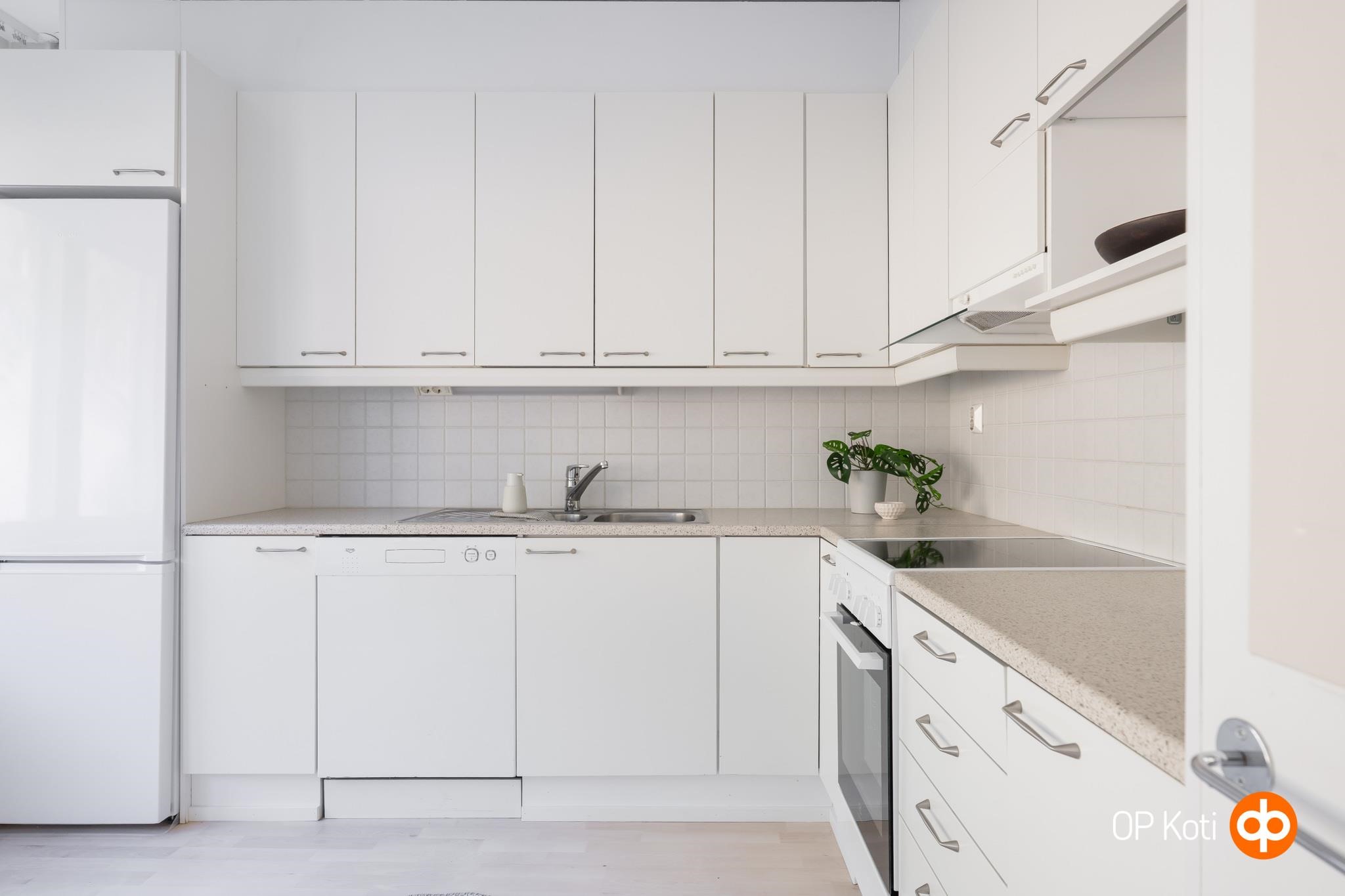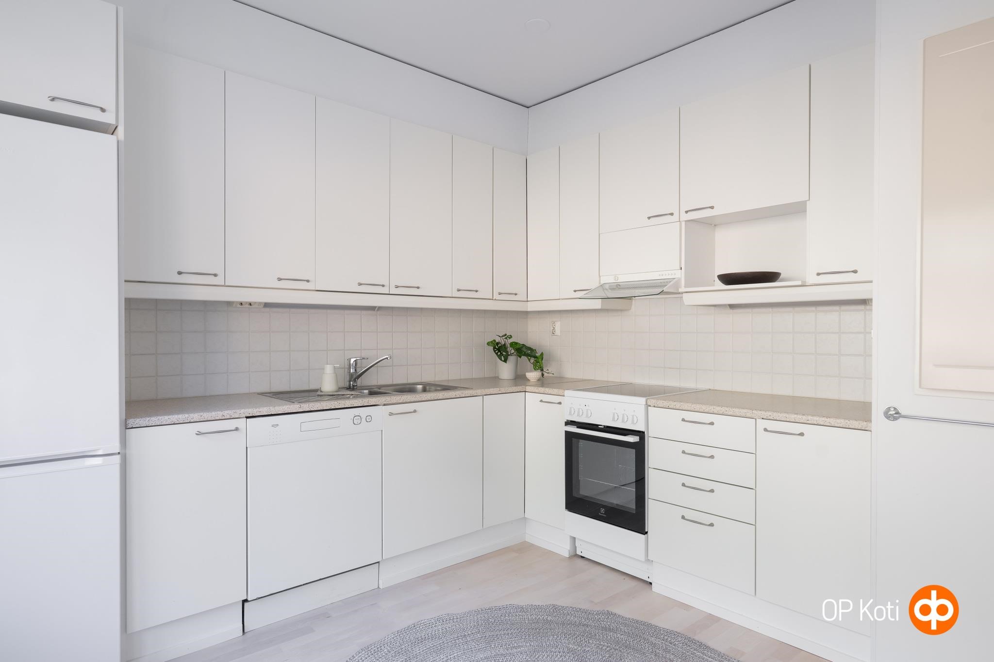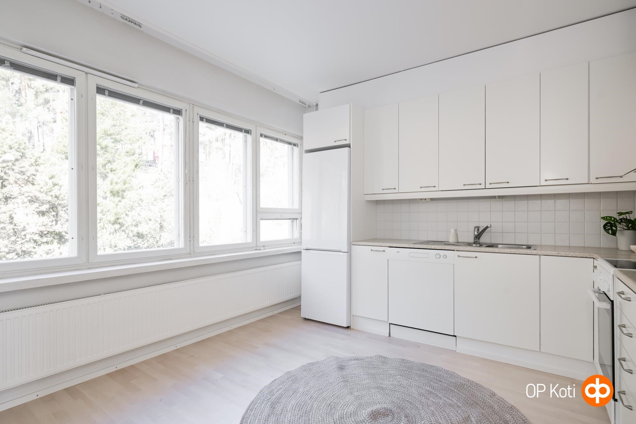 - Keittiössä varusteina: jääkaappipakastin (2024), lattialiesi induktioliedellä (2025), liesikupu, astianpesukone ja kiinteät valaisimet. Keittiö on remontoitu yhtiön peruskorjauksen yhteydessä 2005.