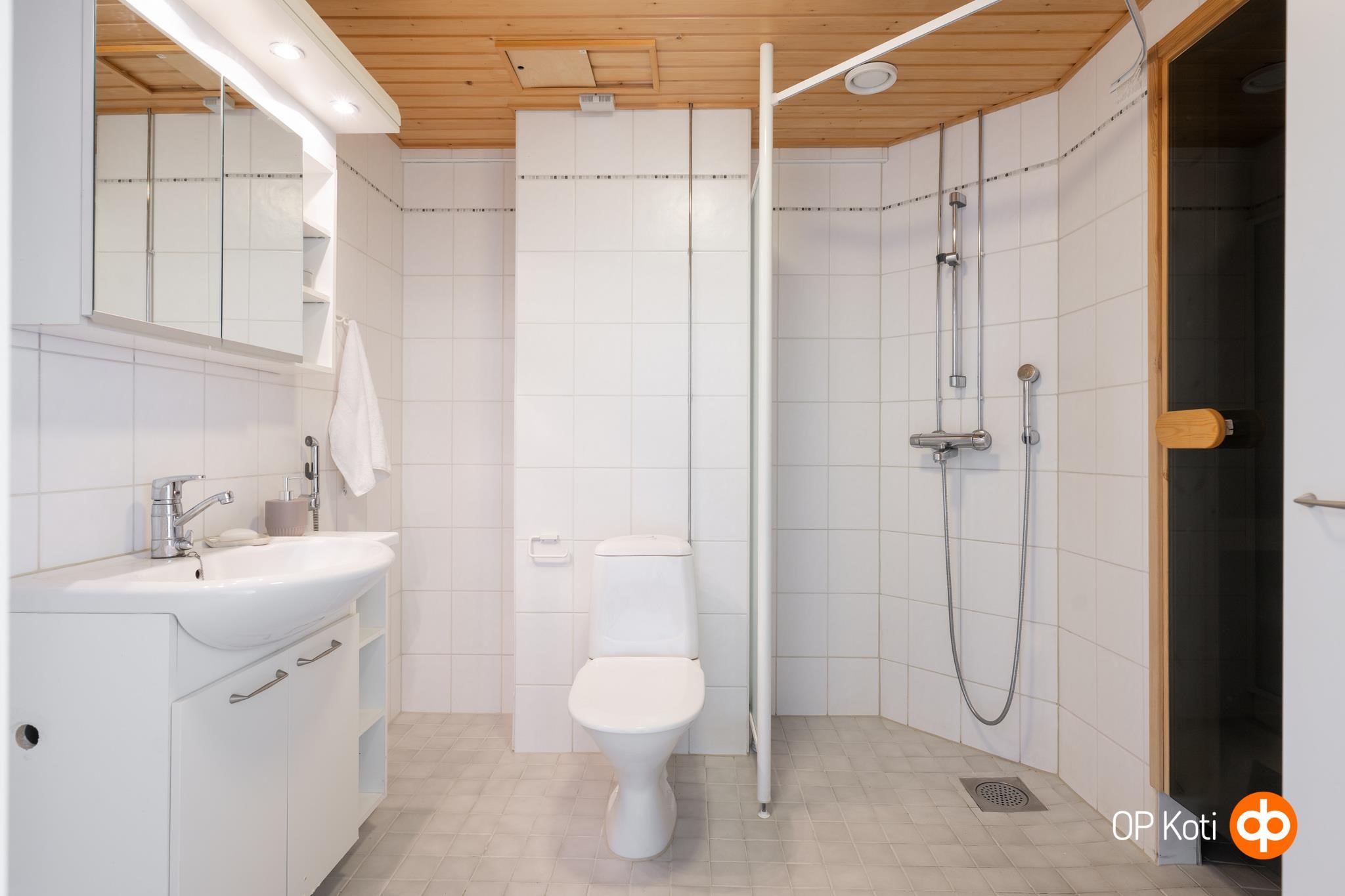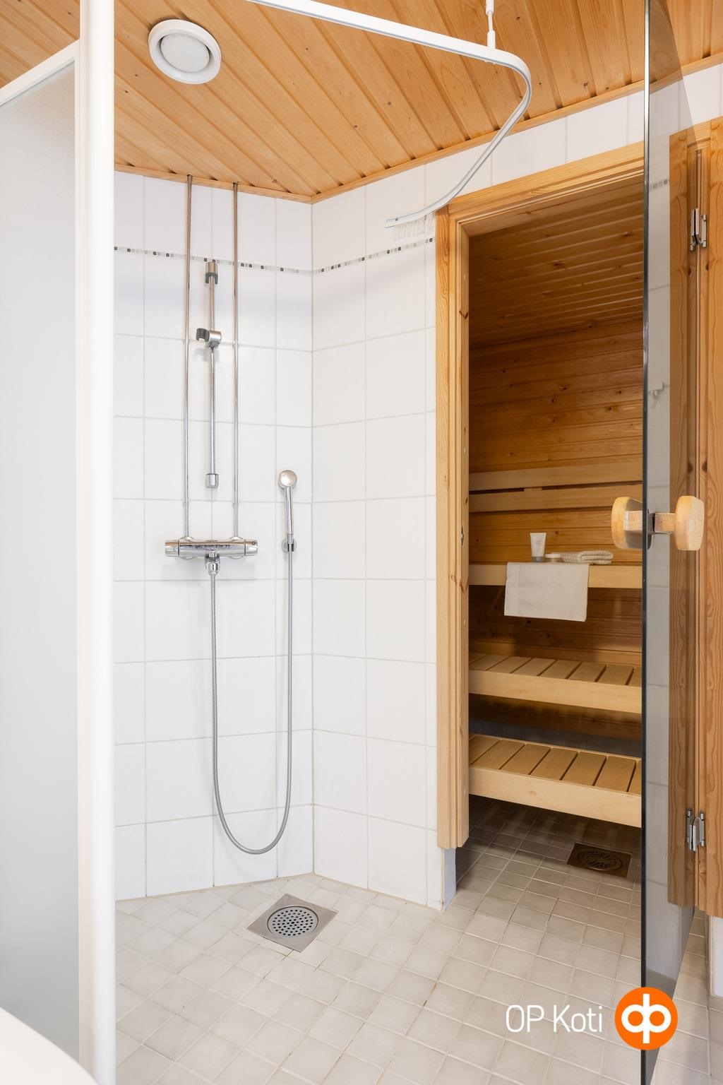 - Kylpyhuoneessa varusteina: wc-istuin, pesuallas, allaskaappi, peilikaappi, pesukoneliitäntä, suihkuseinä, suihku, sauna, sähkökiuas, lattialämmitys ja kiinteät valaisimet. Kylpyhuone on remontoitu yhtiön peruskorjauksen yhteydessä 2005.