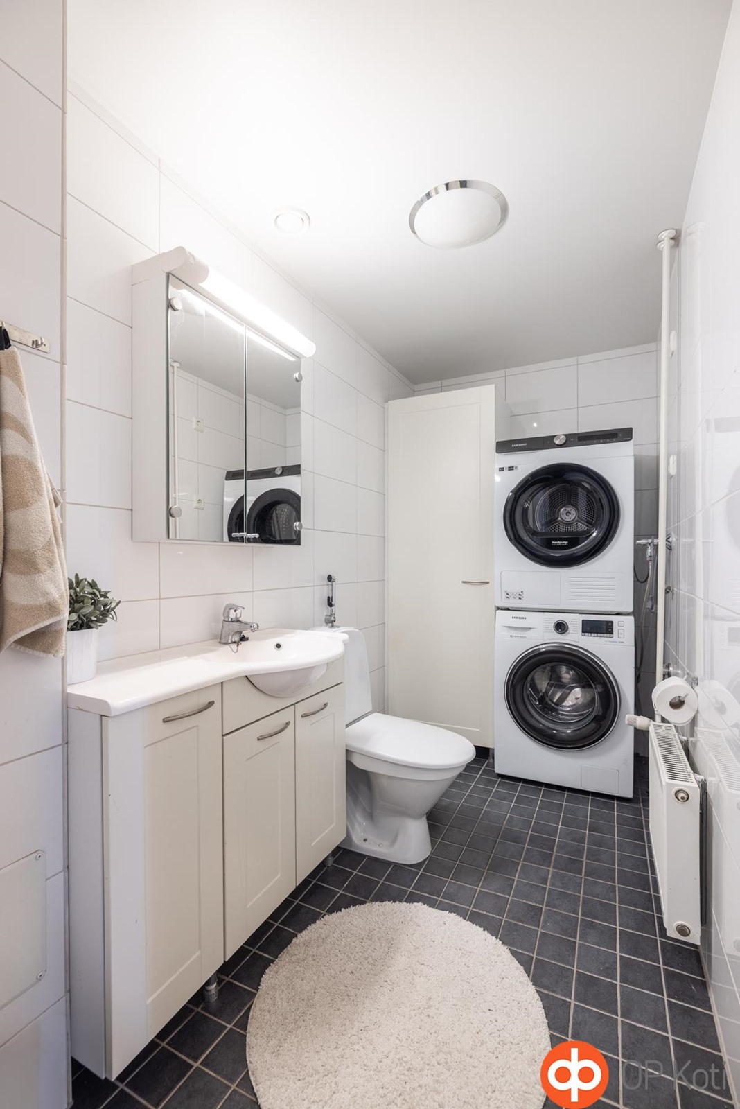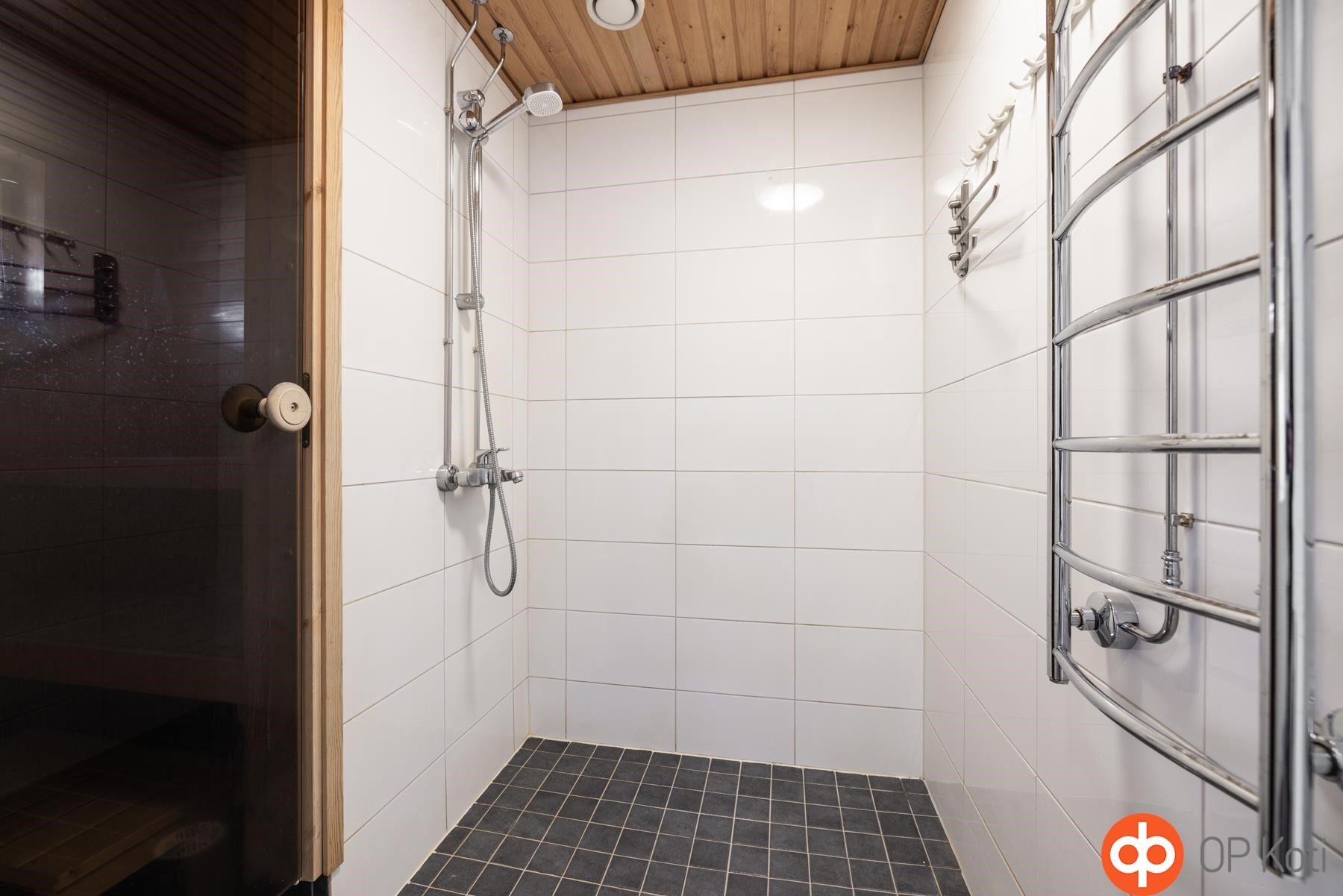 - Sauna, sähkökiuas, kylpyhuone, erillinen wc, suihku, pesukoneliitäntä, lattialämmitys, kiinteät valaisimet. Pyyhekuivain asuntokohtainen, omistaja vastaa.