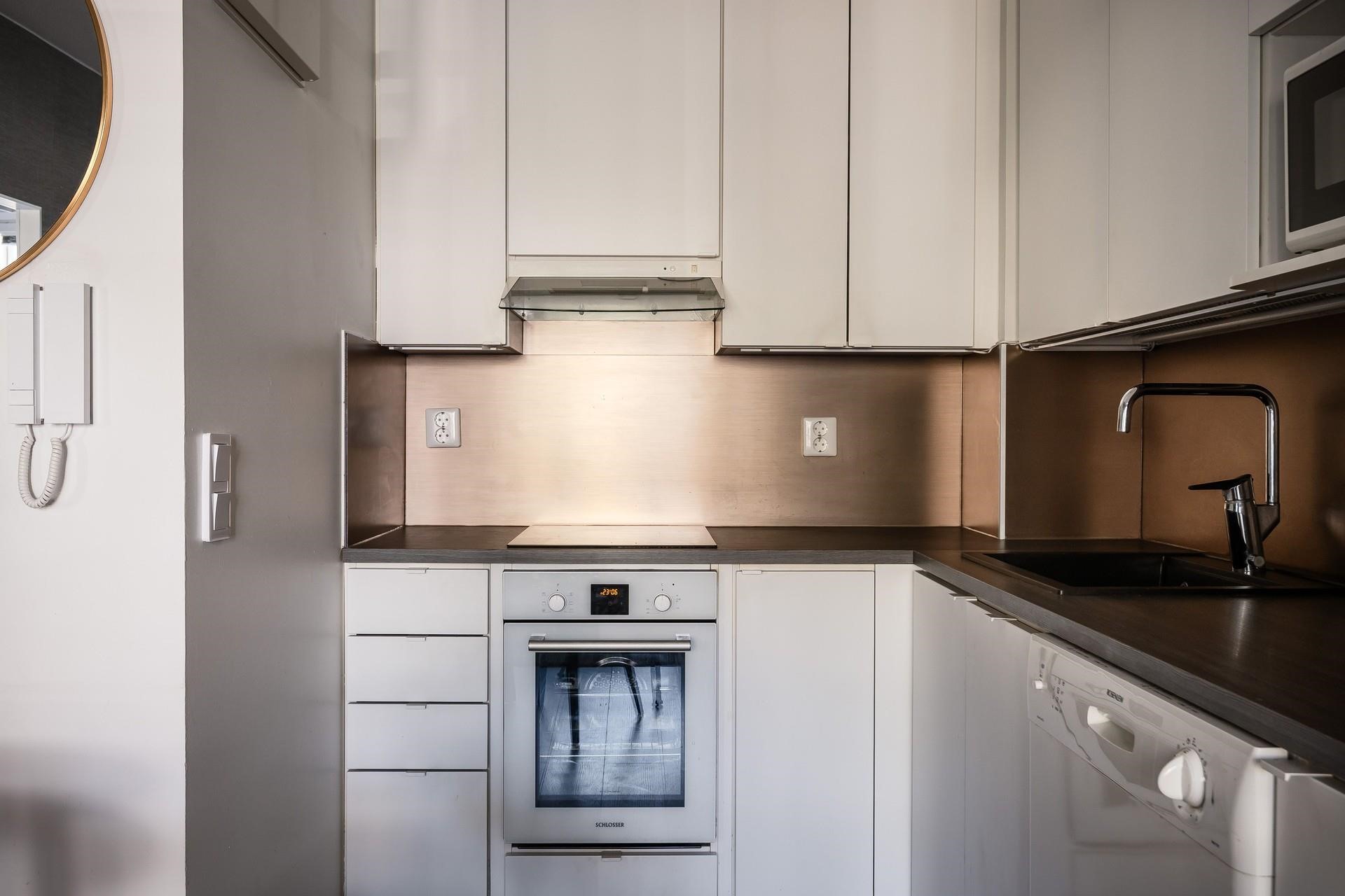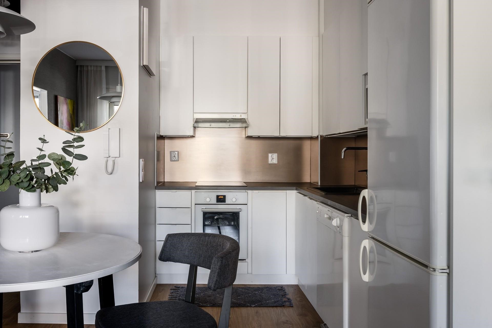 - Jääkaappipakastin, erillisuuni, liesitaso induktio, liesituuletin, astianpesukone, kaapistot, kiinteät valaisimet.