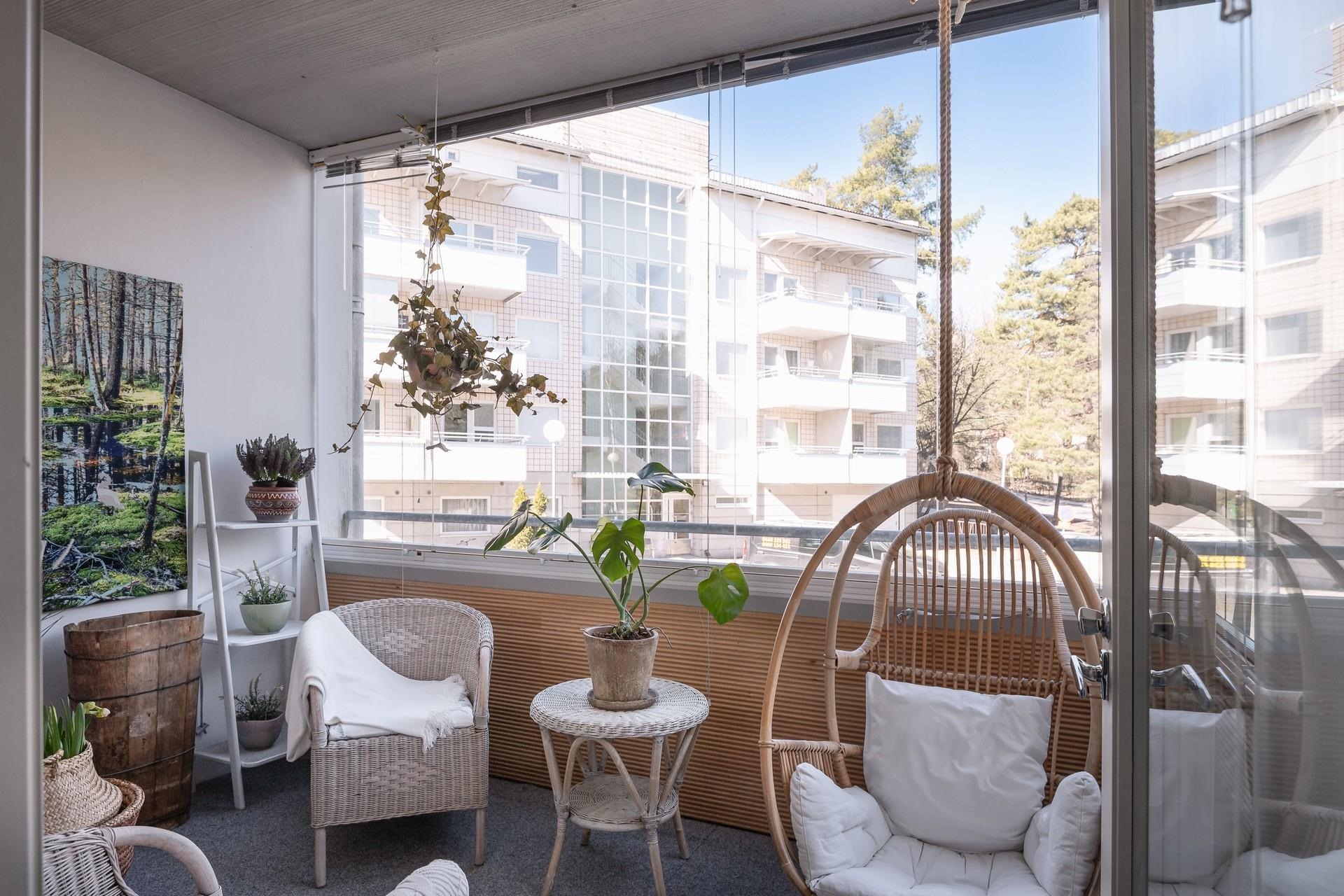 Oma sauna tuo arkeen ripauksen luksusta ja mahdollistaa rentouttavat hetket oman aikataulun mukaan. Tilava parveke toimii erinomaisena lisäoleskelutilana keväästä syksyyn - täydellinen paikka aamukahville tai iltahetkille.