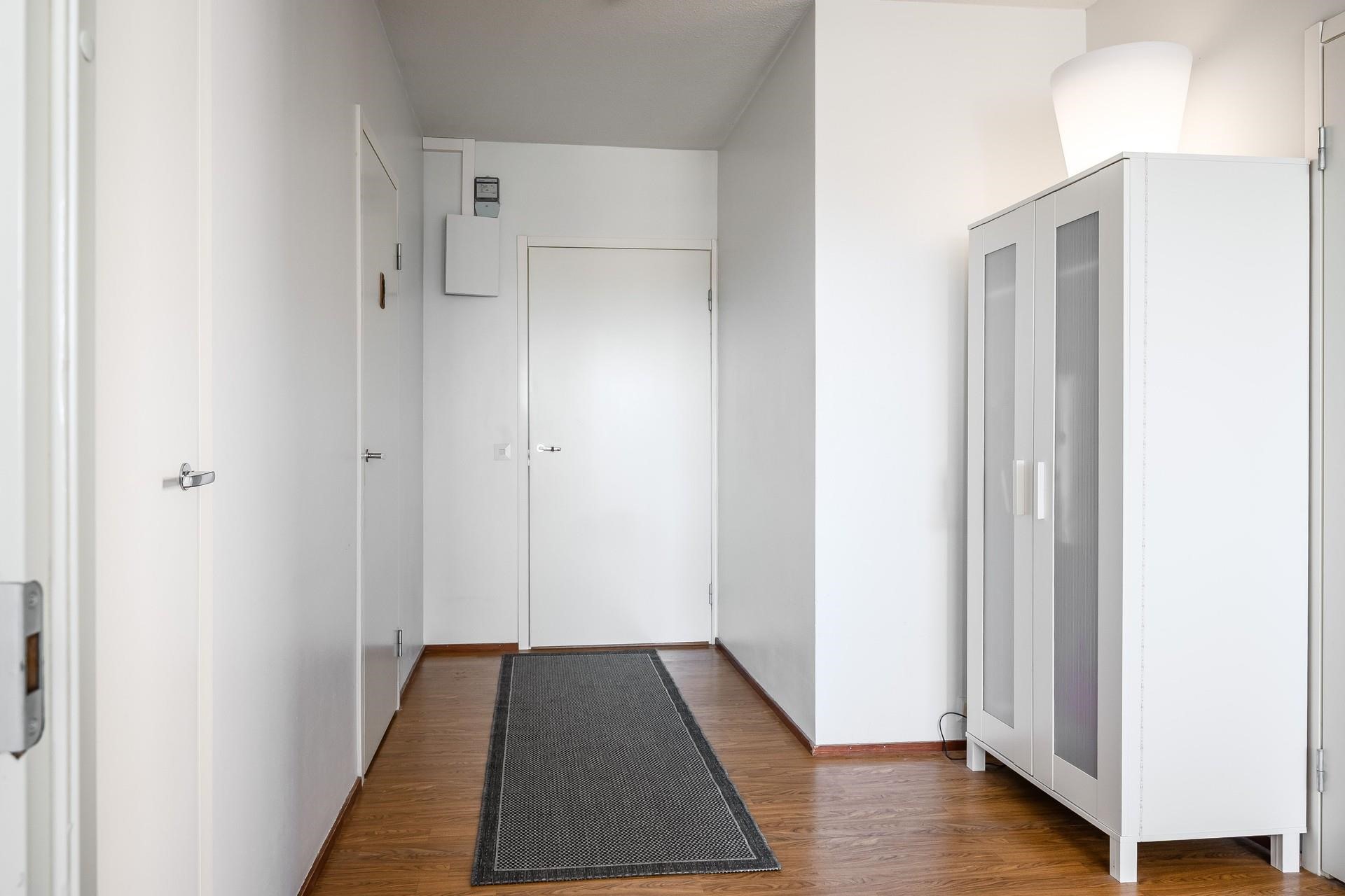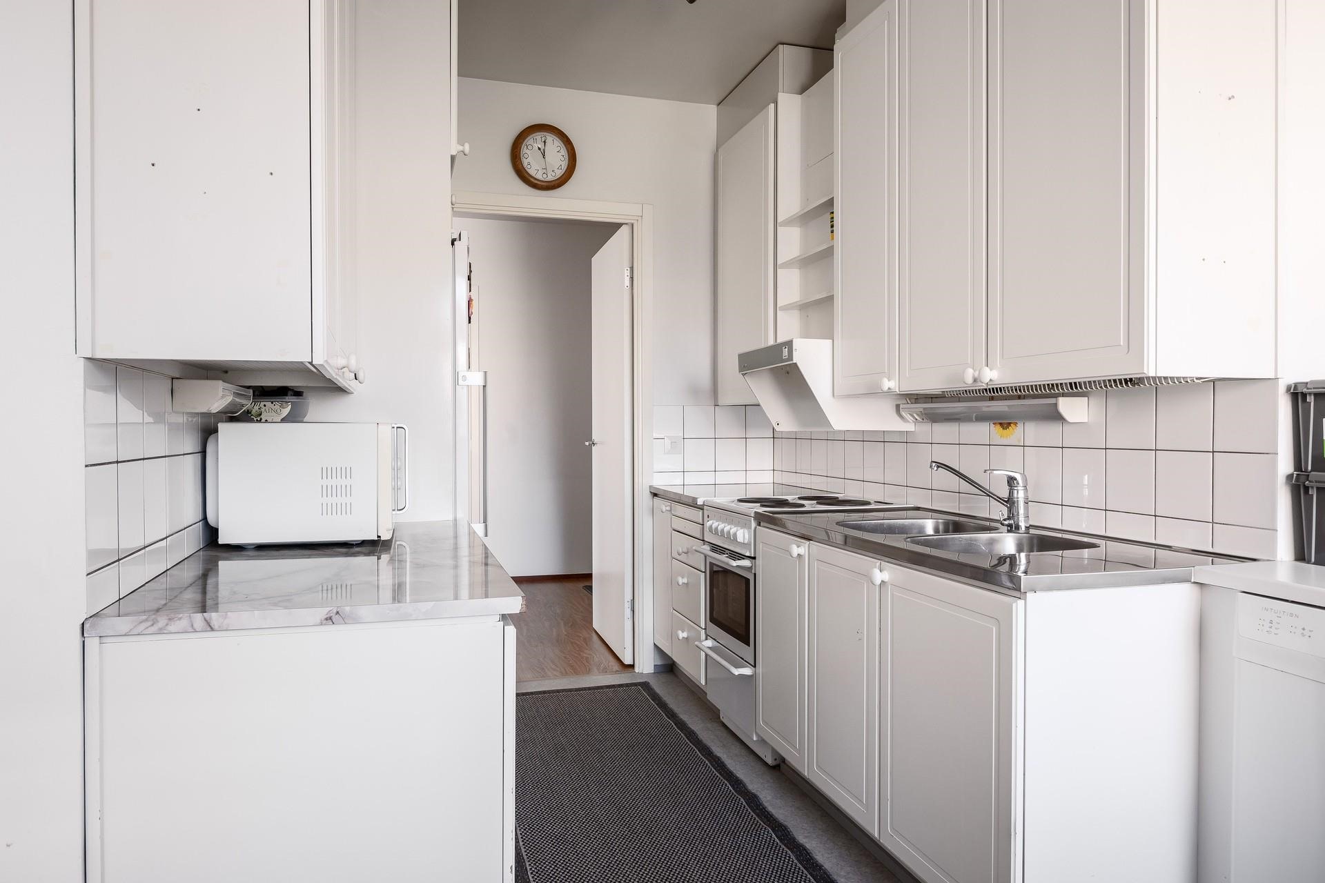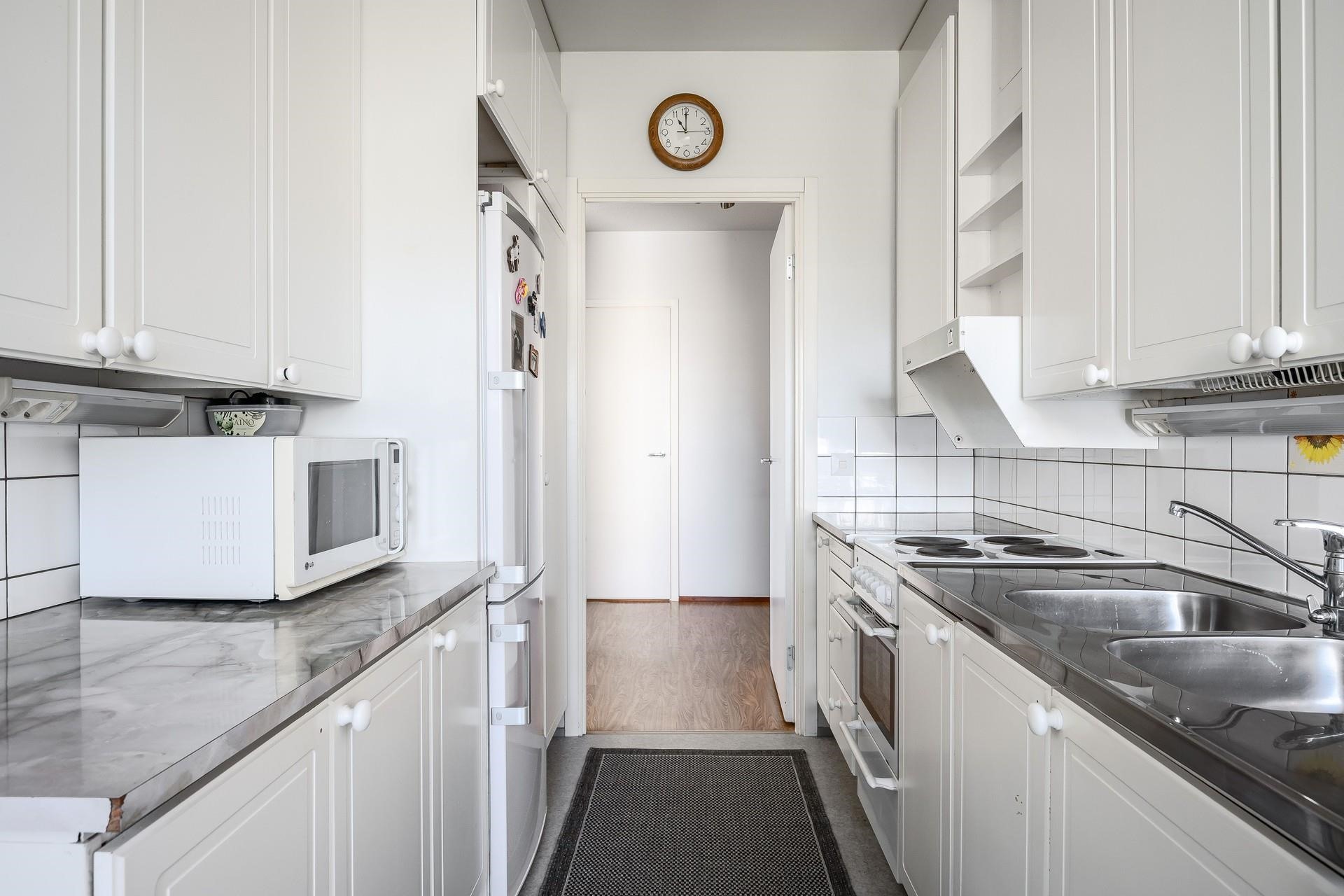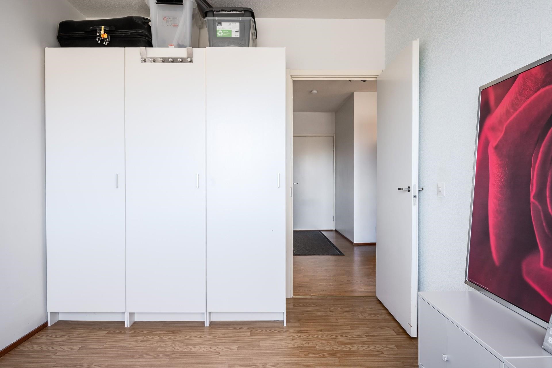 Kulmahuoneistossa riittää valoa, väljyyttä ja tilantuntua, mutta myös säilytystilaa löytyy runsaasti makuuhuoneen kaapistosta ja vaatehuoneesta. Kylpyhuone tullaan uusimaan kokonaisuudessaan perinteisen putkiremontin myötä. Parvekkeelta avautuvat maisemat yhtiöiden sisäpihan suuntaan, jossa kesäisin vehreyttä piisaa.