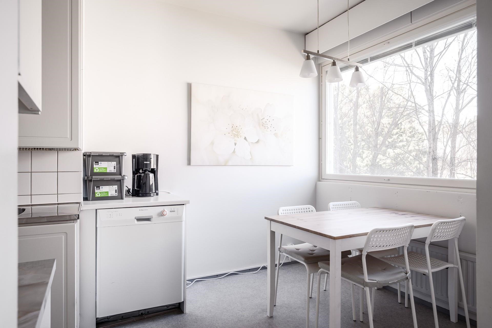 - Jääkaappipakastin, lattialiesi, astianpesukone.