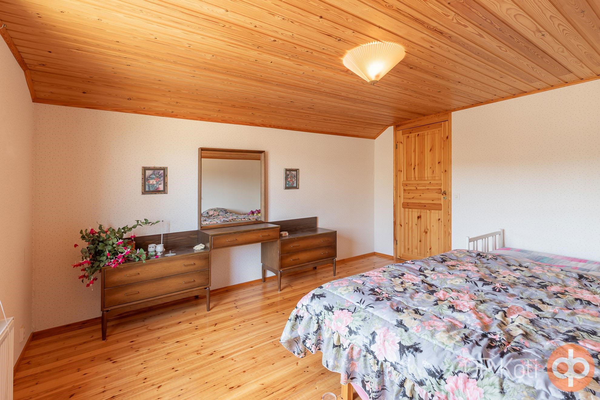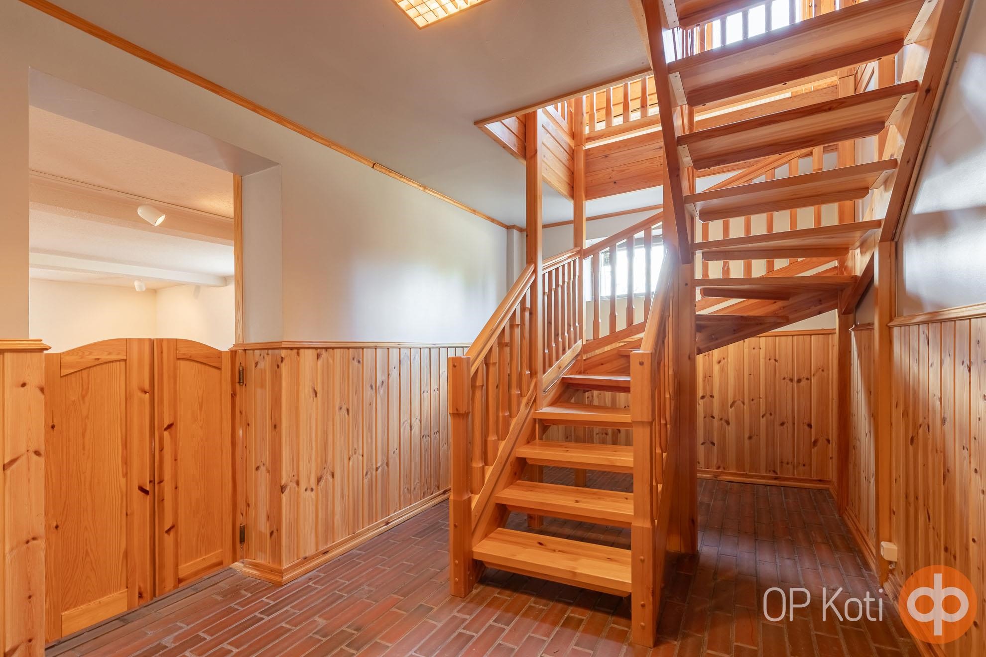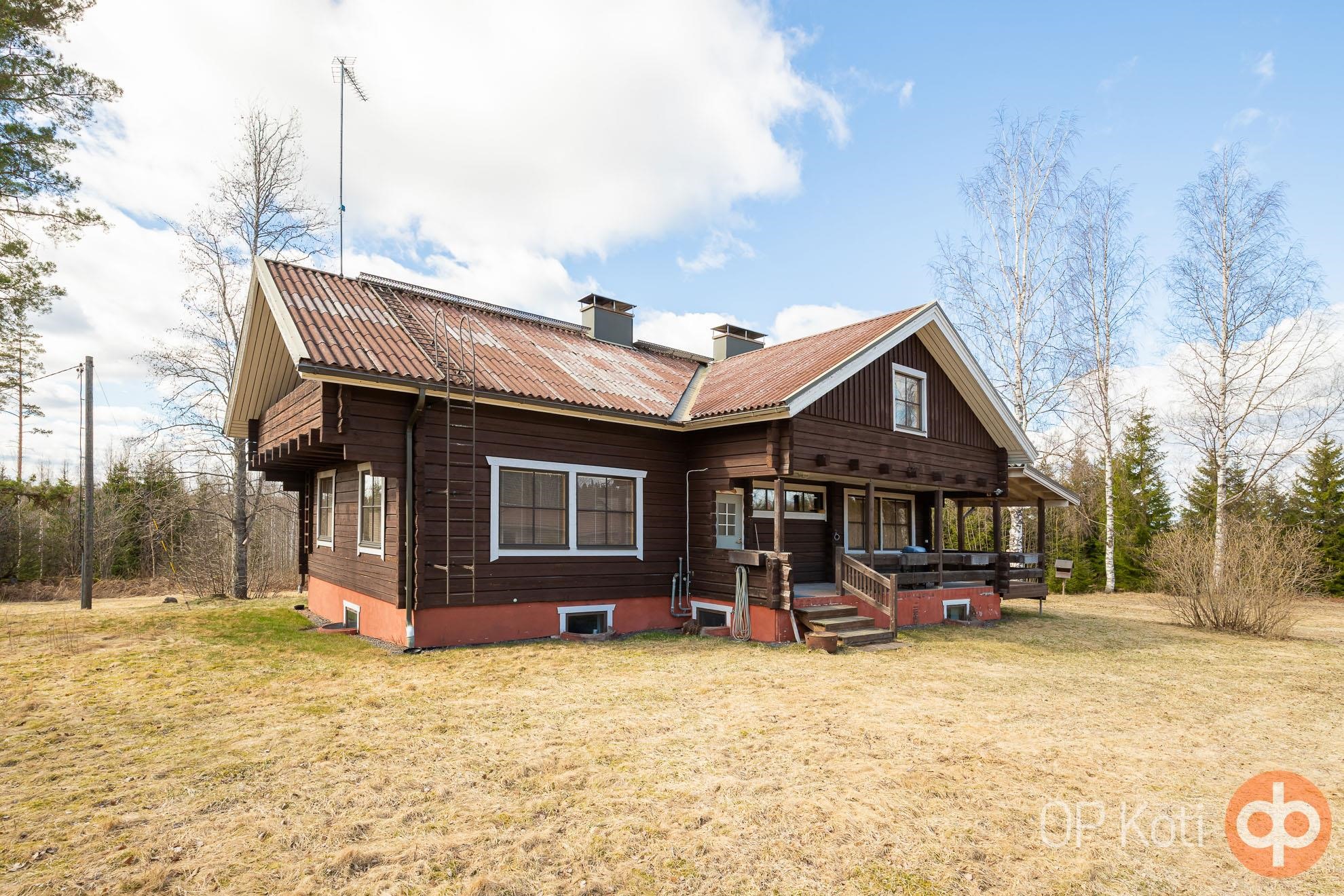 Asuinrakennus on hirsirunkoinen ja tiloja on kolmessa kerroksessa. 1. kerroksessa on oleskelutilat, keittiö, wc ja yksi makuuhuone. Yläkerrassa on kolme makuuhuonetta, aula sekä wc. Kellarikerroksesta löydät pesutilat saunan kera, kodinhoitohuoneen, takkahuoneen, teknisen tilan ja harrastehuoneen. Talo lämpiää maalämmöllä, mutta varalla on myös vielä öljy.