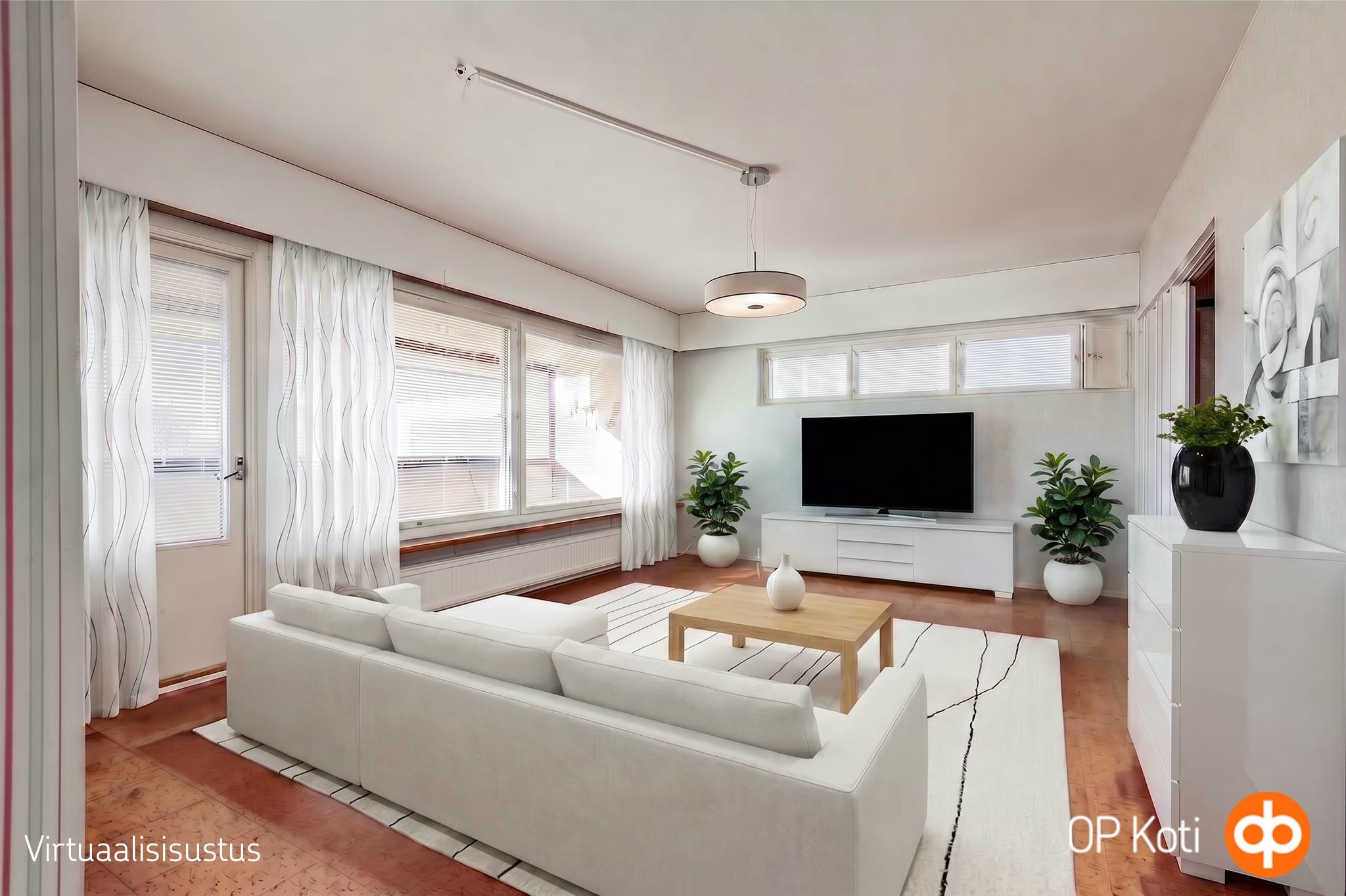 Kolmen huoneen ja erillisen keittiön huonejärjestys on käytännöllinen ja helposti muunneltavissa erilaisiin elämäntilanteisiin. Tilava keittiö on remontoitu noin vuonna 2014, ja samalla on tehty pientä pintaremonttia, mikä tuo asuntoon siistin ja miellyttävän ilmeen. Olohuoneeseen tulvii valoa kahdesta suunnasta, ja sieltä on käynti lasitetulle parvekkeelle, jossa voi nauttia iltahetkistä pitkälle syksyyn. Makuuhuoneet ovat reilunkokoisia, ja säilytystilaa tarjoavat vaatehuone sekä huoneistokohtainen kellarivarasto. Asunnossa on kaapeli-TV ja tietoliikennekaapelointi valmiina arjen viihde- ja työskentelytarpeisiin.