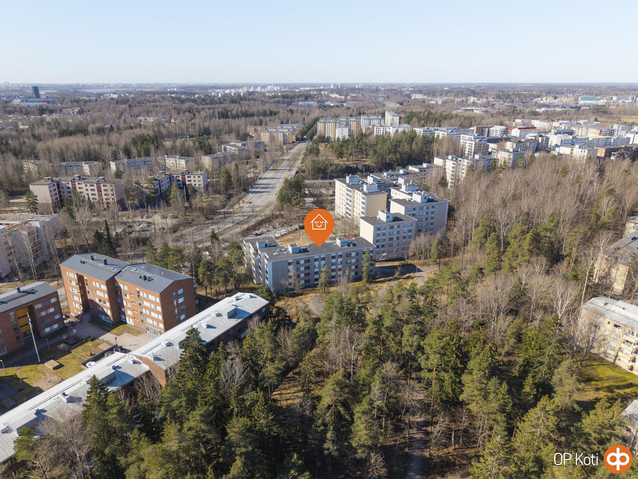 Lähiympäristö tarjoaa kattavat palvelut aivan kävelyetäisyydellä: lähikaupat, päiväkodit ja koulut löytyvät läheltä, ja alueen vehreät puistot kutsuvat ulkoilemaan ja viihtymään. Rauhallinen ja luonnonläheinen ympäristö tekee alueesta miellyttävän ja turvallisen paikan asua. Kulkuyhteydet ovat sujuvat, sillä bussipysäkit sijaitsevat lähellä ja yhteydet sekä keskustaan että muihin kaupunginosiin toimivat vaivattomasti. Autolla liikkuvalle alue tarjoaa hyvät yhteydet pääväylille, mikä helpottaa arjen siirtymiä.