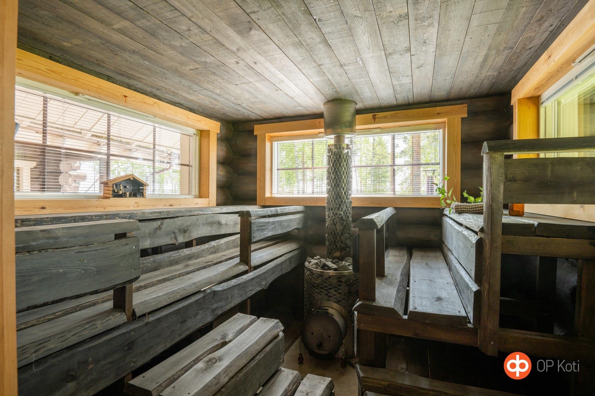 - Sauna, puukiuas, erillinen wc, kiinteät valaisimet.